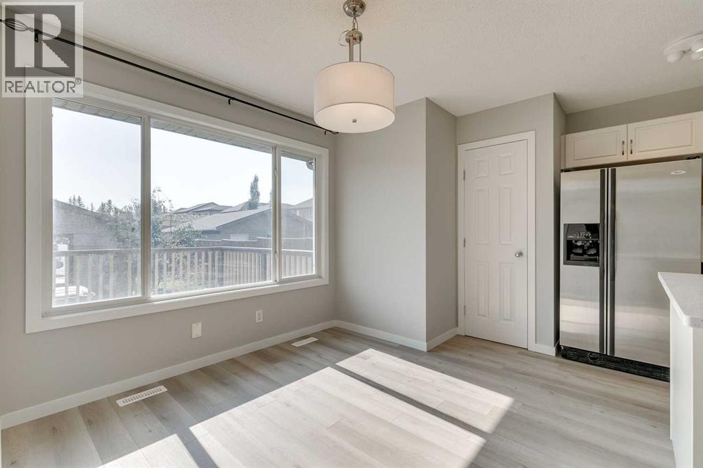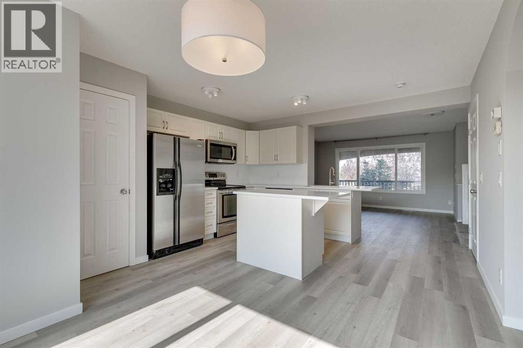 Acroos from a park and close to schools! Welcome to this charming 2-storey in Airdrie’s beloved Reunion community, where everyday comforts meet thoughtful updates. A classic front porch sets the scene for morning coffees or evening lounging, while inside sunlight pours through large windows into the living room, anchored by a cozy gas fireplace. The kitchen is the true heart of the home—quartz counters gleam against beautiful cream coloured cabinetry, and stainless steel appliances stand ready for your next culinary adventure. The island and breakfast bar offers the perfect perch for taste-testers and storytellers alike, with a sunny dining nook overlooking the south-facing backyard. Upstairs, three inviting bedrooms await, including a serene primary suite with its own private ensuite, while the additional bedrooms share a bright, well-appointed bath. The newly developed fully finished basement extends your living space with a spacious family room, a fourth bedroom, and a full bath—ideal for guests, teens, or cozy movie nights. Recent upgrades include new vinyl plank flooring, designer lighting, fresh paint, and a newly built double detached garage. (id:51913)