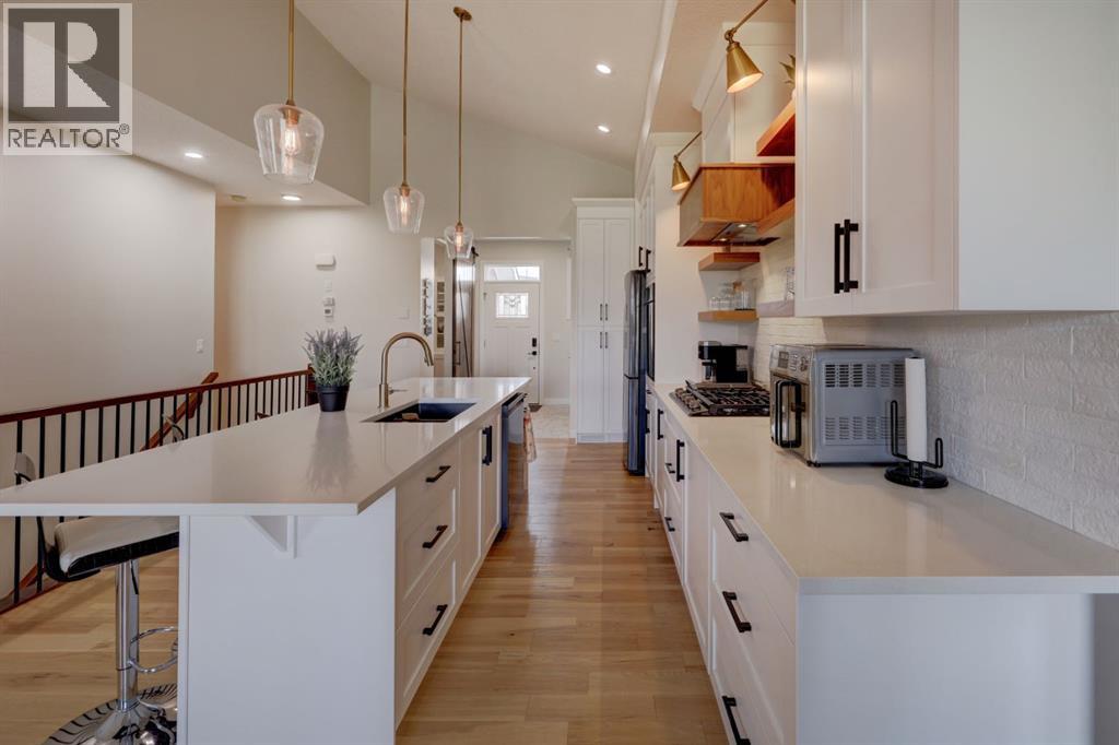Beautifully Upgraded Bungalow on the Canals! This rare 4 bedroom, 4 bathroom home with a main floor office offers over 3000sqft of thoughtfully designed living space and a desirable west facing backyard overlooking the water. Step inside to find soaring vaulted ceilings, expansive windows that capture the canal views, warm hardwood floors, custom lighting and an abundance of built-in’s throughout. the freshly painted main floor showcases a dream kitchen with quartz countertops, SS appliance package, a statement hood fan, large Island, walk in pantry plus an additional wall pantry. The open concept design flows seamlessly into the dinning and living areas, while patio doors lead to the spacious upper deck complete with gas and water lines. The primary retreat enjoys peaceful canal views, double door entry, walk in closet and a luxurious 5pc ensuite. Another bedroom, a full bathroom, custom mud room and an upgraded laundry room with new cabinetry, pull out racks and countertop compete the main level. The fully finished lower level is perfect for entertaining or relaxing, featuring a large Rec room with wet bar, west facing windows and walkout access to the covered patio and fire pit area. Two additional bedrooms are located downstairs including one with a private ensuite, plus a versatile flex room with barn doors, ideal for a gym, office or hobby space. Upgrades includes new appliances, some new cabinetry throughout, main floor lighting and LED pot lights, new A/C, new water softener and more! This Canal front property combines modern updates with exceptional functionality and is an absolute must see! Book a showing today (id:51913)