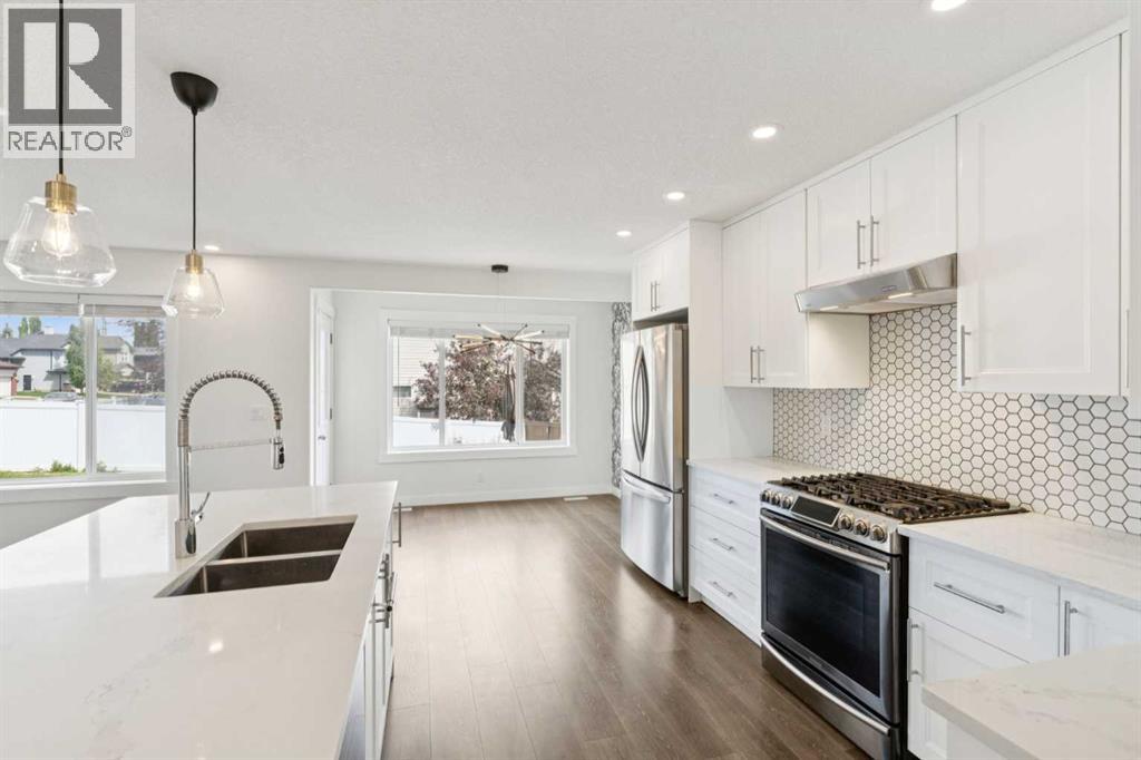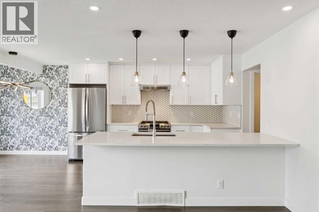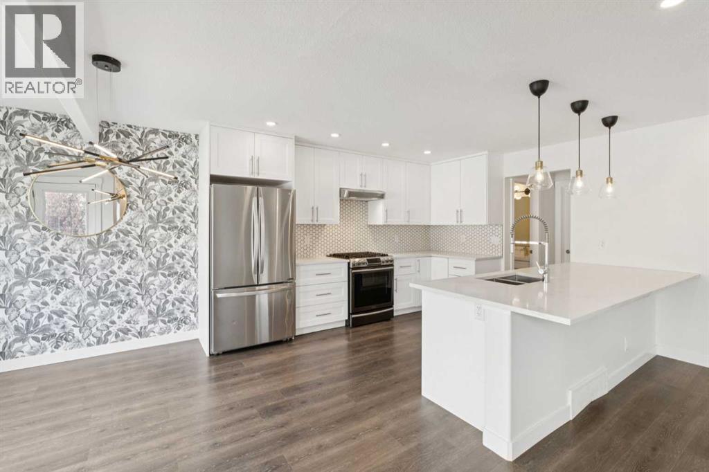 This FULLY RENOVATED and thoughtfully UPGRADED 2-storey home in Citadel has been transformed with contemporary finishes and major improvements, including a NEW FURNACE, HOT WATER TANK, ROOF, and SIDING—all completed in 2020—as well as CENTRAL AIR CONDITIONING installed in 2023. The entire home has been PROFESSIONALLY CLEANED from top to bottom and boasts FRESH PAINT throughout and WASHED CARPETS. The large windows bring in an abundance of natural light. The main floor features an open-concept layout that includes a mudroom with laundry, a 2-Piece bath, and a beautifully upgraded kitchen with white cabinetry, GRANITE countertops, a stunning ISLAND with PENDANT LIGHTS, and STAINLESS-STEEL appliances. The adjacent dining area and family room open directly onto a furnished concrete PATIO. Upstairs, you’ll find 3 generously sized bedrooms, including a spacious primary room with a gorgeous 5-Piece ENSUITE BATH, along with another full bathroom. A large, sunlit BONUS ROOM with a door offers excellent flexibility and can be used as a 4th bedroom. The FULLY FINISHED BASEMENT adds even more living space, featuring a large Family/Recreation Room with a DRY BAR, a bedroom, a full bathroom, and ample storage space. This home also includes a double attached garage, a fully fenced yard with outdoor storage, and a desirable CORNER LOT location directly across from a large playground. This home is also ideally situated for convenience and lifestyle. A bus stop is located right next to the house, and Crowfoot LRT Station is just an 8-minute drive away. It’s within walking distance to Citadel Park, St. Brigid School, and Citadel Park School, with several other schools just a short drive away. You'll also enjoy quick access to grocery stores, restaurants, parks, playgrounds, scenic walking paths, and major roadways like Stoney Trail. Truly move-in ready, this home presents an exceptional opportunity for comfortable, modern living in one of the city’s most desirable family-friendly com munities. (id:51913)