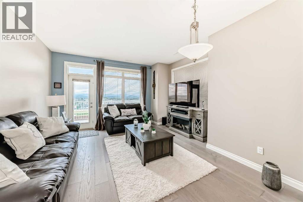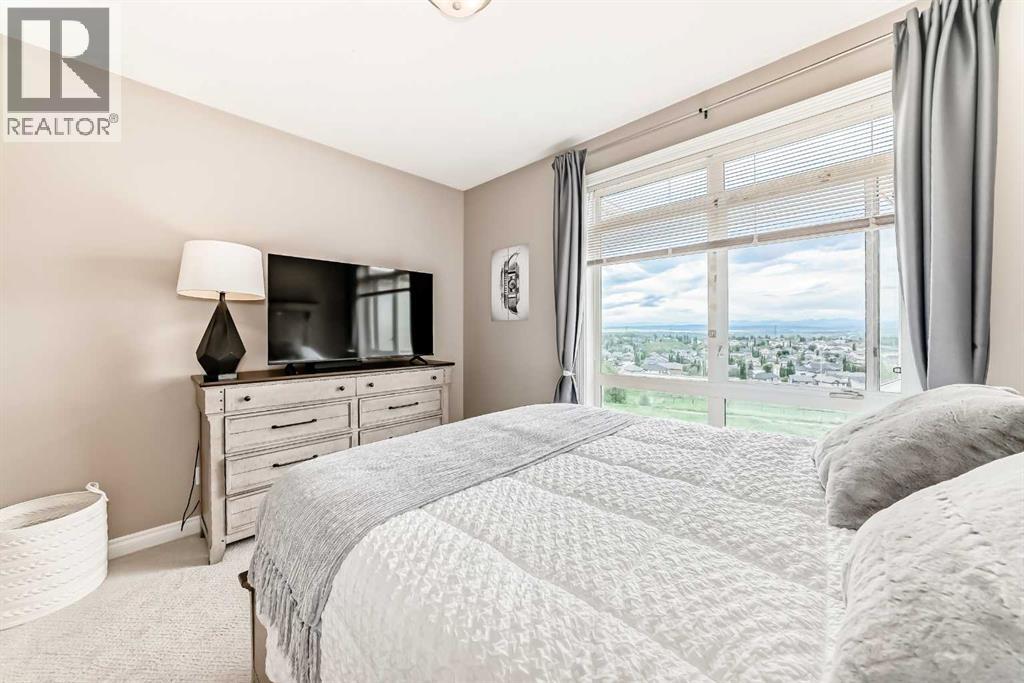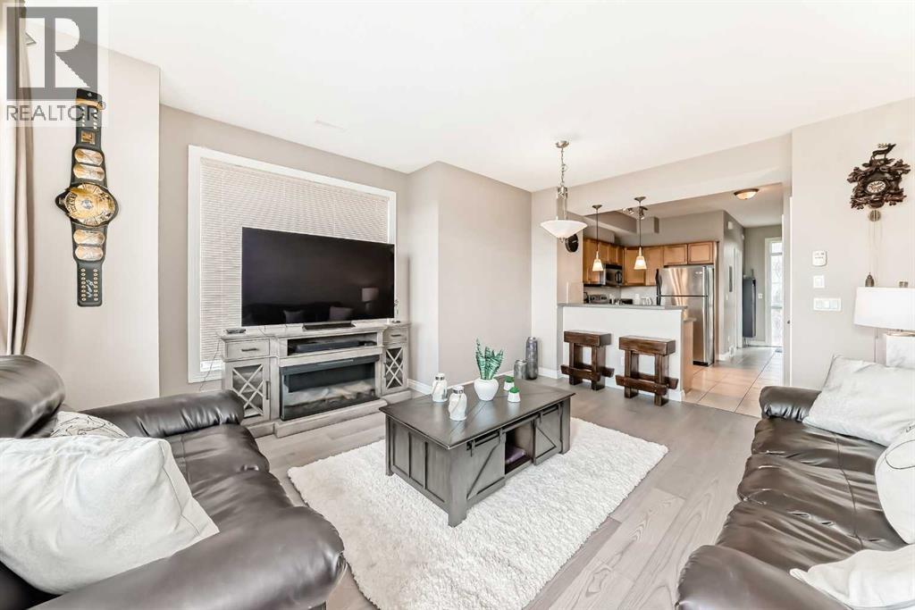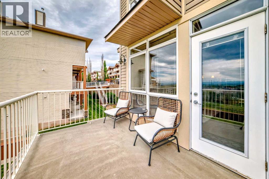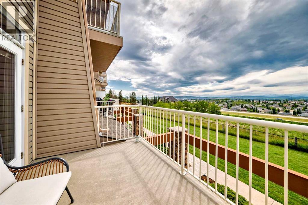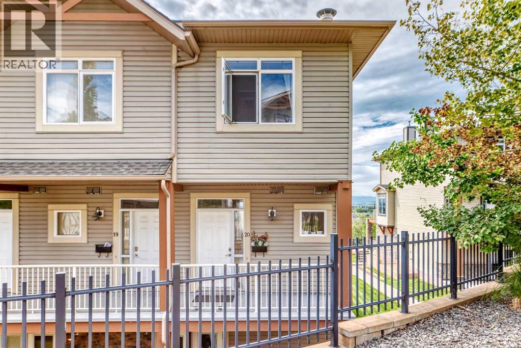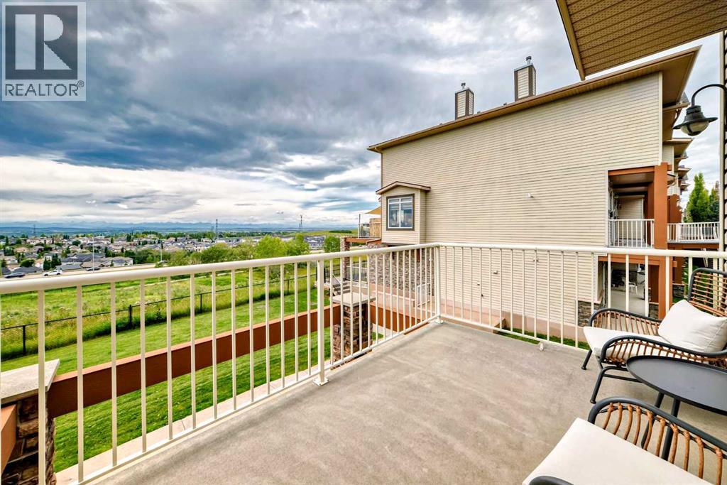 Marvel at the view in this 2 bedroom 2.5 bath Townhouse in Blue Sky of Rocky Ridge. #20 is an end unit which means Extra light in your Living Space with glass block bump out adding extra wall space and feature design. The Perfect amount of living space on the main. Kitchen comes complete with SS appliances, Pantry, Ceramic tile flooring, and Breakfast Bar. Step into the Living room and your can enjoy the view while watching TV or relaxing. The flooring is beautiful, BRAND NEW, engineered hardwood. The Balcony off the living room is a great size and perfect for morning Coffee, BBQing, or watching a gorgeous sunset over the Mountains. There is also a half bath on this level. Upstairs you'll find the Primary Bedroom with 3 pce en suite, Convenient Laundry with new electrical for a larger drying capacity, 4 pce main bath and a 2nd bedroom. CARPET on the stairs and Upper level is BRAND NEW This unit also comes with a titled parking stall in the underground parkade and titled storage. Blue Sky also has a fitness room for all to use, and is within walking distance to the Co-op, fast food restaurants, and plenty of walking paths. Tuscany LRT is only minutes away. Easy access to Highway 1A to get out of the city! Perfect place to call HOME. (id:51913)