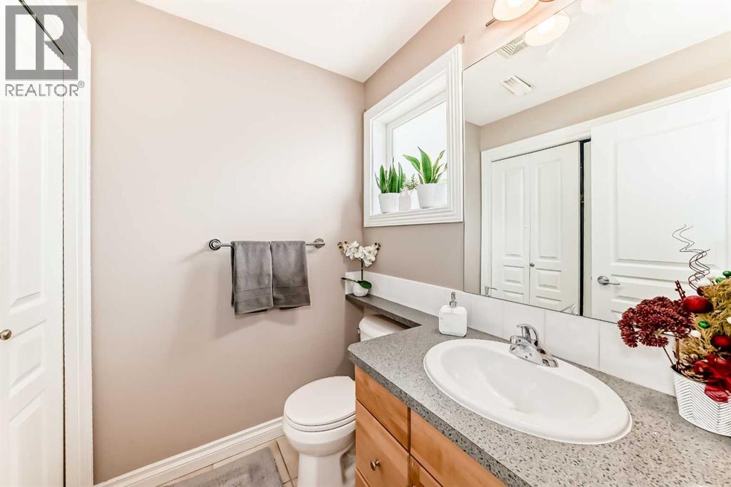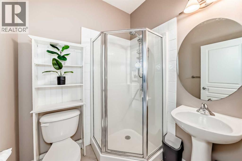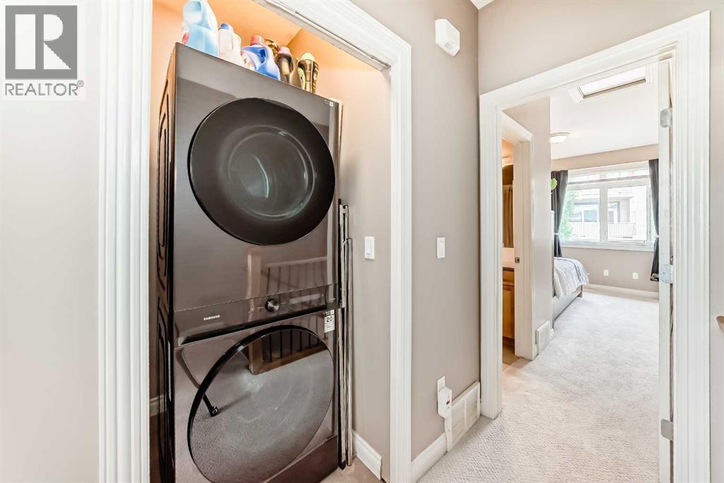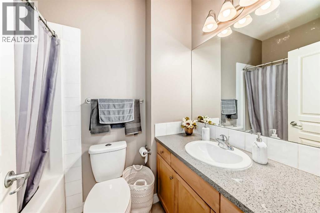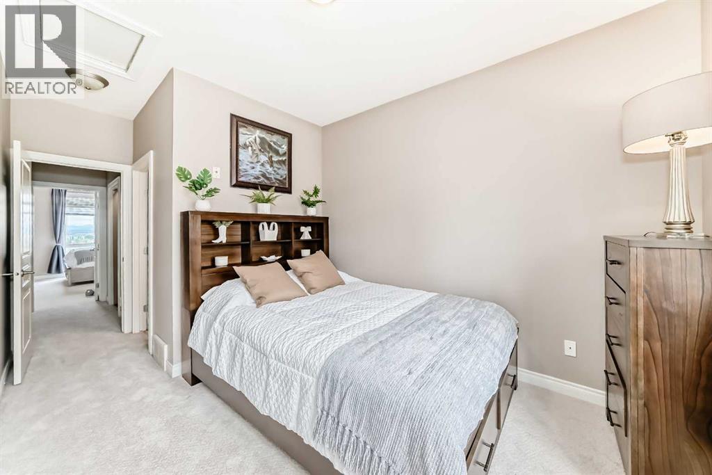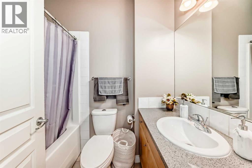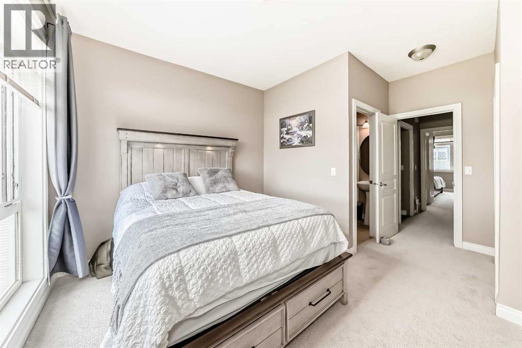 Marvel at the view in this 2 bedroom 2.5 bath Townhouse in Blue Sky of Rocky Ridge. #20 is an end unit which means Extra light in your Living Space with glass block bump out adding extra wall space and feature design. The Perfect amount of living space on the main. Kitchen comes complete with SS appliances, Pantry, Ceramic tile flooring, and Breakfast Bar. Step into the Living room and your can enjoy the view while watching TV or relaxing. The flooring is beautiful, BRAND NEW, engineered hardwood. The Balcony off the living room is a great size and perfect for morning Coffee, BBQing, or watching a gorgeous sunset over the Mountains. There is also a half bath on this level. Upstairs you'll find the Primary Bedroom with 3 pce en suite, Convenient Laundry with new electrical for a larger drying capacity, 4 pce main bath and a 2nd bedroom. CARPET on the stairs and Upper level is BRAND NEW This unit also comes with a titled parking stall in the underground parkade and titled storage. Blue Sky also has a fitness room for all to use, and is within walking distance to the Co-op, fast food restaurants, and plenty of walking paths. Tuscany LRT is only minutes away. Easy access to Highway 1A to get out of the city! Perfect place to call HOME. (id:51913)