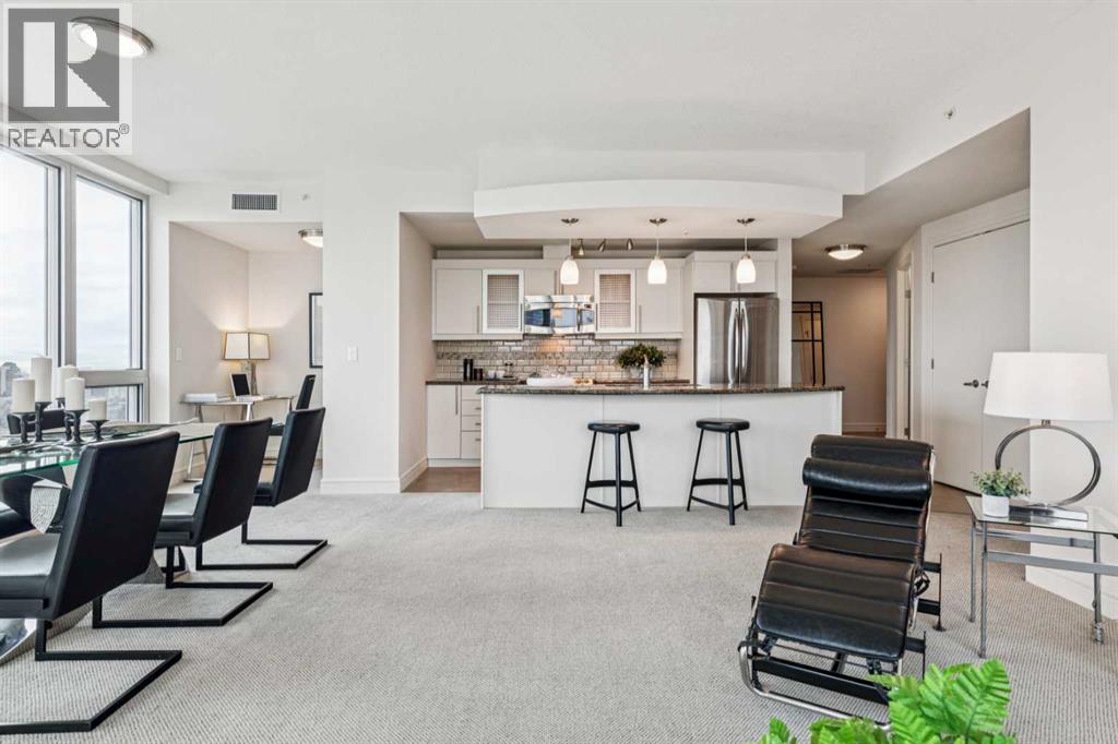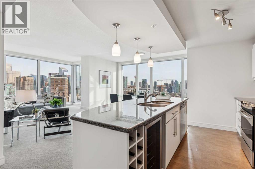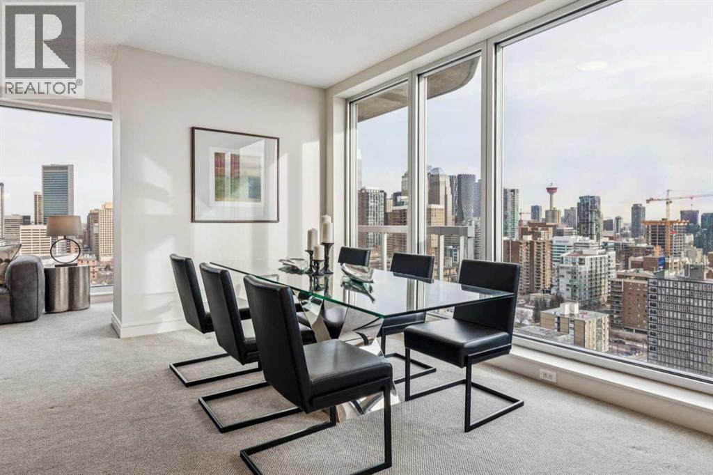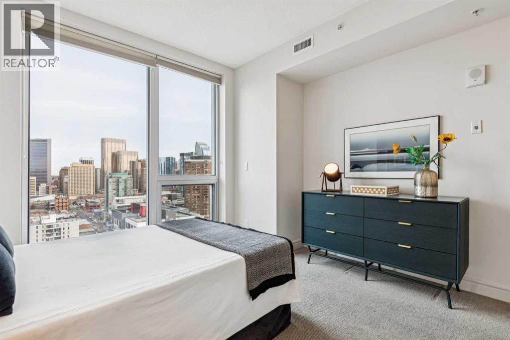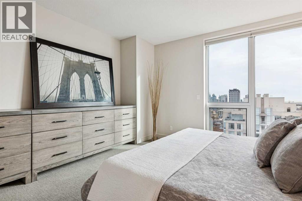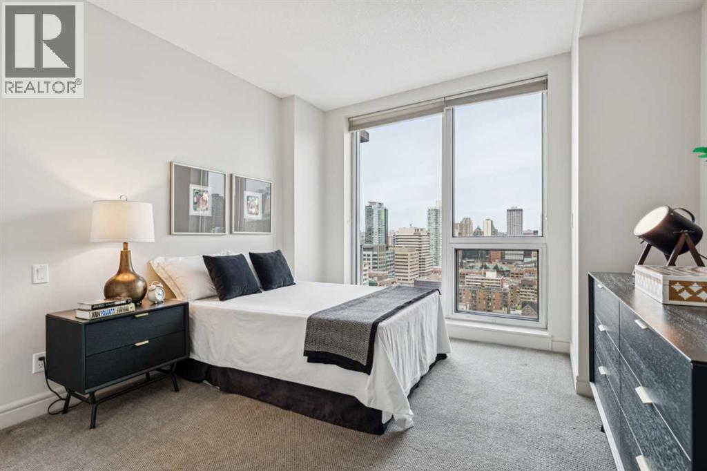Experience luxury living at this high-floor, stunning corner unit that’s part of the exclusive “Penthouse Collection” at The Montana. This is arguably this most desirable location in the Beltline…just off 17th Avenue and 8th Street…surrounded by endless amenities, shops services, restaurants, cafes and fitness…a true lifestyle destination. This “Georgia” floorplan offers a generous 1289 square feet including 2 bedrooms, a den-office and 2 full baths. Floor-to-ceiling windows frame incredible downtown views that include all the iconic buildings. 9’ ceilings, contemporary architectural details, updated lighting and fresh paint throughout. Flexible and open-concept layout including a generous seating area, a dining area that can accommodate a large table, a work-from-home space tucked around the corner and a stylish kitchen with excellent storage (double-door pantry), fresh white cabinetry, granite counters, large centre island with extended counter for stools and stainless appliances. Balcony with panoramic view and gas for BBQ. Exceptional primary suite with a large bedroom that enjoys morning light, power window shades, Restoration Hardware drawer units, a generous walk-through closet and a 4-piece ensuite with soaking tub-shower combination. Good second bedroom next to a 3-piece bath with shower. Laundry room with storage. Extra-wide titled parking stall and assigned storage locker. The Montana has a unique window construction…the 3” thick “vision wall” system for superior soundproofing and energy efficiency. Central air conditioning. Building amenities include a newly renovated fitness centre, 5-star concierge service, visitor parking and 3 high-speed elevators with secured floors. Perfect for downsizers and those that appreciate a little extra space. (id:51913)