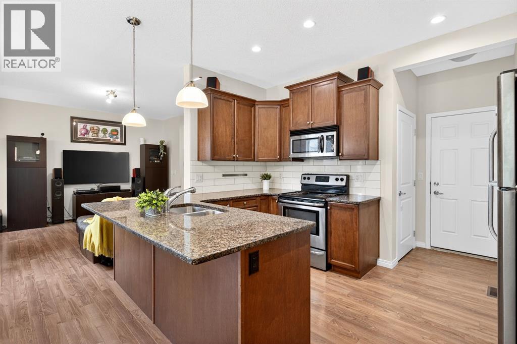 -- OPEN HOUSE -- Sunday October 19, 2-4 PM -- Tucked into the Trails of Williamstown, this townhouse has the best of both worlds — nature out your front door and everything you need close by. You’re steps from the 60 Acre Environmental Reserve, with creeks and walking and biking paths that wind through the neighbourhood, and Herons Crossing School is just a quick walk away. Be sure to check out the Woodside Golf Course and Alexanders Restaurant, both within walking distance!Inside, the layout feels open and welcoming, with a fireplace to cozy up around and a kitchen that has granite counters and warm wood cabinets. You will love the South Facing Sun on your back deck. Off the Kitchen is your conveniently located double attached garage. Upstairs you’ll see the Primary Bedroom with a 4-Piece Ensuite (Soaker Tub for those long days), 2 more bedrooms, another full bath, and laundry right where you need it. The basement is brand new, professionally finished (with permits) and adds a bright and spacious rec room, a fourth bedroom, and another full bath (stunning tiled shower with glass door) — perfect for guests, teens, or movie nights. It’s an easy place to feel at home — and even easier to get wherever you’re going, with quick access to shopping and the highway for commuters. (id:51913)