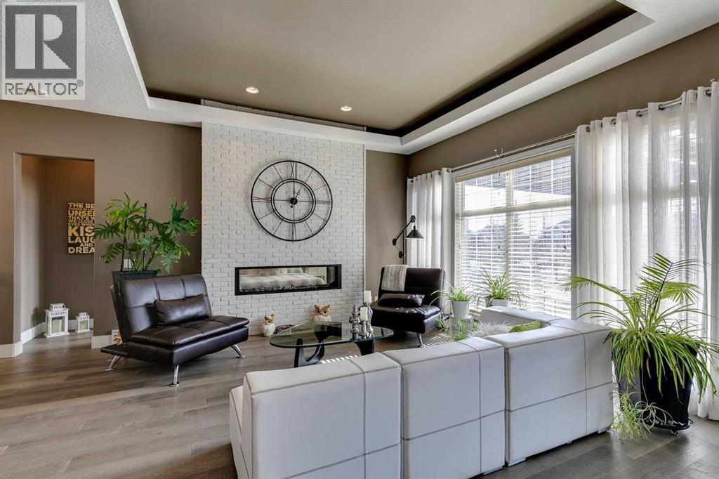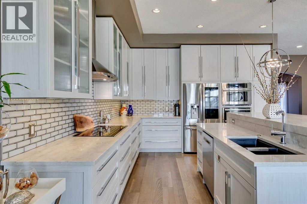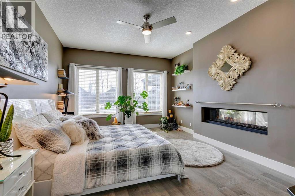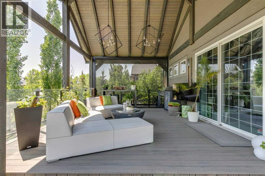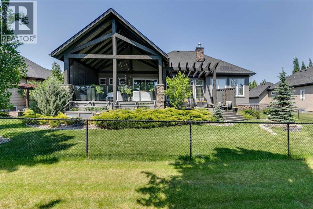 Welcome to this stunning, fully renovated bungalow located in the prestigious community of Heritage Pointe, nestled on the most exclusive street and backing onto a green space. From top to bottom, this home has been meticulously updated with high-end finishes and thoughtful design. The main level offers a chefs dream kitchen with waterfall island, ample cabinet space and high end appliances. The master bedroom boasts a two way fireplace, coiffered ceiling, huge windows and flows nicely into the spacious and elegant primary suite. The fully developed basement features three additional bedrooms and two full bathrooms—perfect for family or guests, a built in sauna, media room and bar! With four luxurious full bathrooms in total, comfort and convenience are at the forefront, with two of the bathrooms equipped with upgraded Toto toilets with built in bidets with heated seated! Step outside into your own private outdoor oasis, complete with a tiered partially covered deck with remote controlled wind/privacy screen, an outdoor kitchen, mounted TV, fire table, and a relaxing hot tub—ideal for entertaining or unwinding under the stars. This home is also ideally located on a green belt with a playground, providing fun opportunities for kids or grandkids to enjoy! This exceptional property seamlessly blends indoor luxury with outdoor living in one of the area’s most sought-after locations. Offering hardwood floors throughout, central vacuum, gorgeous fireplaces, raised garden beds, sprinkler irrigation front and back, as well as eavestrough lighting. There is an attached shed for ease of storing your yard equipment. This home has been completely re-done, leaving nothing for you to need to update and is located in the best community in the Calgary area! The Lake at Heritage Pointe is year round fun with paddle boarding, fishing, beach access, pickleball courts, summer camp activities, community events and ravines to explore all year. Call for details! ** Air conditioner being i nstalled July 2025 ** (id:51913)