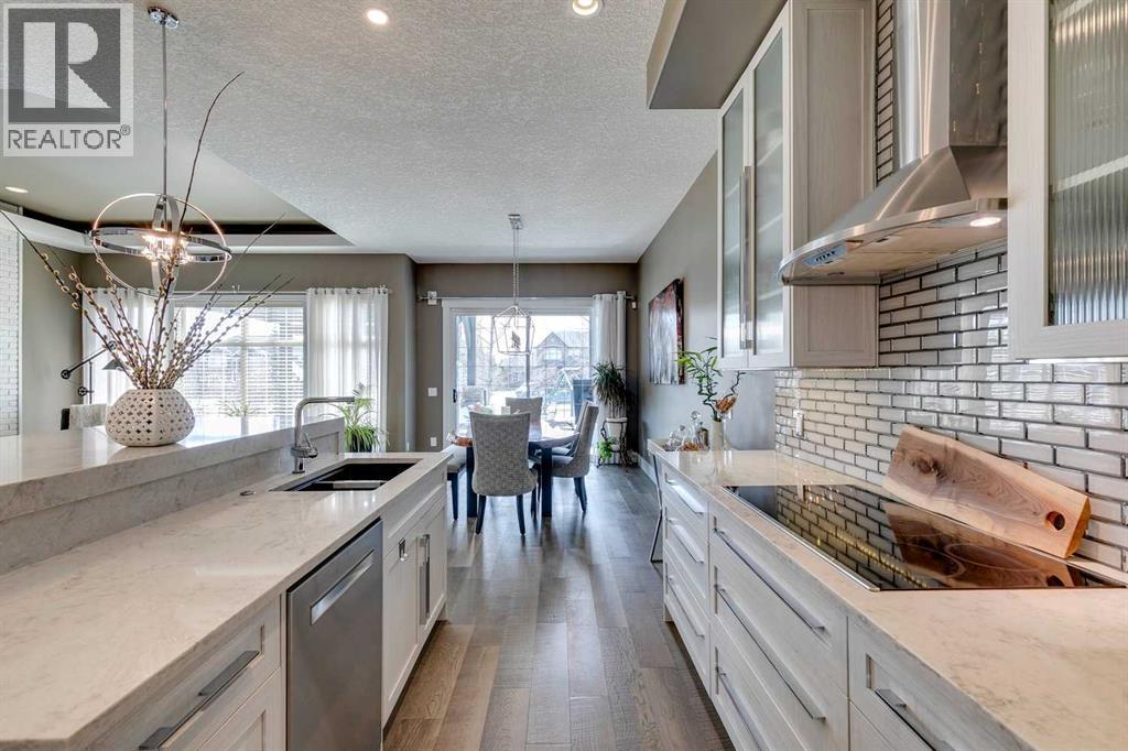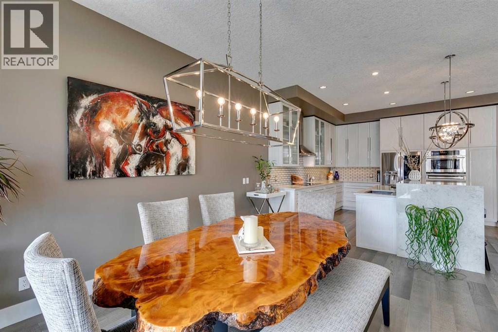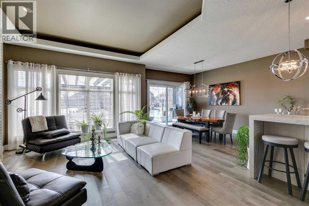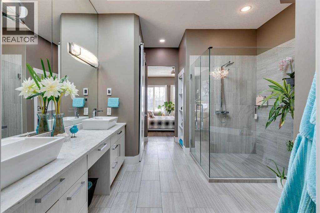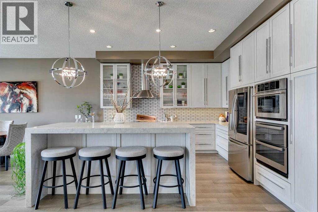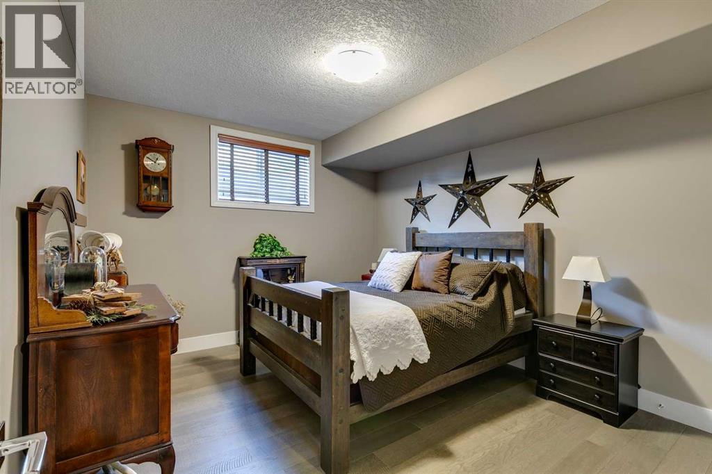 Welcome to this stunning, fully renovated bungalow located in the prestigious community of Heritage Pointe, nestled on the most exclusive street and backing onto a green space. From top to bottom, this home has been meticulously updated with high-end finishes and thoughtful design. The main level offers a chefs dream kitchen with waterfall island, ample cabinet space and high end appliances. The master bedroom boasts a two way fireplace, coiffered ceiling, huge windows and flows nicely into the spacious and elegant primary suite. The fully developed basement features three additional bedrooms and two full bathrooms—perfect for family or guests, a built in sauna, media room and bar! With four luxurious full bathrooms in total, comfort and convenience are at the forefront, with two of the bathrooms equipped with upgraded Toto toilets with built in bidets with heated seated! Step outside into your own private outdoor oasis, complete with a tiered partially covered deck with remote controlled wind/privacy screen, an outdoor kitchen, mounted TV, fire table, and a relaxing hot tub—ideal for entertaining or unwinding under the stars. This home is also ideally located on a green belt with a playground, providing fun opportunities for kids or grandkids to enjoy! This exceptional property seamlessly blends indoor luxury with outdoor living in one of the area’s most sought-after locations. Offering hardwood floors throughout, central vacuum, gorgeous fireplaces, raised garden beds, sprinkler irrigation front and back, as well as eavestrough lighting. There is an attached shed for ease of storing your yard equipment. This home has been completely re-done, leaving nothing for you to need to update and is located in the best community in the Calgary area! The Lake at Heritage Pointe is year round fun with paddle boarding, fishing, beach access, pickleball courts, summer camp activities, community events and ravines to explore all year. Call for details! ** Air conditioner being i nstalled July 2025 ** (id:51913)