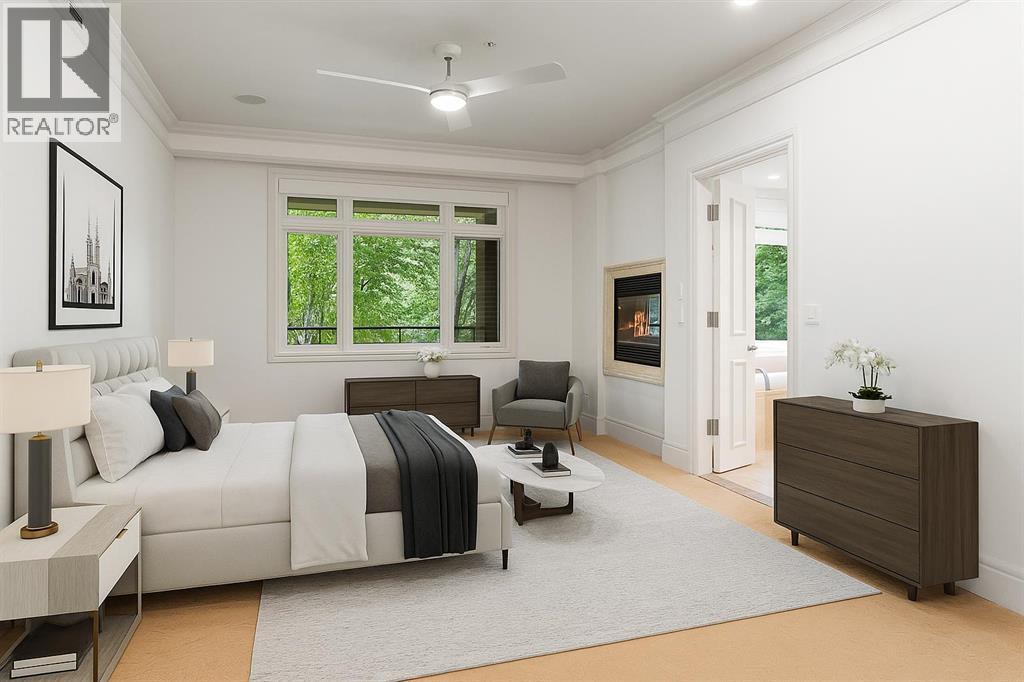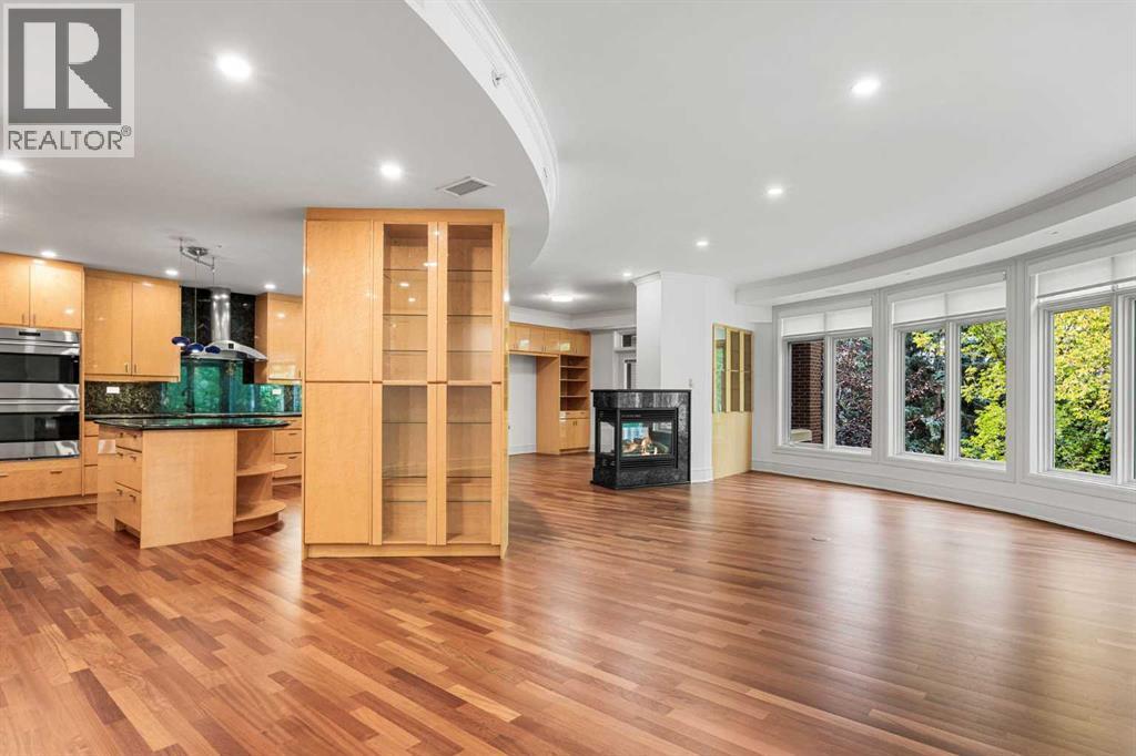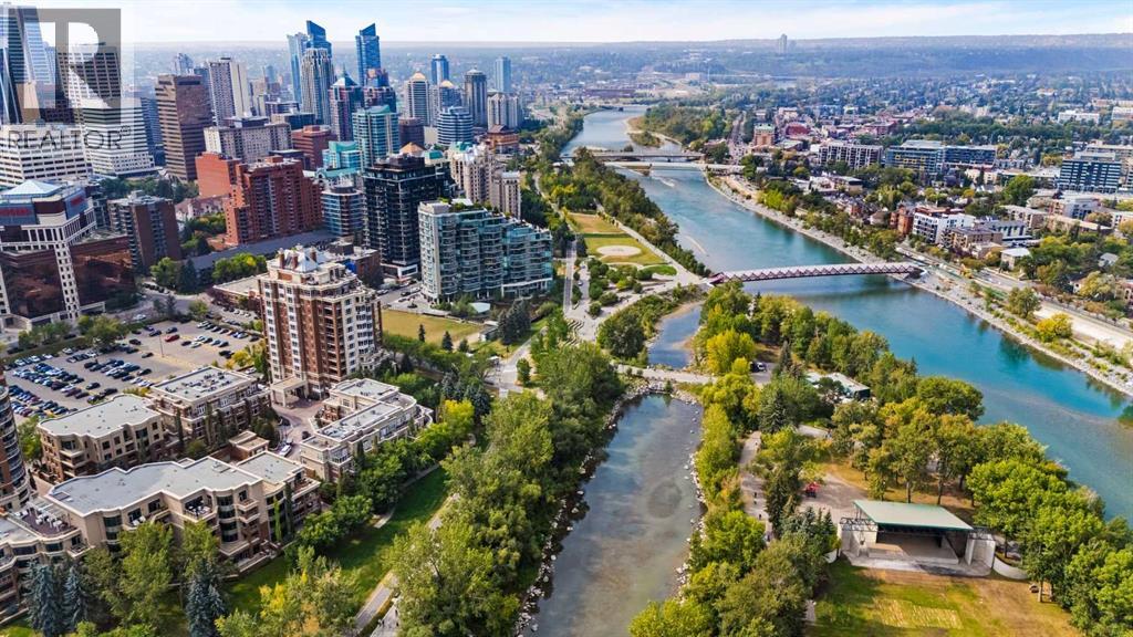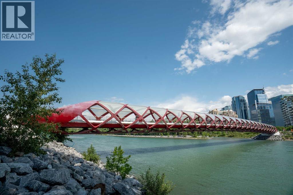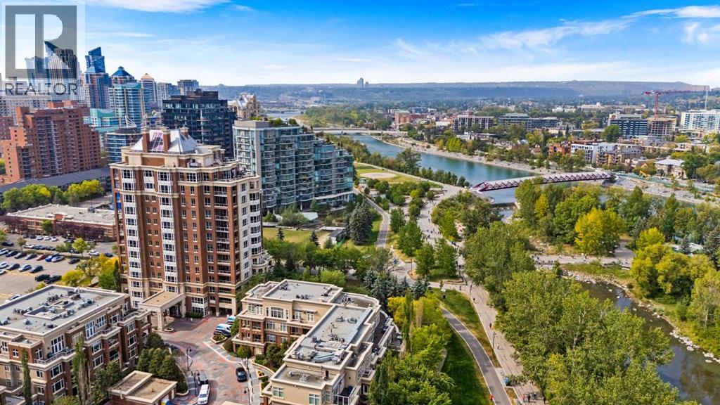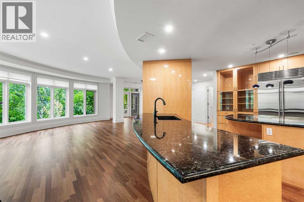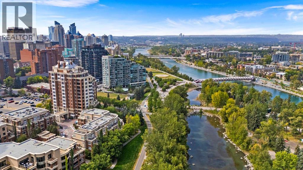 Welcome to Princeton Waterfront — Where Luxury Meets Tranquility, a rare and private retreat! Experience refined riverfront living in one of Calgary’s most exclusive residences. Nestled beside Prince’s Island Park in the heart of Eau Claire, this exceptional northwest-facing corner unit offers nearly 2,600 sq. ft. of sophisticated, yet inviting space, and is part of a boutique building with just only 7 of which share this prestigious address. With only 2 units per floor, this quiet unit shares only one wall and offers sweeping north-west exposures that flood the home with natural light and showcases stunning views of Prince’s Island Park and the Bow River. A secured elevator opens directly into your private foyer, emphasizing the exclusivity of this remarkable home. Two expansive terraces invite outdoor living. One expansive terrace, off the kitchen, is west-facing with park views and a BBQ gas line — perfect for entertaining. The second, accessed from the living room, features unobstructed park and river pathway views, ideal for relaxing in peace and tranquility. The sophisticated open-concept living and dining area features 9’ ceilings, gleaming newly refinished hardwood floors, a gas fireplace, and double French doors to the riverfront terrace. Floor-to-ceiling curved windows provide breathtaking views . The chef’s kitchen is a work of art, with custom Birds-eye maple cabinetry, Granite countertops , an induction cooktop, wine fridge, and a generous dining bar. Premium Sub-Zero, and Miele appliances complete this culinary haven. The elegant and private primary suite offers park views, a large walk-in closet, and a luxurious ensuite with a stand-alone tub and a two-sided fireplace that adds warmth and charm to both the bedroom and bath. Two additional bedrooms, one with an ensuite are both generously sized, each with walk-in closets. A spacious laundry room , built-in cabinetry, and additional storage adds everyday conveniences. Unmatched Amenities & Location - En joy 3 titled, side-by-side underground parking stalls, plus a private 212 sq. ft. storage/workshop room located in its own wing of the parkade. Additional conveniences include access to a car wash bay, concierge-registered guest parking in the gated courtyard, and beautifully landscaped grounds with seasonal plantings. Step outside to enjoy direct access to Calgary’s extensive Prince’s Island Park and the river pathways, renowned fine dining, shopping, and downtown amenities — all while enjoying the peace and serenity of your private, nature-connected oasis. This is a very rare opportunity to own a luxurious, custom-designed residence in one of Calgary’s most coveted locations. Experience elegance, comfort, and a lifestyle defined by tranquility and convenience at Princeton Waterfront. Call your trusted realtor today for your private showing. (id:51913)
