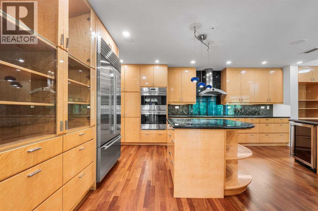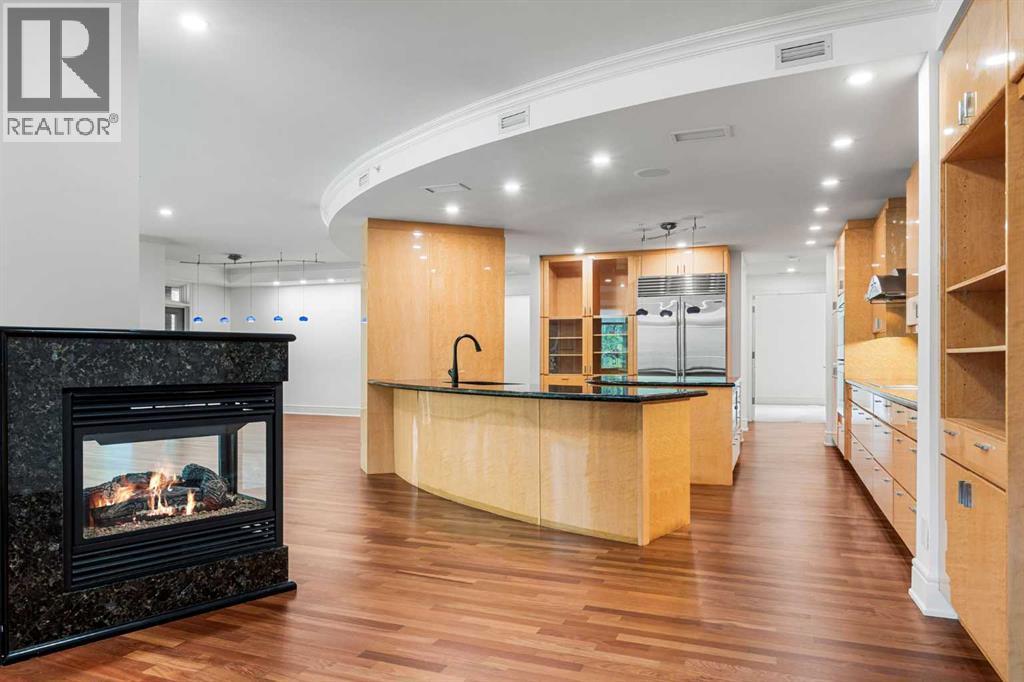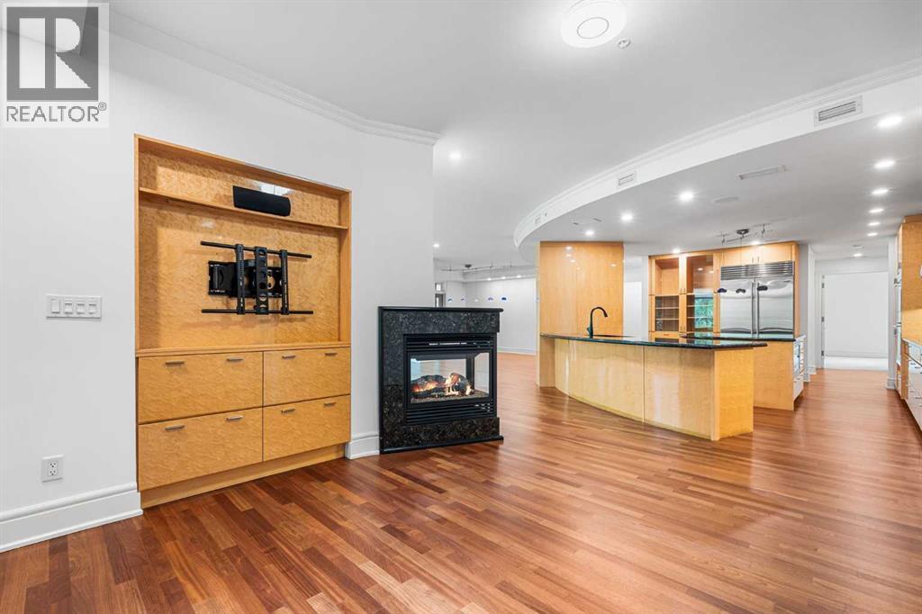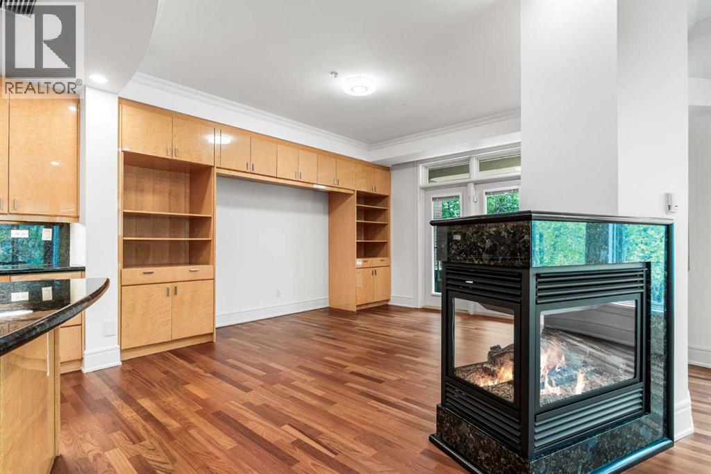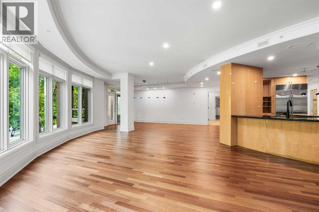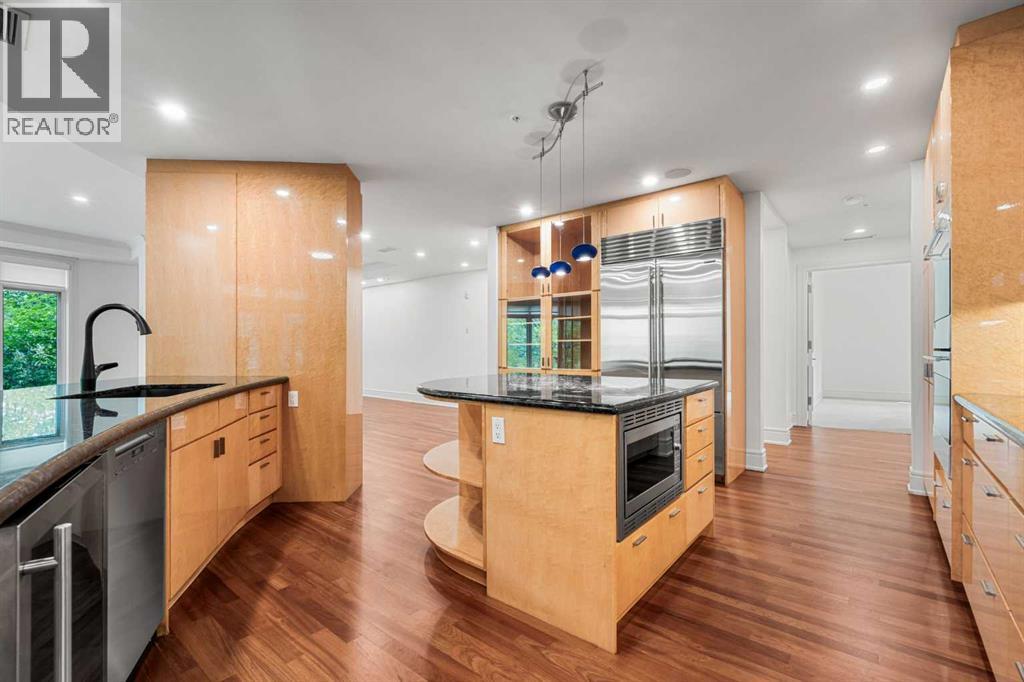 Welcome to Princeton Waterfront — Where Luxury Meets Tranquility, a rare and private retreat! Experience refined riverfront living in one of Calgary’s most exclusive residences. Nestled beside Prince’s Island Park in the heart of Eau Claire, this exceptional northwest-facing corner unit offers nearly 2,600 sq. ft. of sophisticated, yet inviting space, and is part of a boutique building with just only 7 of which share this prestigious address. With only 2 units per floor, this quiet unit shares only one wall and offers sweeping north-west exposures that flood the home with natural light and showcases stunning views of Prince’s Island Park and the Bow River. A secured elevator opens directly into your private foyer, emphasizing the exclusivity of this remarkable home. Two expansive terraces invite outdoor living. One expansive terrace, off the kitchen, is west-facing with park views and a BBQ gas line — perfect for entertaining. The second, accessed from the living room, features unobstructed park and river pathway views, ideal for relaxing in peace and tranquility. The sophisticated open-concept living and dining area features 9’ ceilings, gleaming newly refinished hardwood floors, a gas fireplace, and double French doors to the riverfront terrace. Floor-to-ceiling curved windows provide breathtaking views . The chef’s kitchen is a work of art, with custom Birds-eye maple cabinetry, Granite countertops , an induction cooktop, wine fridge, and a generous dining bar. Premium Sub-Zero, and Miele appliances complete this culinary haven. The elegant and private primary suite offers park views, a large walk-in closet, and a luxurious ensuite with a stand-alone tub and a two-sided fireplace that adds warmth and charm to both the bedroom and bath. Two additional bedrooms, one with an ensuite are both generously sized, each with walk-in closets. A spacious laundry room , built-in cabinetry, and additional storage adds everyday conveniences. Unmatched Amenities & Location - En joy 3 titled, side-by-side underground parking stalls, plus a private 212 sq. ft. storage/workshop room located in its own wing of the parkade. Additional conveniences include access to a car wash bay, concierge-registered guest parking in the gated courtyard, and beautifully landscaped grounds with seasonal plantings. Step outside to enjoy direct access to Calgary’s extensive Prince’s Island Park and the river pathways, renowned fine dining, shopping, and downtown amenities — all while enjoying the peace and serenity of your private, nature-connected oasis. This is a very rare opportunity to own a luxurious, custom-designed residence in one of Calgary’s most coveted locations. Experience elegance, comfort, and a lifestyle defined by tranquility and convenience at Princeton Waterfront. Call your trusted realtor today for your private showing. (id:51913)