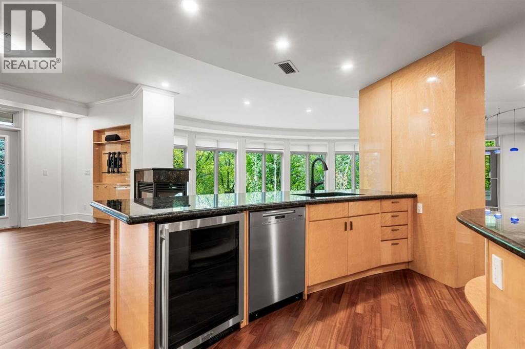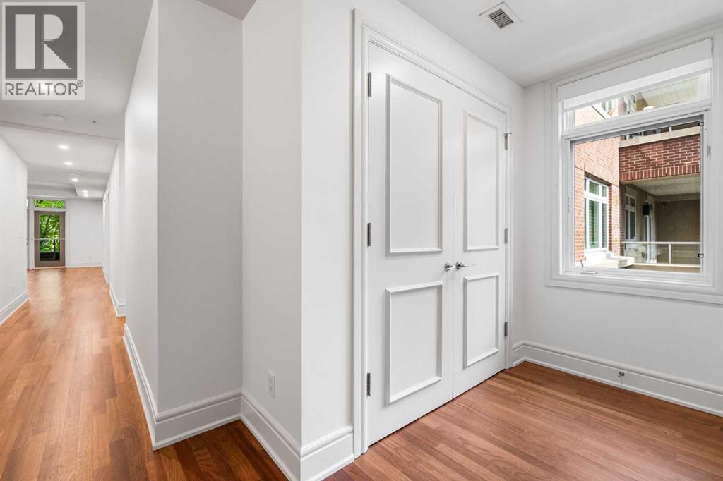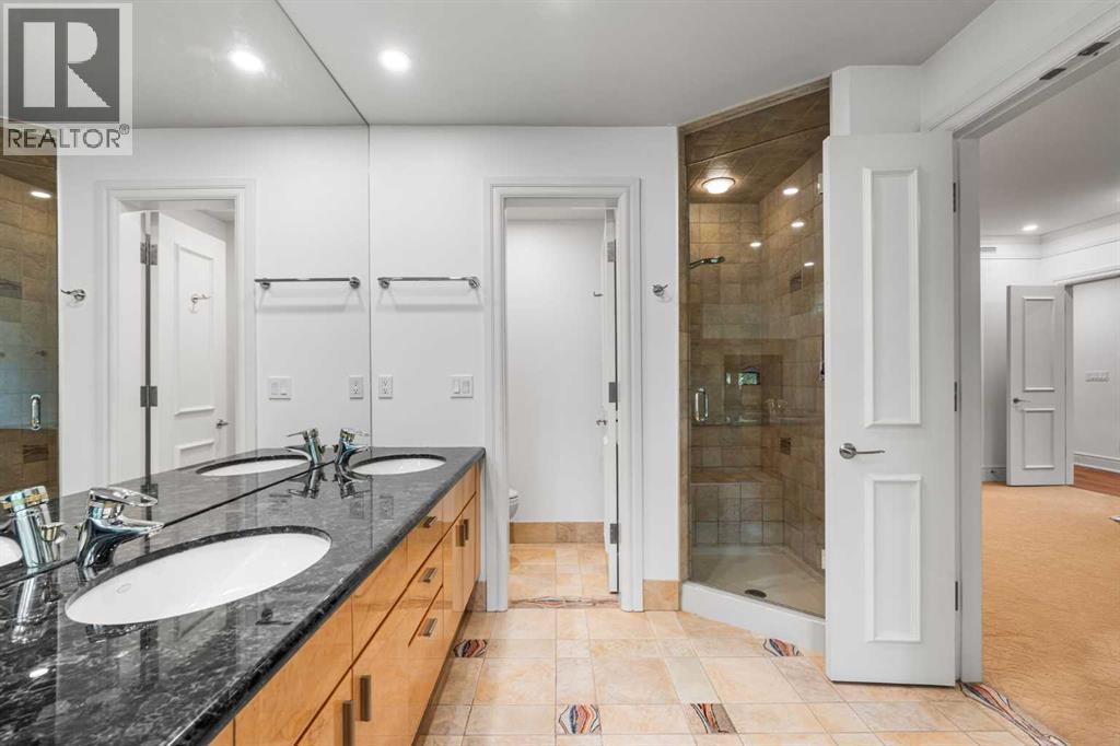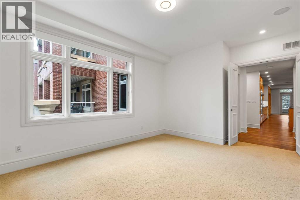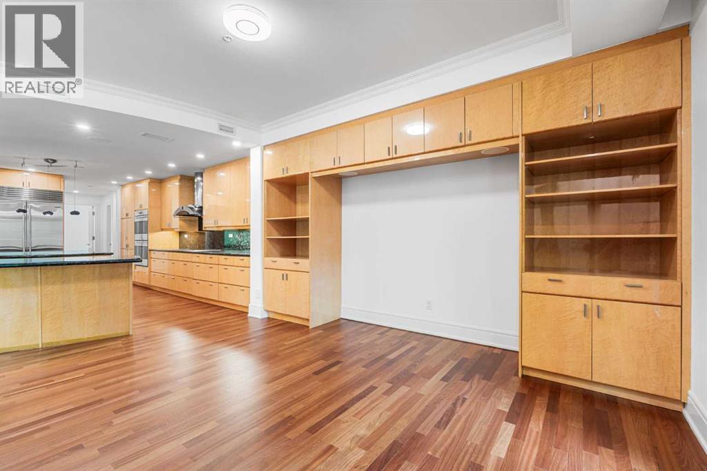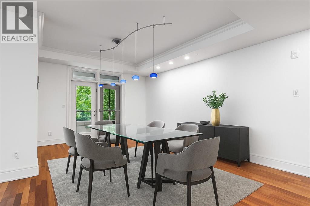 Welcome to Princeton Waterfront — Where Luxury Meets Tranquility, a rare and private retreat! Experience refined riverfront living in one of Calgary’s most exclusive residences. Nestled beside Prince’s Island Park in the heart of Eau Claire, this exceptional northwest-facing corner unit offers nearly 2,600 sq. ft. of sophisticated, yet inviting space, and is part of a boutique building with just only 7 of which share this prestigious address. With only 2 units per floor, this quiet unit shares only one wall and offers sweeping north-west exposures that flood the home with natural light and showcases stunning views of Prince’s Island Park and the Bow River. A secured elevator opens directly into your private foyer, emphasizing the exclusivity of this remarkable home. Two expansive terraces invite outdoor living. One expansive terrace, off the kitchen, is west-facing with park views and a BBQ gas line — perfect for entertaining. The second, accessed from the living room, features unobstructed park and river pathway views, ideal for relaxing in peace and tranquility. The sophisticated open-concept living and dining area features 9’ ceilings, gleaming newly refinished hardwood floors, a gas fireplace, and double French doors to the riverfront terrace. Floor-to-ceiling curved windows provide breathtaking views . The chef’s kitchen is a work of art, with custom Birds-eye maple cabinetry, Granite countertops , an induction cooktop, wine fridge, and a generous dining bar. Premium Sub-Zero, and Miele appliances complete this culinary haven. The elegant and private primary suite offers park views, a large walk-in closet, and a luxurious ensuite with a stand-alone tub and a two-sided fireplace that adds warmth and charm to both the bedroom and bath. Two additional bedrooms, one with an ensuite are both generously sized, each with walk-in closets. A spacious laundry room , built-in cabinetry, and additional storage adds everyday conveniences. Unmatched Amenities & Location - En joy 3 titled, side-by-side underground parking stalls, plus a private 212 sq. ft. storage/workshop room located in its own wing of the parkade. Additional conveniences include access to a car wash bay, concierge-registered guest parking in the gated courtyard, and beautifully landscaped grounds with seasonal plantings. Step outside to enjoy direct access to Calgary’s extensive Prince’s Island Park and the river pathways, renowned fine dining, shopping, and downtown amenities — all while enjoying the peace and serenity of your private, nature-connected oasis. This is a very rare opportunity to own a luxurious, custom-designed residence in one of Calgary’s most coveted locations. Experience elegance, comfort, and a lifestyle defined by tranquility and convenience at Princeton Waterfront. Call your trusted realtor today for your private showing. (id:51913)