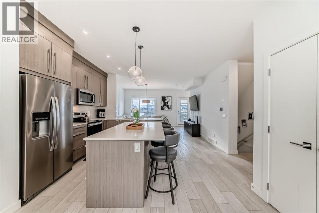 BEAUTIFUL 4 Bedroom townhome! Upon entering this bright and sunny townhome you will be impressed with the functional layout and neutral colour palette. The main level features open concept kitchen/living/dining with luxury vinyl plank flooring, quartz countertops, high ceilings and a powder room-tucked away. Pantry, large balcony with a view of the mountains are just a couple more features of your main living space. Retreat upstairs to your primary bedroom with tray ceiling, walk in closet and 4 piece ensuite bathroom. 2 more good sized rooms, laundry and full bathroom complete this level. The ground level features a rare 4th bedroom, and did I mention a double attached garage?! All located in the community of Pinecreek, close to shopping and parks. (id:51913)