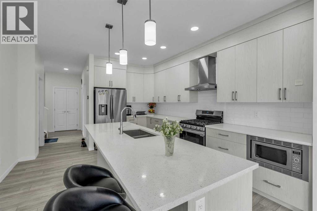 This 2024 new home offers over 3,300 sq ft of beautifully designed living space on an oversized 31 ft wide by 135 ft deep lot. With a total of 8 bedrooms, including a 3-bedroom legal suite with its own private entrance, kitchen, laundry, and living area, this property is perfect for large families or those looking for rental income potential. The main floor features a spacious bedroom and a full bathroom, ideal for guests or multi-generational living. The open-concept kitchen is a chef’s dream, equipped with stainless steel appliances, a gas stove, chimney hood fan, oversized island, and a walk-in pantry. The living and dining areas are bright and inviting, with large windows, 9 ft ceilings, and an elegant electric fireplace.Upstairs, you’ll find four generously sized bedrooms, including two master bedrooms with private ensuites. The other two bedrooms share a full bathroom, and a convenient laundry room is located on the same level. A vaulted bonus room with pot lights adds the perfect touch of comfort and functionality for family gatherings or relaxation. The legal suite is finished with high-end details, including granite countertops and stainless steel appliances. Additional features include a 220V outlet for electric vehicle charging and close proximity to schools, shopping, parks, and other essential amenities. This home combines luxury, functionality, and investment potential all in one. (id:51913)