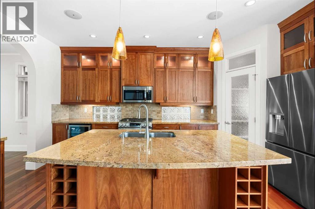 ***OPEN HOUSE SATURDAY OCTOBER 18th 2-4:30***PLEASE VIEW THE DRONE VIDEO** PLEASE NOTE THE LARGER 33’ x 125’ LOT LOCATED ON A QUIET WIDE, TREE LINED STREET IN THE HEART OF WEST HILLHURST! TRIPLE HEATED DETACHED GARAGE. Bright and spacious family home with 3285 sq. ft. of living space and over $90,000.00 in upgrades! All the interior walls have been freshly painted. Tons of natural light through the large windows and glass block features throughout this home. Gleaming Brazilian Cherry floors on the main floor. A truly unique floor plan that features a large living room with gas fireplace and double French doors to the south backyard and large deck. Gourmet kitchen elegantly blends the gorgeous Cherry cabinetry with new stainless-steel appliances. Chefs will love the timeless granite counters and five burner gas stove. Large 6’9” granite island, eating bar and built-in wine storage. Large front formal dining room is perfect for family and entertaining. Terrific main floor home office located off the main entrance. Wide well-lit stairs to an exceptionally well-designed upper level. Expansive primary bedroom retreat with Cherry wood built-ins, three-way gas fireplace, vaulted ceiling and two large walk-in closets. A dream spa-inspired five-piece ensuite bathroom with separate granite vanities, elegant deep soaker tub and oversize tile shower. Two additional upper bedrooms feature vaulted ceilings, and each has its own four-piece bathroom! Convenient upper laundry includes the new upgraded washer and dryer. Spacious, open design fully developed lower-level features four egress windows, glass block window and walnut engineered hardwood floors. Expansive family/recreation area features an elegant corner gas fireplace and wine room. Large fourth bedroom and spacious three-piece bathroom with egress window and oversize walk-in shower make this perfect for guests or a nanny. Triple detached insulated, drywalled and heated garage. A wonderful south private backyard with 25’ freshly painted wood deck and paver stone patio with beautiful perennial garden. This location is so well connected that commuting to work, school and daily errands is easy. SAIT, U of C, Foothills Hospital and the inner core are just 10 minutes away. Outdoor enthusiasts will love this fabulous location nestled only two blocks from the banks of the Bow River Pathways. This premier location is the perfect place to call home. (id:51913)