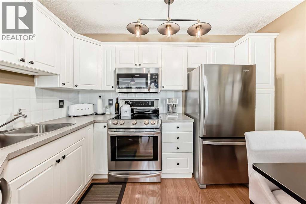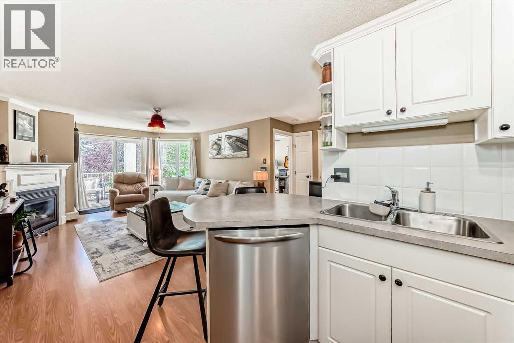 Excellent Opportunity in The Pavillions of Huntington Hills. Discover exceptional value in this beautifully maintained two-bedroom, two-bathroom condo in the desirable Pavillions complex. Perfectly located near major roadways, shopping, community centres, Nose Hill Park, downtown, the airport, and countless amenities, this home offers both convenience and comfort. Enjoy peaceful west-facing views from your spacious, covered balcony overlooking a charming tree-lined street. Inside, the open-concept layout features a bright, inviting living space with large windows and a cozy fireplace—ideal for cool fall evenings. The crisp white kitchen boasts stainless steel appliances, ample counter space, and a convenient eating bar, while the adjoining dining area provides a warm, welcoming setting for intimate dinners.The primary suite easily accommodates a full king-size bed with additional furniture, and offers a walk-in closet plus a private 3-piece ensuite with a walk-in shower. The second bedroom is perfectly positioned on the opposite side of the unit for privacy and is bathed in natural light. A well-appointed 4-piece bath completes the layout.This spotless home is freshly painted with stylish designer light fixtures and durable laminate flooring throughout. Storage is abundant—featuring a large in-suite laundry room, a private storage room on the balcony, and a storage cage above your titled underground parking stall. Living at The Pavillions means more than just owning a condo—it’s joining a welcoming community. Amenities include a billiards room, a car wash bay, a shared social space, a beautiful courtyard between the 6800 and 6900 buildings, and plenty of visitor parking. Move-in ready and priced to sell—book your showing today and see why this isn’t just an apartment, it’s a place to call home. (id:51913)