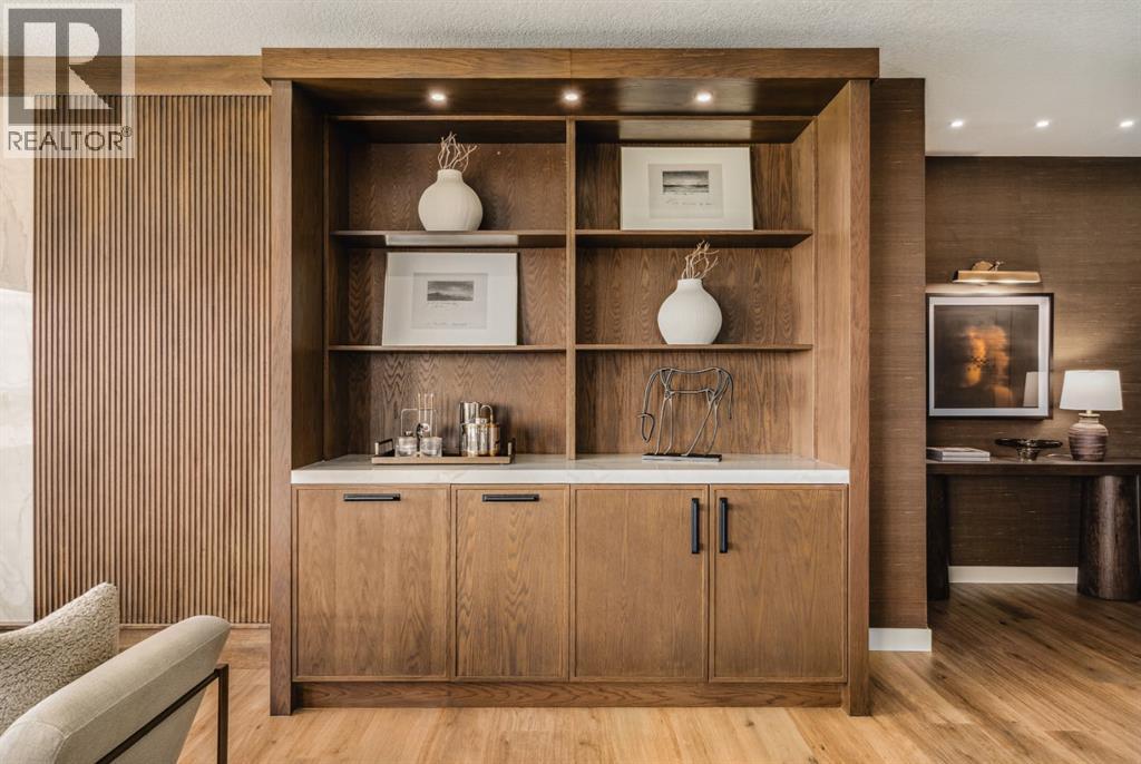 Welcome to Unit 205 in Building 1 of Altitude at Three Sisters—a thoughtfully designed two-bedroom Soleil 2 floorplan offering elevated single-level living with modern alpine flair. This second-floor home features a spacious covered patio, in-floor heating, tile in bathrooms, and durable LVP flooring throughout the main living areas. A 41" upper cabinet package with full-height risers, undermount bathroom sinks, and Samsung appliances—including a built-in cabinetry hood fan and front-control range—reflect quality and function. Complete with tandem underground parking, this residence offers practical luxury in the heart of the Rockies. Upgrades include upgraded microshaker cabinetry, full height cabinetry with riser to the ceiling, under cabinet lighting in kitchen, pot drawers in kitchen and in bathrooms, upgraded panel fridge with autofill water pitcher, custom cabinetry hood fan, extended kitchen island, gas range, electric wall oven, A/C, upgraded lighting package with pendant lighting and pot lights, LEX Valour 50" electric fireplace, full height kitchen backsplash, upgraded Kitchen sink, upgraded LVP flooring, upgraded tile selection in all bathrooms, skirted tub in main bathroom, fully tiled walk-in shower in primary with free standing tub.Monthly condo fees of $660 include heat, water, sewer, building insurance, snow removal, reserve fund contributions, and access to a community spa and hot tub—ensuring a seamless lifestyle. Built by award-winning Logel Homes who have a decades long pedigree of successful developments in Canmore and located in Three Sisters, next to the upcoming Gateway community hub with shops and grocery options, Altitude combines comfort, convenience, and a connection to nature. Possession anticipated Summer 2026. Visit our sales centre and show suite (closed Wednesdays) to explore this exciting new development and secure your future home in Canmore. Residential properties - no short term rentals. (id:51913)