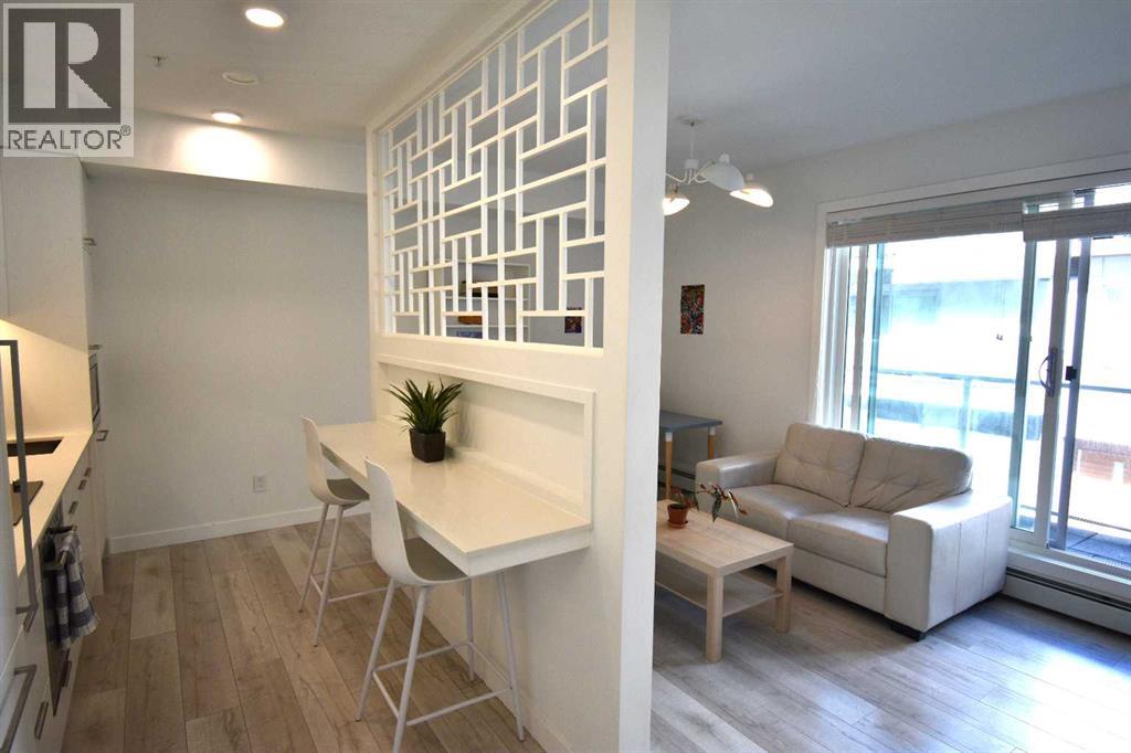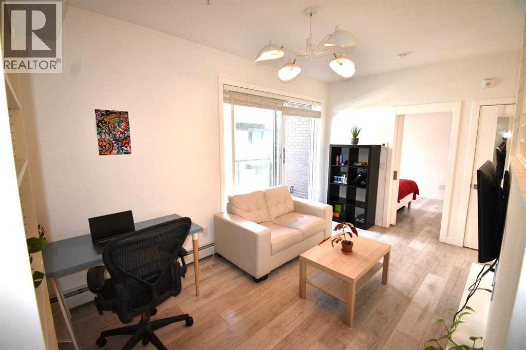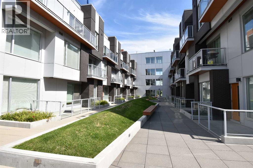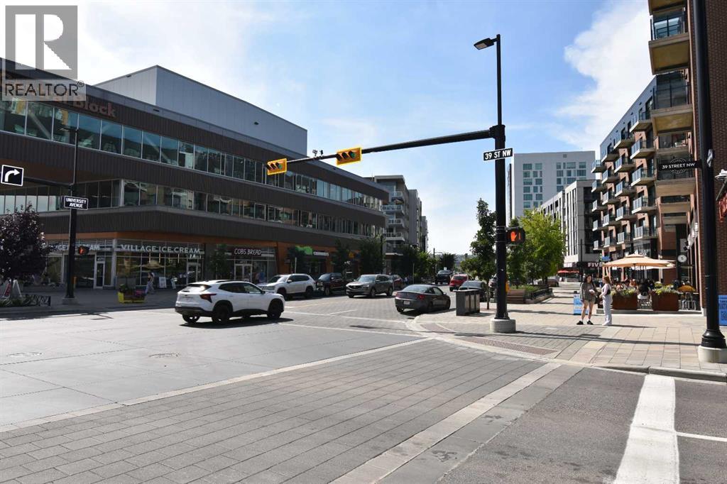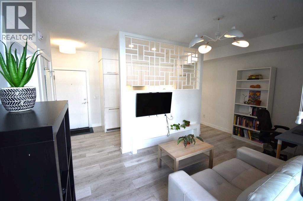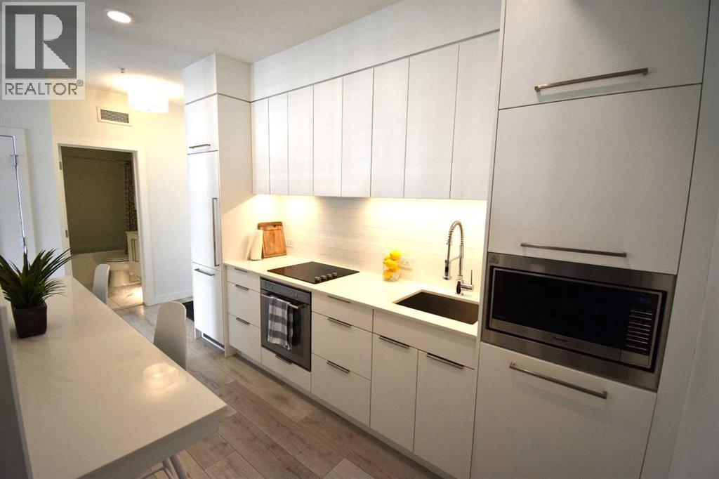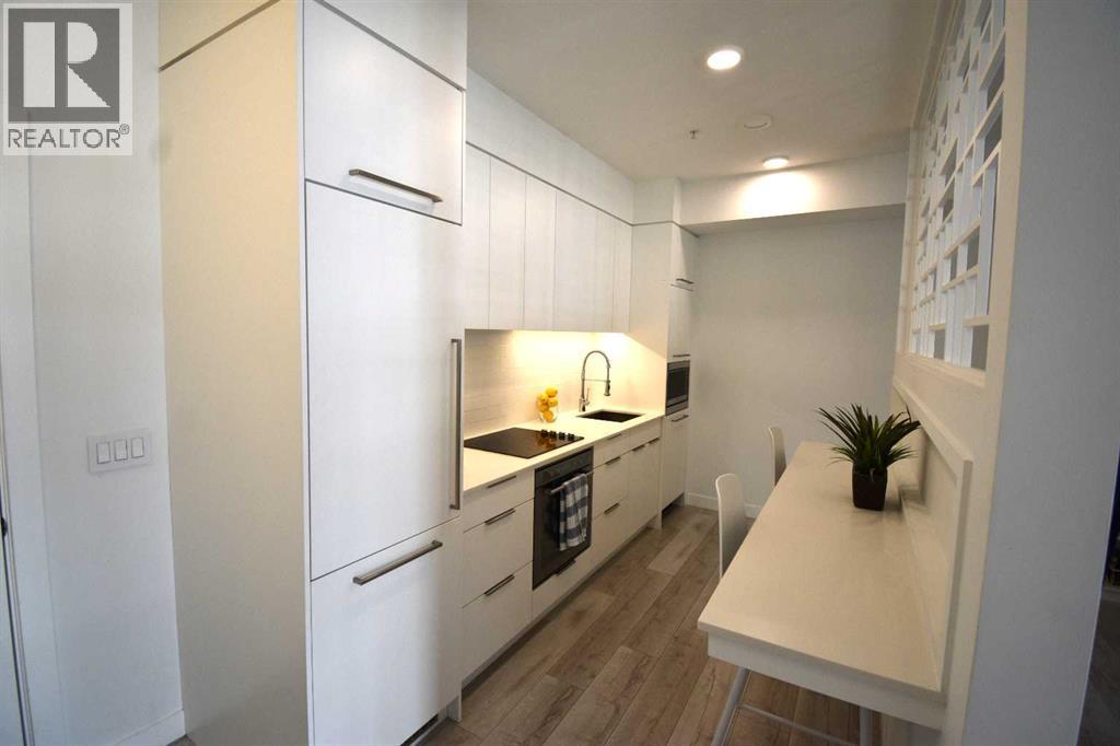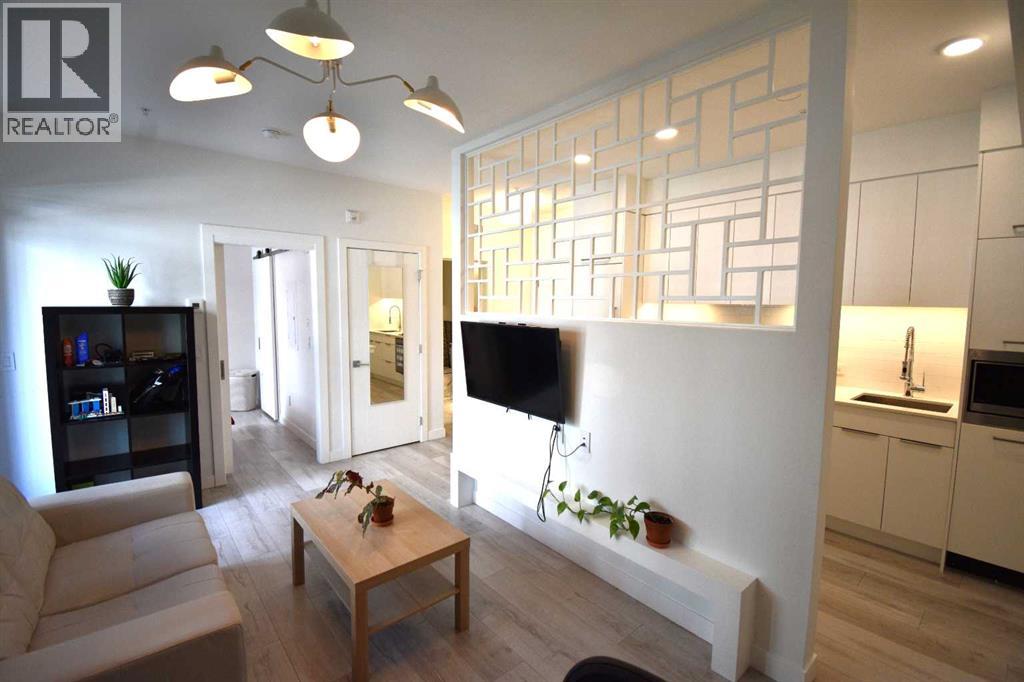 Welcome to the Noble, located in the heart of the University District. This stunning 1 bedroom, 1 bathroom home offers laminate and tile flooring a modern contemporary style with open concept layout. The bright white kitchen features quartz countertops, ample cabinet and counter space, a full height backsplash, breakfast bar & upgraded appliances. Enjoy an abundance of natural light in the spacious living room with large sliding glass doors leading out to a private covered balcony where you can enjoy your morning coffee, Don't miss the natural gas line for the BBQ. The primary bedroom features barn doors and a walk-in closet,. Rounding off this beautiful home is a 4 piece bath with in-suite laundry. Just a short walk or bike ride to The University of Calgary, Alberta Children’s Hospital, Market Mall nd the Foothills Hospital. Enjoy the many amenities that the University District has to offer including retail districts, open spaces/parks & biking & walking trails. This unit also includes 1 titled, secure, heated underground parking stall and access to two rooftop patios. Don’t miss out! Call today for more information or to schedule a private showing! (id:51913)