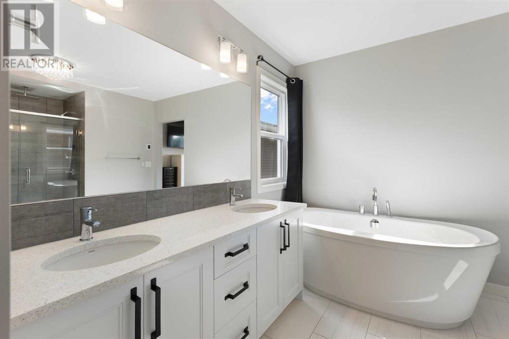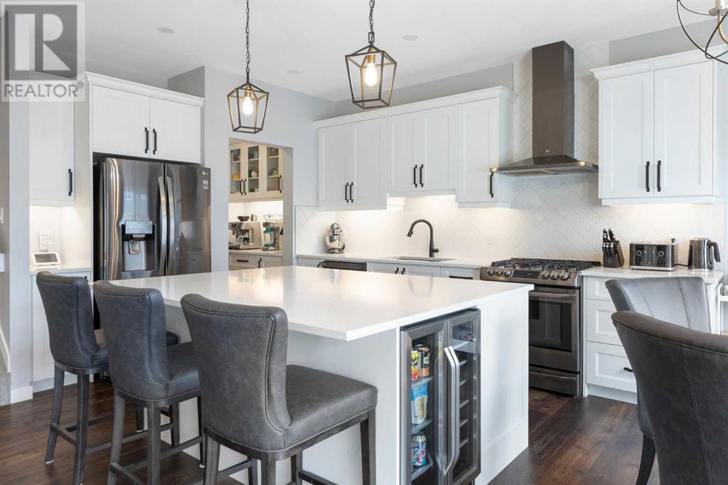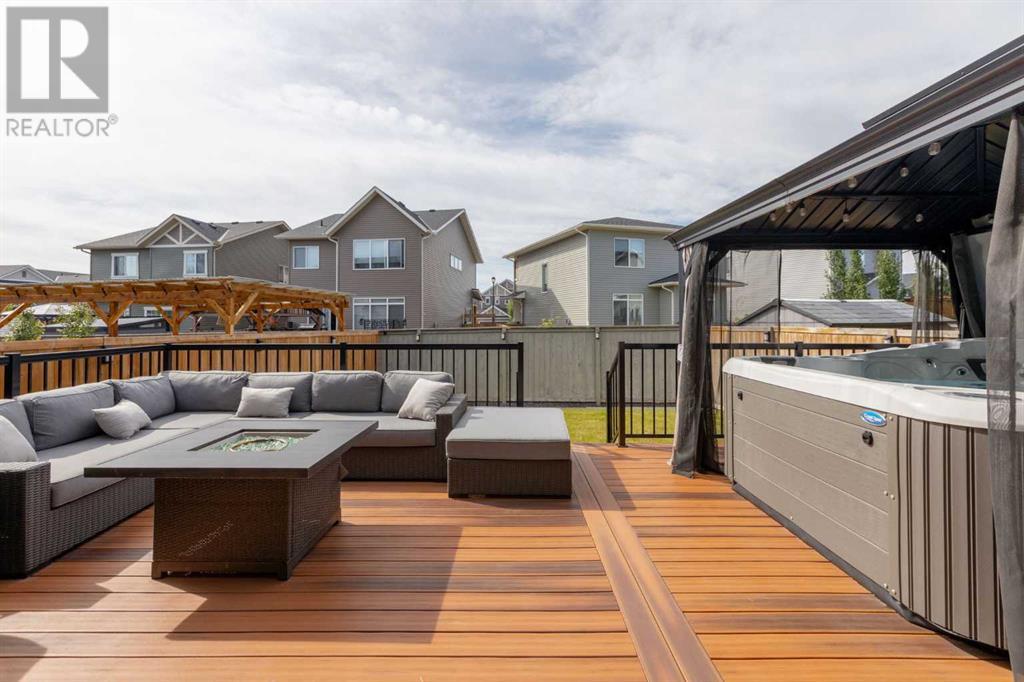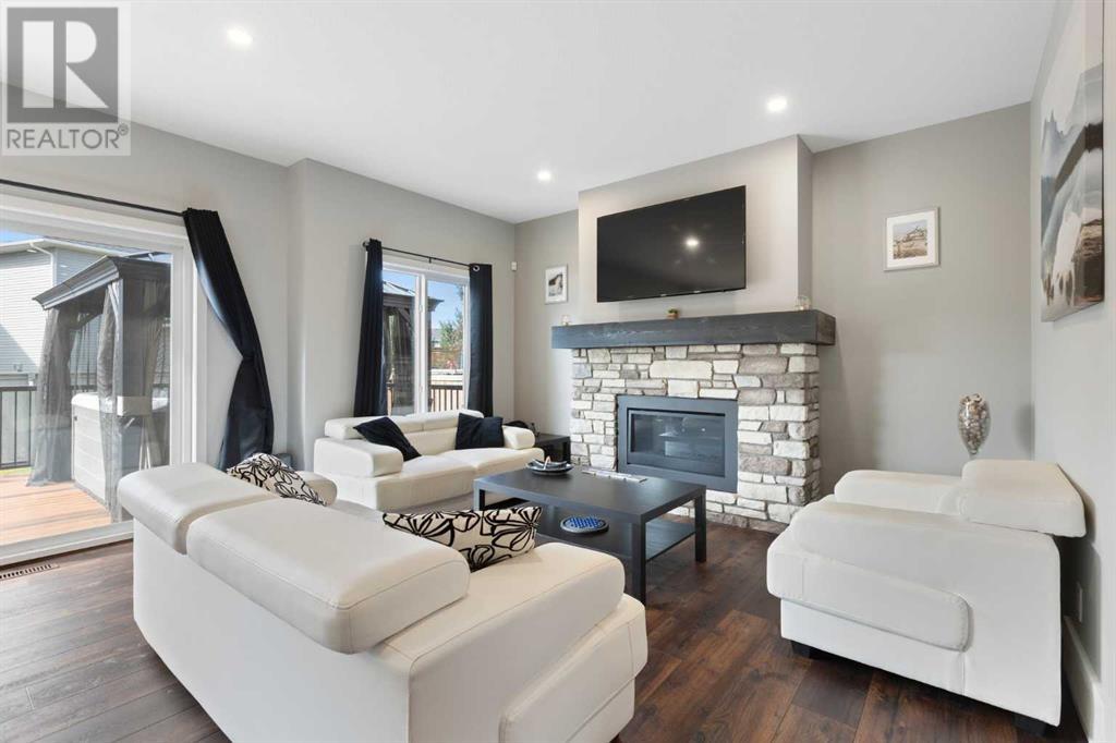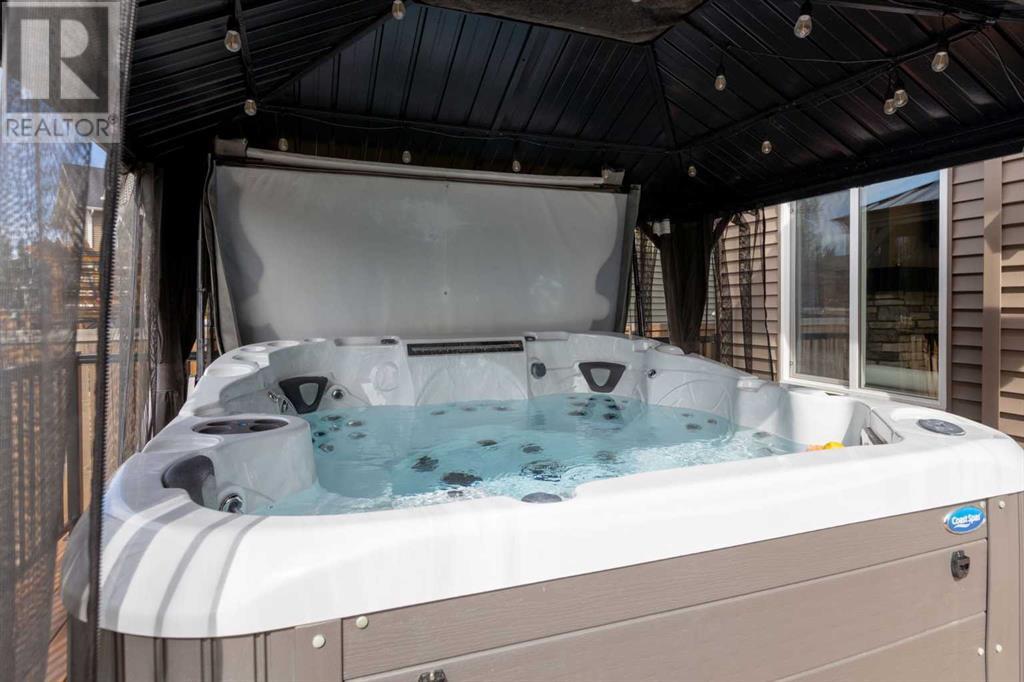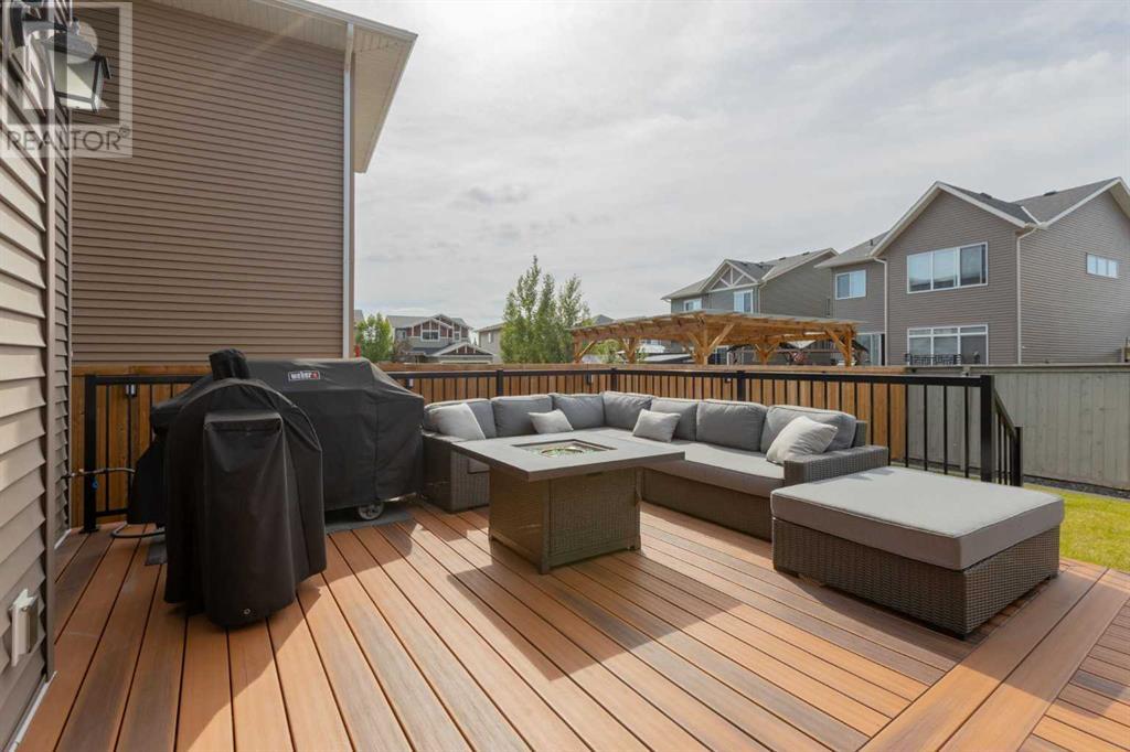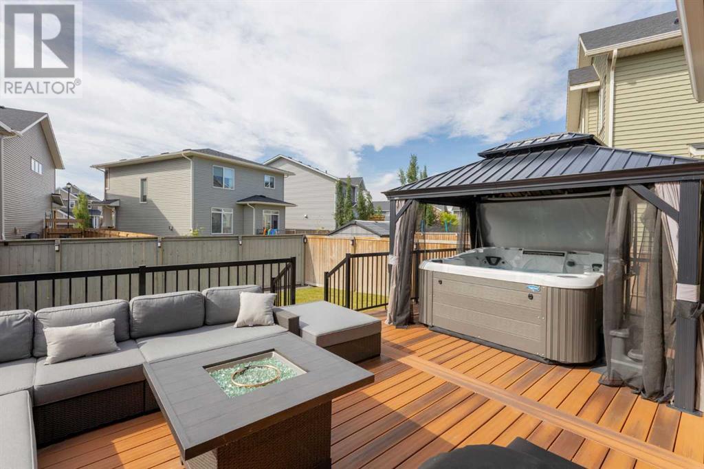 This impeccably maintained 4-bedroom executive home, located in the heart of sought-after Bayside Estates, is packed with numerous quality upgrades. Step inside and you’ll immediately notice the warm, rich LVP flooring that flows from the foyer past the private main floor office to the bright and airy open concept living space. The kitchen features an oversized quartz island with breakfast bar seating, black stainless-steel appliances including a gas range and chimney-style range hood, a built-in microwave and beverage fridge, soft-close cabinetry, and both a walk-in pantry and a butler’s pantry with bar sink. The living room centres around a natural gas fireplace—perfect to cozy up around on chilly nights—while oversized sliding patio doors allow gatherings to easily transition outdoors. Enjoy summer barbecues on the large, low-maintenance composite deck complete with a natural gas BBQ connector, gazebo and hot tub. Upstairs, the spacious primary suite is a private retreat featuring a luxury 5-piece ensuite with in-floor heating, dual vanities, a stand-alone soaker tub, and a walk-in closet. Three additional bedrooms—two with walk-in closets—share a full 4-piece bath, while a large bonus room and full laundry room round out the upper level.The basement is a blank canvas ready for your personal touch. Other highlights include central A/C, built-in drinking water filtration, a soft water conditioner with de-chlorination system, and underground irrigation outside. Bayside Estates is known for its beautiful canals, scenic walking paths, and quick access to parks (including popular Sandpiper Park), schools, shopping and dining. With nothing left to do but unpack, this perfect family home has it all. Check out the iGuide virtual tour and book your showing today. (id:51913)