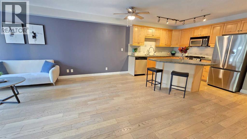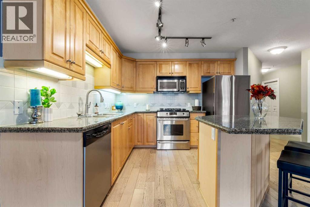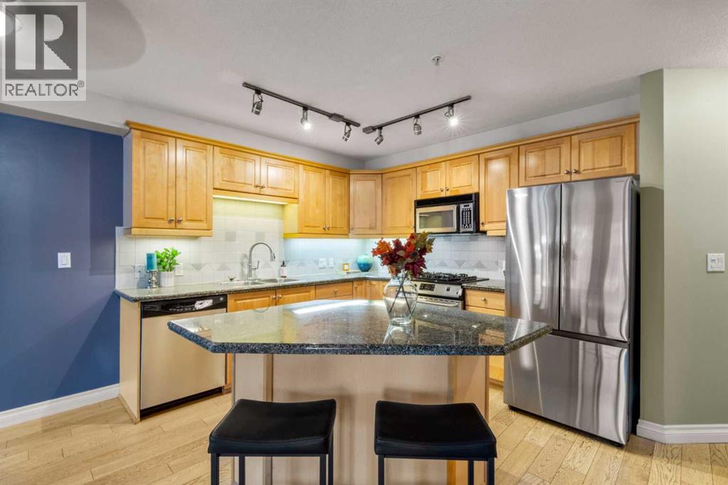 Discover the perfect balance of comfort, convenience, and charm in this beautifully upgraded 1 bedroom + den condo in the heart of Sunnyside. This pet friendly is tucked directly across from Riley Park, this home places you steps away from downtown, the C-Train, restaurants, coffee shops, and boutique shopping—everything you need is just outside your front door. Whether you’re a professional seeking walkability, an investor looking for a prime location, or someone who simply values easy living in a vibrant community, this condo is an exceptional opportunity. Inside, you’re welcomed by a thoughtful open-concept design that maximizes both functionality and style. The kitchen stands out with its abundant cabinetry, granite countertops, centre island, and upgraded stainless steel appliances, including a gas range. With hardwood flooring and neutral paint throughout, the space feels bright, modern, and inviting. The living area is anchored by a corner gas fireplace, creating a cozy atmosphere in cooler months, while the adjacent garden door opens to a private balcony—ideal for morning coffee or evening wind-downs. The bedroom is generously sized, complete with a walk-through closet that connects seamlessly to the 4-piece bathroom finished with classic tile flooring. The den, enclosed with French doors, offers flexibility as a home office, creative space, or even a quiet reading nook. Add in the convenience of in-suite laundry, and the home checks all the boxes for everyday comfort. This condo also comes with titled underground parking and an assigned storage locker, ensuring your vehicle and belongings are secure. Living here means enjoying not just the home itself, but the lifestyle that Sunnyside is known for—walkability, community spirit, and proximity to green spaces and amenities. With Riley Park as your front yard and Kensington only steps away, you’ll never run out of places to explore. Whether you’re starting your journey into homeownership, downsizing, or inves ting in a sought-after community, this Sunnyside condo delivers style, value, and location all in one. (id:51913)