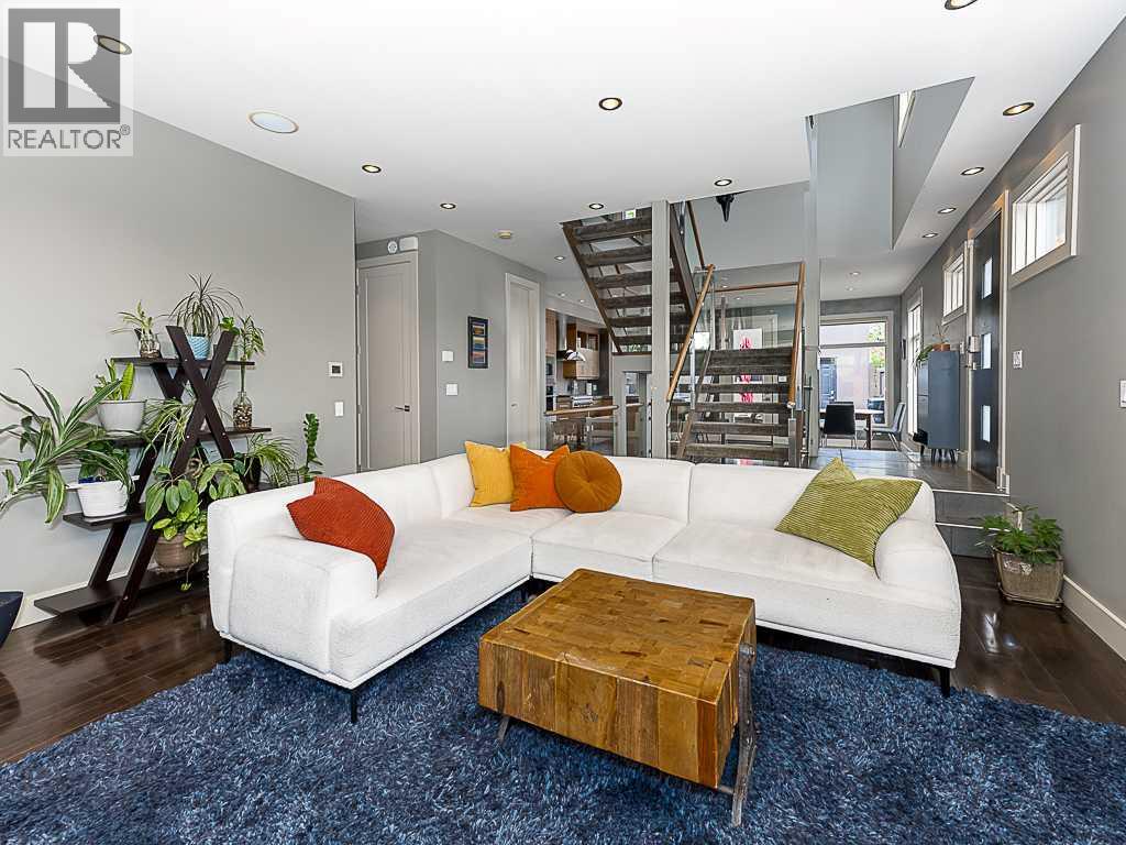 Open House! Friday Oct. 3. Welcome to this exceptional four-bedroom, three-and-a-half bathroom home, perfectly positioned on a sunny corner lot in the vibrant inner-city community of Richmond. Offering over 2500 square feet of developed space spanning three levels and a finished basement. This custom-built residence blends contemporary design, energy-efficient construction, and elevated comfort in every detail. Constructed with ICF (Insulated Concrete Form) walls, the home offers superior insulation, soundproofing, and long-term durability. Step inside to discover an open-concept main floor flooded with natural light. Stylish and functional, it features rich hardwood floors, a striking tiled finished fireplace, built-in shelving, sleek glass accents, and a seamless layout ideal for everyday living and entertaining. The chef’s kitchen is a true showpiece, complete with upgraded stainless steel appliances, stone countertops, a peninsula island with an eat-up bar, ample pantry space, and refined finishes throughout. The main floor is completed by a two-piece powder bathroom and a cleverly tucked-away “pocket office” with a built-in desk, which provides an ideal spot for remote work or homework. The second floor offers two additional well-appointed bedrooms, one with split unit wall AC, a four-piece bathroom, and a spacious laundry room providing ample space for family, guests, or a home office. The third-floor primary retreat is nothing short of spectacular, offering sweeping city views from your private deck or the comfort of your bed. The spa-inspired ensuite includes a steam shower, jetted tub, double vanity, heated tile floors, and sophisticated finishes. A walk-in closet and split wall AC unit complete this luxurious sanctuary. The fully developed basement adds versatility with in-floor heating, a large bedroom, a four-piece bathroom, and flexible living space ideal for a media room, home gym, or bonus living area, plus ample storage. Outside, the low-maintenance, fully fenced yard is perfect for entertaining or relaxing, with multiple gas hookups for a barbecue or fire features. The detached double garage is EV-ready and equipped with 220V power and smart outlets for charging. All of this is located just steps from dog parks, local cafes, shops, and more. This is your opportunity to experience inner-city luxury in a truly turnkey home that combines thoughtful design, modern convenience, and timeless appeal. (id:51913)