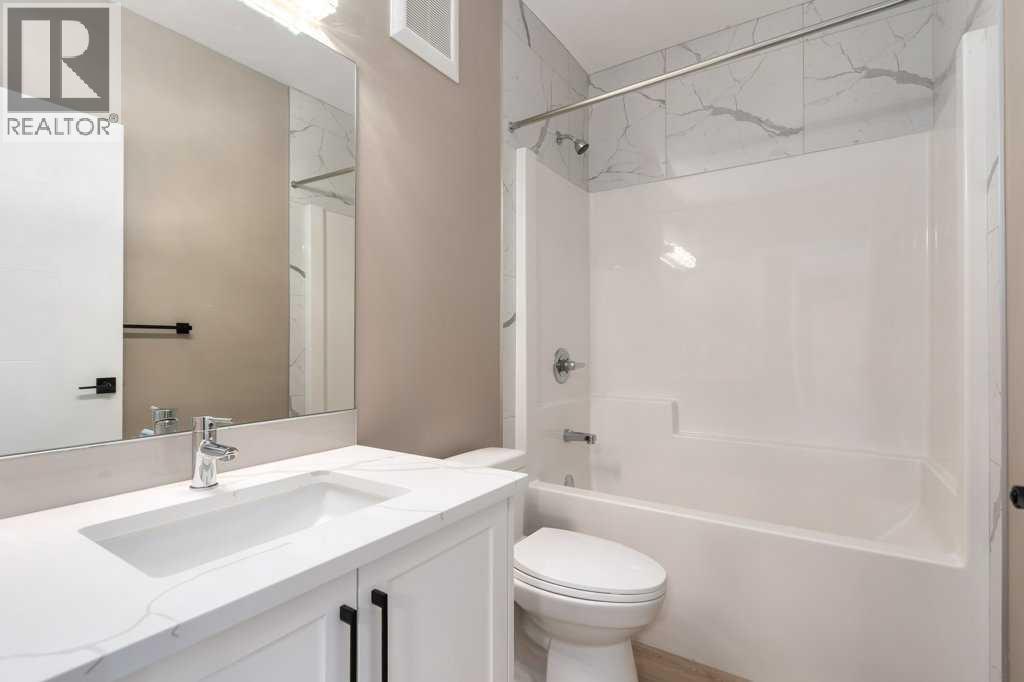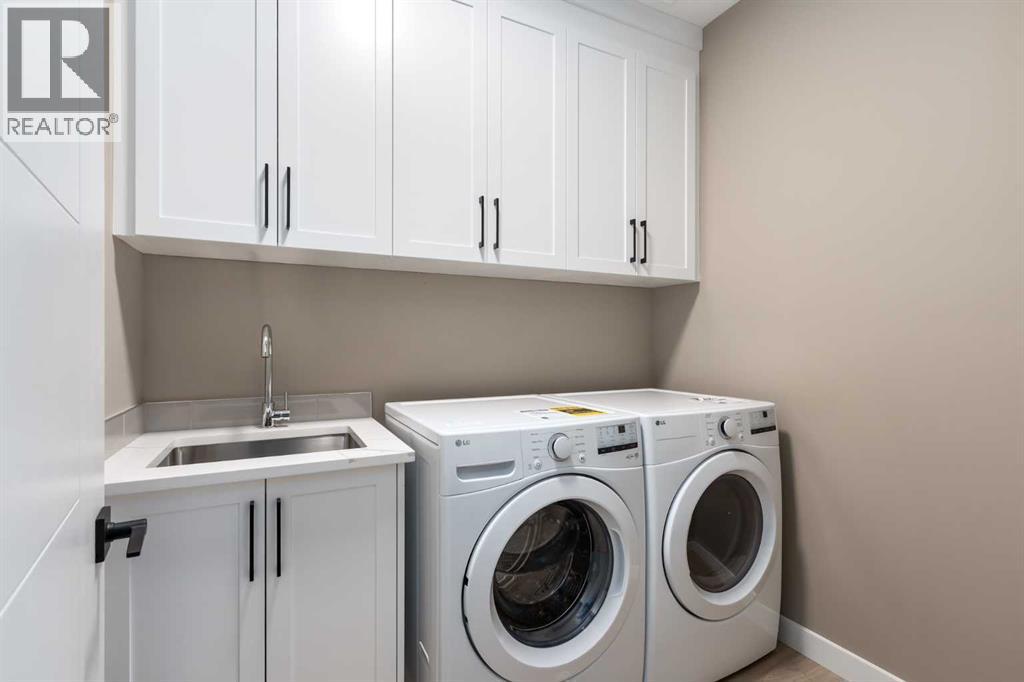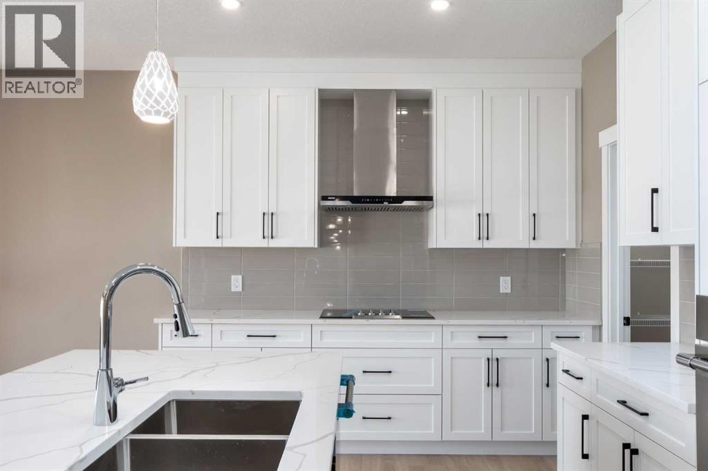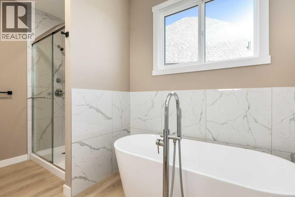This is a brand new triple garage bungalow with a fully finished walkout basement. It is 1608 sq ft in a great area close to a beautiful waterway and park, and has premium finishes throughout. The main floor is a modern open plan with a wide entry hall, 9’ ceilings, high quality flooring, and a 25’ deck. The kitchen includes cabinets to the ceiling, quartz counters, under-mount sink, select tiles, and a large walk-in pantry. Also on the main floor is the spacious and open living / dining room, the primary bedroom, a laundry room, and a second bedroom or office. Deluxe appointments in the master suite include built in cabinetry in the walk-in closet, a double vanity, a freestanding soaker tub and a 6' shower. The lower level has three more spacious bedrooms and a very big family room with a built-in wet bar, a full bathroom and patio doors to a shady covered patio. All rooms in this home have lots of natural light, and there are many extras including a 8’ island in the kitchen, two fireplaces, and a Hardie board exterior. (id:51913)