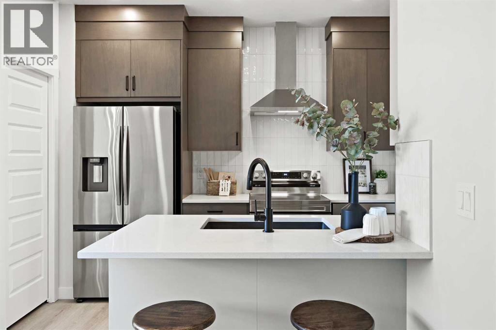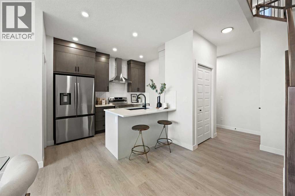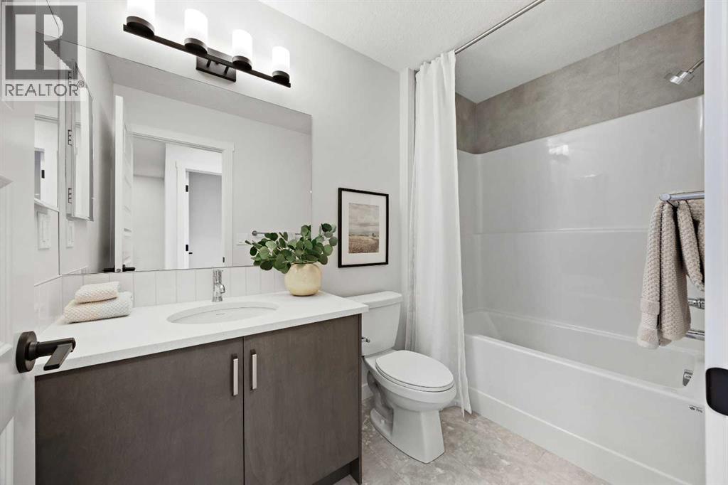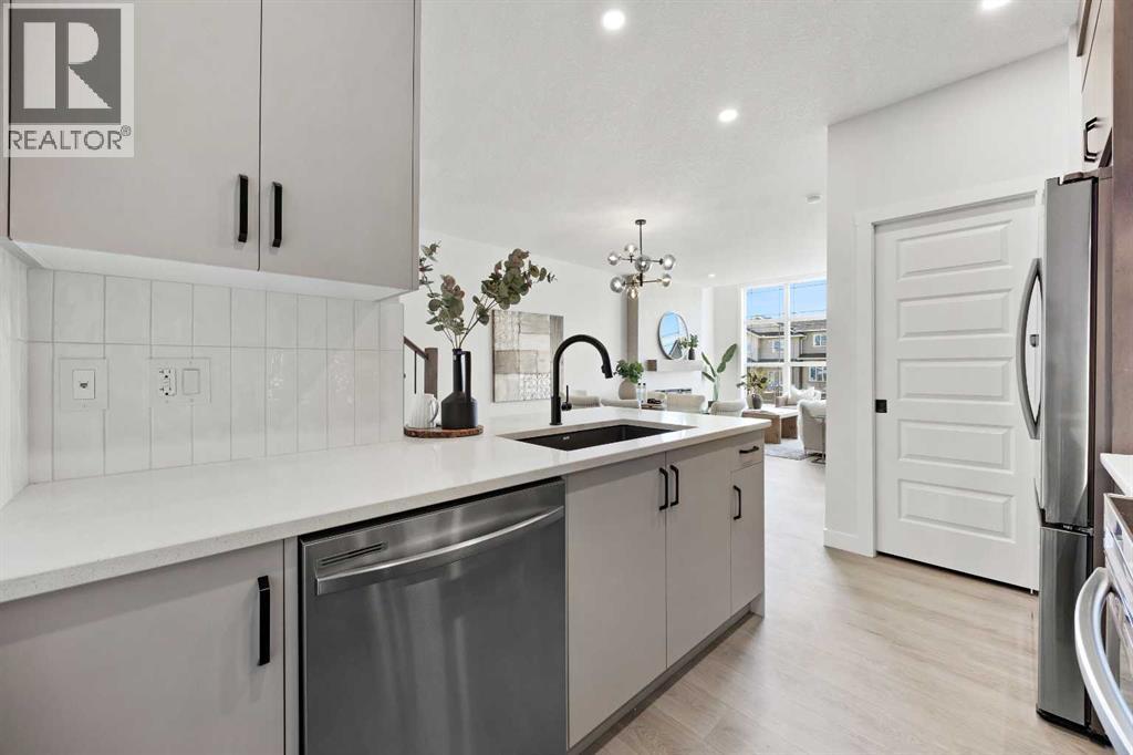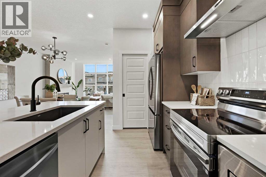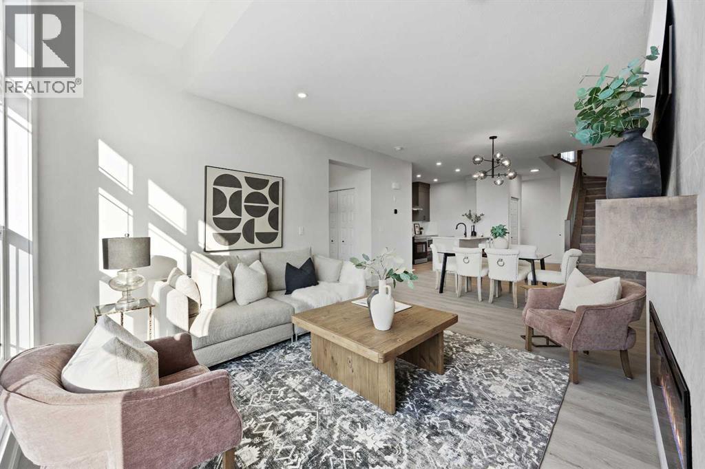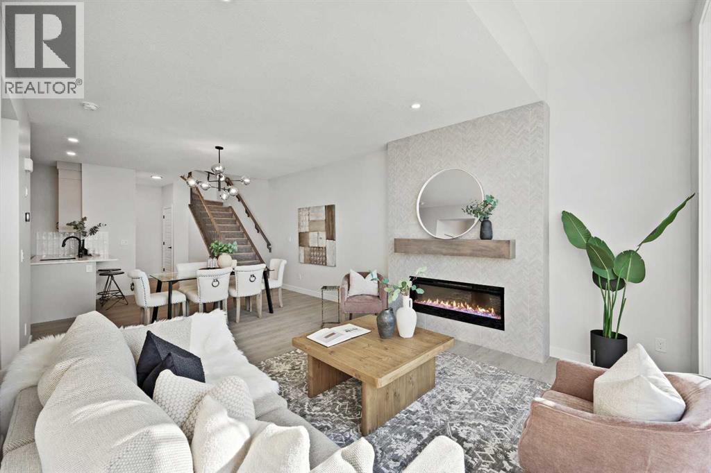 Genesis Builders introduces the Eli - a luxury street-side luxury townhome with NO CONDO FEES! The Eli townhome features an attached double garage, a rooftop patio, and low-maintenance living. The thoughtfully designed home offers over 1500 sq ft. plus an unfinished basement with 9-foot ceilings, ready for your ideas. Large windows and soaring ceilings on the main floor allow natural light to flow into the open-concept living space. The chef-inspired kitchen offers sleek cabinetry and stone countertops and is well-equipped with stainless steel appliances. The kitchen is tucked away, yet still feels open and inviting, allowing for ample room for activities in the open-concept dining and living room space. A floor-to-ceiling tiled fireplace is the living room's focal point. Complementing the main floor is a convenient half bath, storage, and access to the attached double garage, which is large enough for a truck. Venturing upstairs, you will find a spacious primary retreat with a spa-like ensuite featuring a spacious shower, his and hers sinks and a walk-in closet. Two additional bedrooms, a full bathroom, a flex room, a 4-piece bathroom, and laundry facilities complete the upper level. Enjoy spending time on your upper rooftop patio, situated above the garage, which is an excellent space for entertaining. Bayview is a beautiful community with parks, benches and pathways that meander throughout the community and along the canals. Kids and adults alike will enjoy the outdoor basketball nets, gym, amphitheatre, and tennis courts, which will convert into a skating rink in the winter. Come and see for yourself all the amenities the community has to offer! Area size was calculated by applying the RMS to the blueprints provided by the builder. Taxes to be assessed. (id:51913)