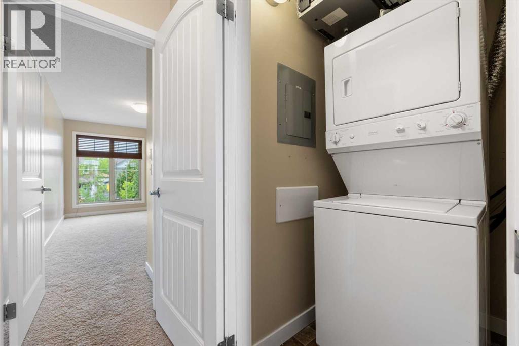 Immaculate 2 bedroom, 2 bath condo offering over 1,100 sq ft of modern living space in the desirable Evergreen SW community. This bright and well-maintained home features dark laminate floors, a spacious Master suite with a walk-in-closet and 4-piece ensuite bath. The second bedroom is ideal as a guest room or home office, with an additional 4-piece bathroom nearby. Enjoy the sun-filled living room with large windows and access to a private balcony to enjoy BBQ with friends or just relaxing evening coffee. . The dining area boasts vaulted ceilings, while the kitchen offers a center breakfast island, corner pantry and stainless steel appliances. Additional highlights include in-suite laundry, two parking stalls, and condo fees that include heat, water and sewer. Conveniently located with shops adjacent to the complex, and close to shopping, schools, parks and the scenic Stoney Trail. You will not be disappointed! (id:51913)