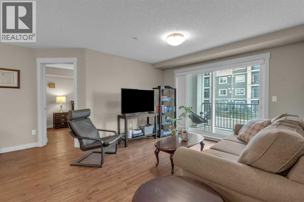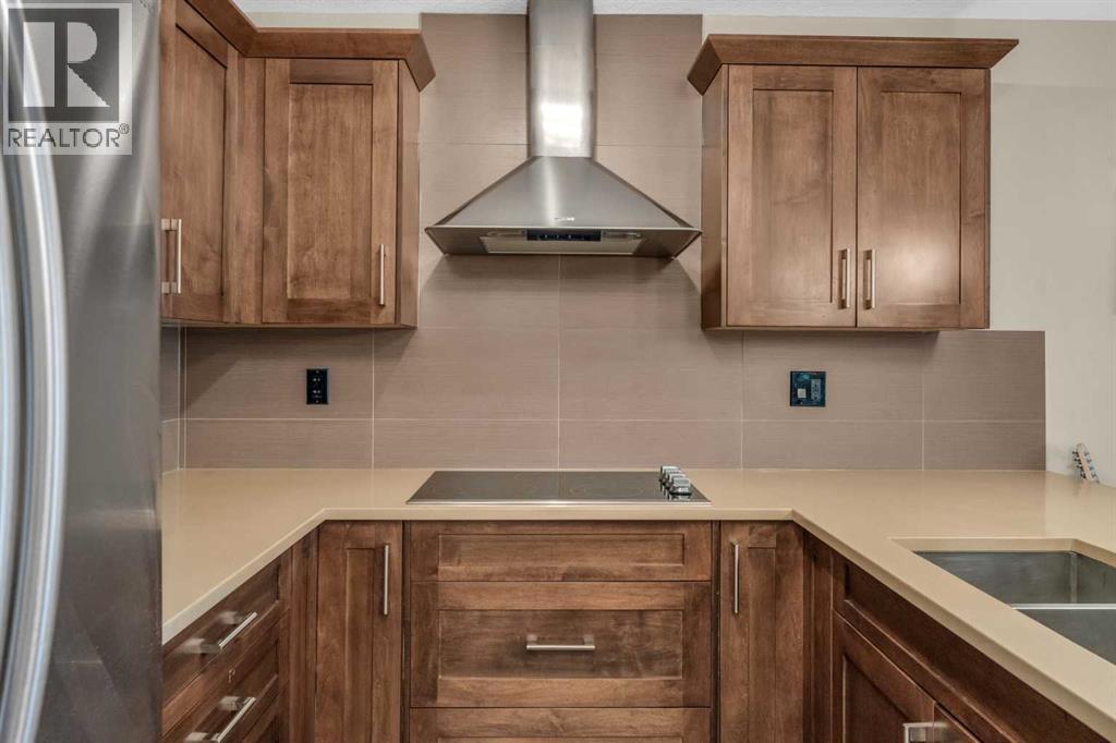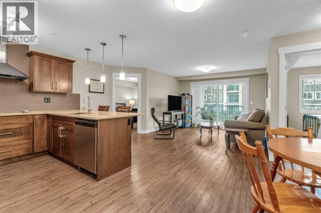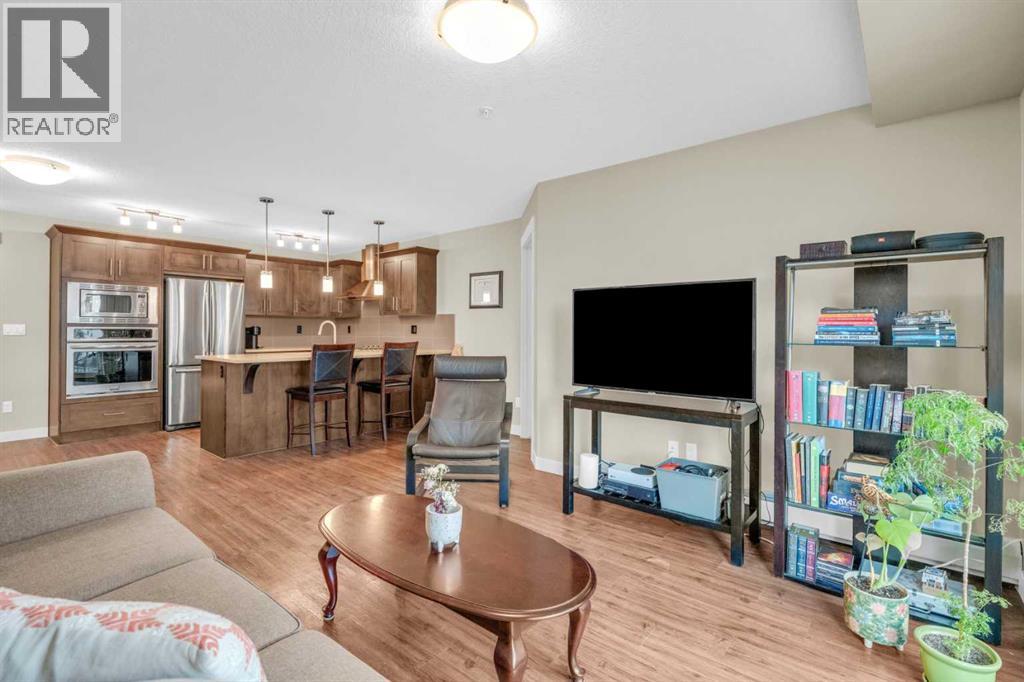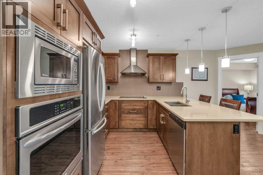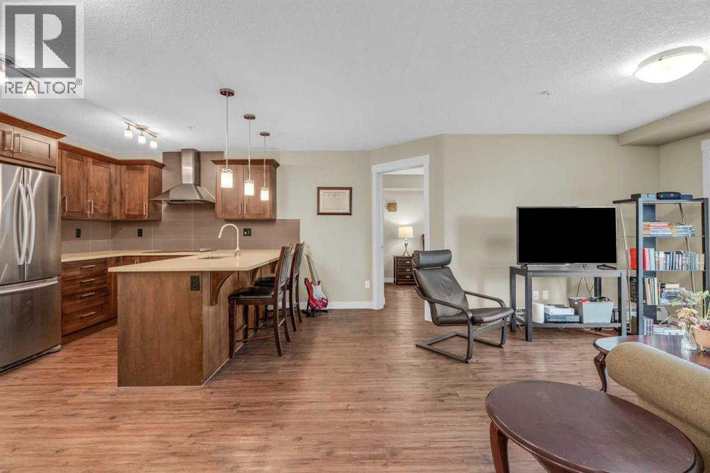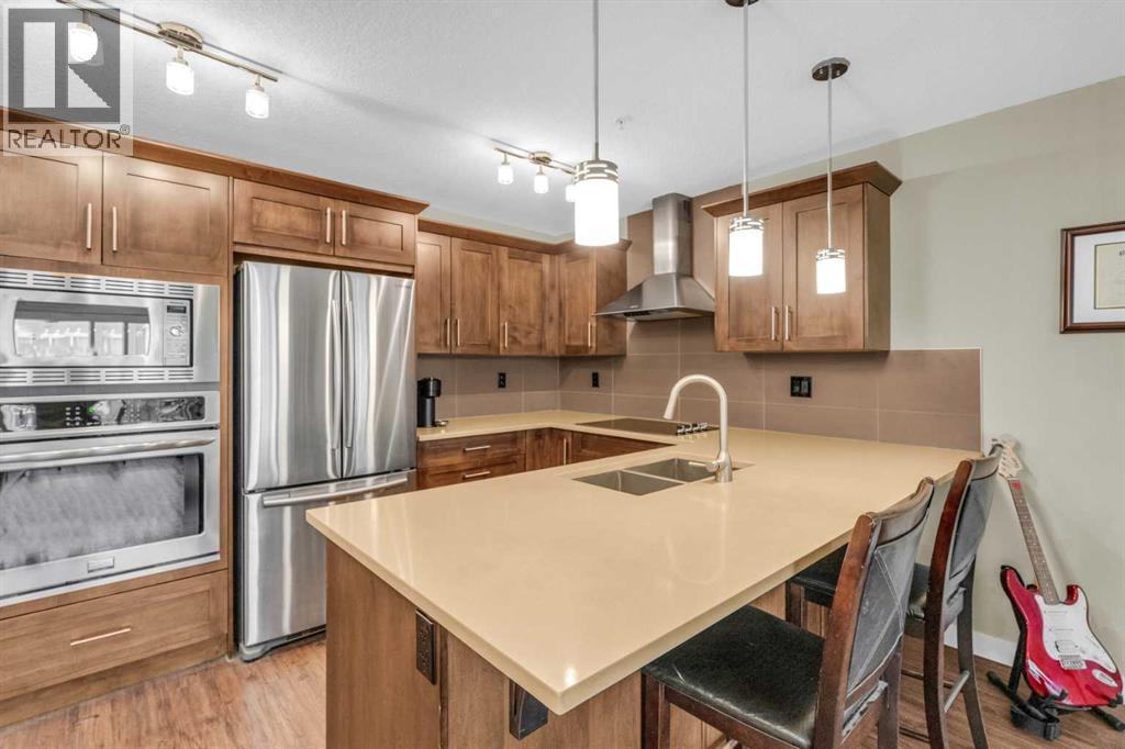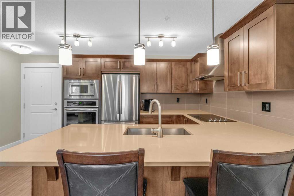 Welcome to your new home in the heart of Sage Hill, where thoughtful design meets everyday comfort. This beautifully upgraded 2-bedroom, 2-bathroom low-rise condo is the perfect blend of function and style. Step inside and fall in love with the STUNNING kitchen - a true centerpiece featuring a built-in microwave and wall oven, a sleek cooktop with a designer hood fan, and rich cabinetry that adds warmth and elegance. The open layout offers a dedicated space for your dining table, while the island provides additional seating . Luxury vinyl plank flooring flows through the kitchen, dining, primary and living areas, creating a seamless and modern feel. Plush carpet adds comfort to both bedrooms, chic tile completes the bathrooms, and natural light pours in from the west-facing windows, bathing the entire space in sunshine. The living room is spacious and easy to furnish, while the private balcony (with gas hookup) is perfect for summer BBQs and evening sunsets. The primary suite is a true retreat, offering a walk-through closet and a luxurious 4-piece ensuite with double vanities, spa-inspired shower, and ample storage. The second bedroom is bright and versatile, located next to a 4-piece bathroom complete with a tub shower. Additional features include: convenient in-suite laundry, neatly tucked away with extra shelving, an above-ground parking stall, ideally located near the front entrance, and a secure underground storage locker for seasonal and bulky items. Sage Hill is one of NW Calgary’s most desirable communities - surrounded by green space, walking paths, and natural ravines. You'll love the proximity to grocery stores, restaurants, shopping, and fitness centers, with easy access to Stoney Trail, Shaganappi Trail, and major commuter routes. Whether you're heading downtown or out of town, getting where you need to go is simple. Perfect for first-time buyers, downsizers, or investors - this condo checks all the boxes. A truly SMART move! (id:51913)