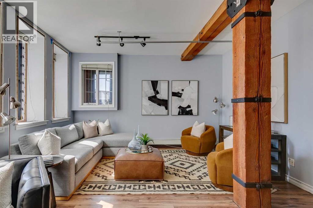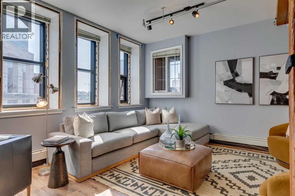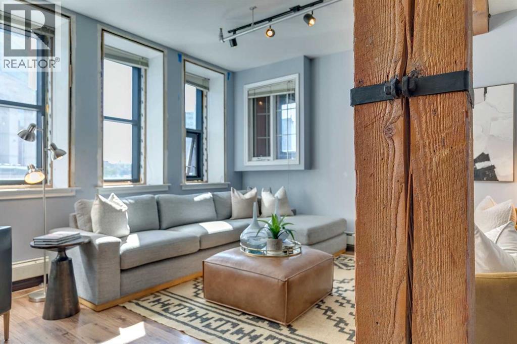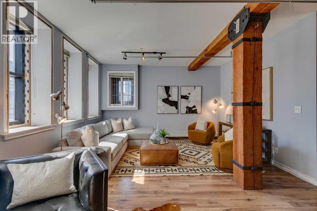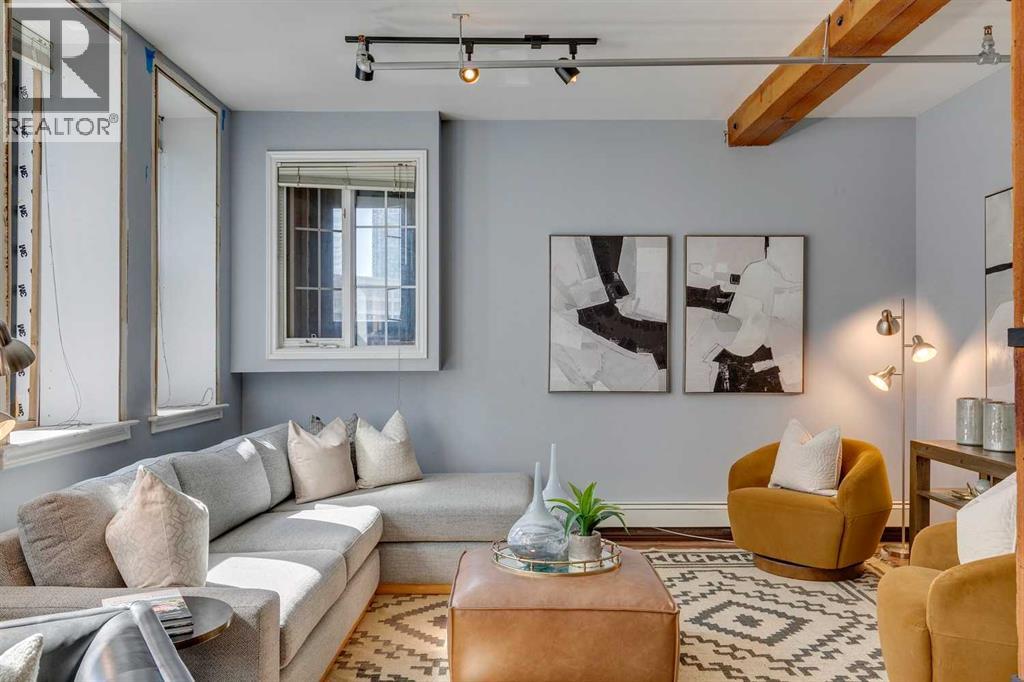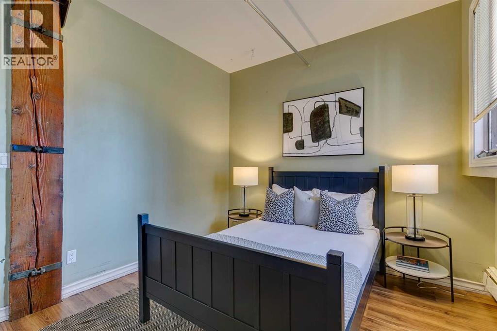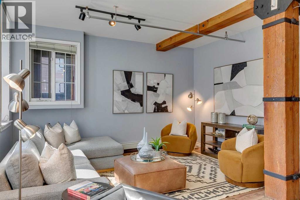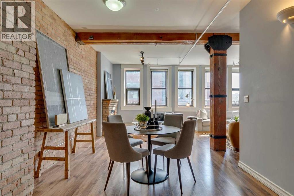 Nestled in the heart of Calgary's Beltline, this extraordinary red brick loft offers a rare opportunity to own a piece of the city’s rich history. Constructed in 1912 for the Imperial Tobacco Company by the renowned A. Dale and Associates, the architectural firm behind the iconic Calgary Tower, this building underwent a stunning conversion to lofts in 1995. For the first time ever, these timeless residences are available for sale, blending historical charm with modern sophistication. Offering over 1,100 SqFt, this expansive loft exudes character with its original brick walls, exposed wood beams, and soaring ceilings. A wall of windows floods the space with natural light, creating a warm and inviting ambiance reminiscent of a classic New York City loft. The open-concept layout is thoughtfully designed, offering endless possibilities for both living and working. A private den provides the perfect space for a home or business office, while two generously sized bedrooms are complemented by a five-piece Jack and Jill bathroom plus there is an additional three-piece bathroom. The galley-style kitchen features maple cabinetry with under mount lighting, stainless steel appliances, and a seamless flow into the dining and living areas. Whether you envision this space as your personal sanctuary or a dynamic live/work environment, the possibilities are as limitless as your imagination. Beyond the loft itself, the building offers an array of amenities, including a gym, a games room, and a rooftop patio with breathtaking views of the Downtown Skyline. An above-ground parking spot is also included, ensuring convenience in this vibrant urban setting. This is more than a home; it’s a lifestyle. A rare blend of history, elegance, and modernity, this loft is a once-in-a-lifetime opportunity to own a truly unique piece of Calgary’s architectural heritage. (id:51913)