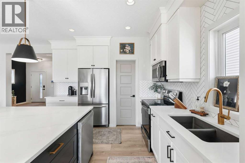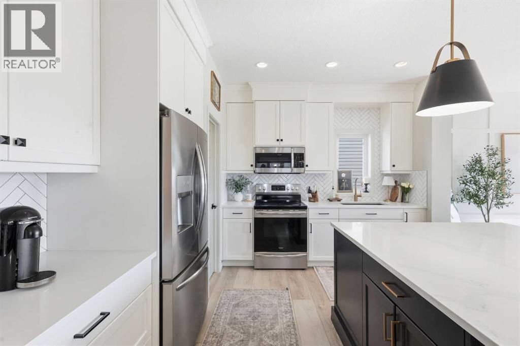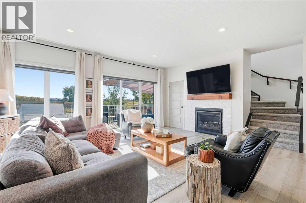 Welcome to 221 Wildrose Drive — a stunning two-story home that blends thoughtful design, timeless style, and a true sense of warmth. Built in 2019, this 2,148 sq ft home sits in one of Strathmore’s most picturesque settings, backing onto the canal and walking path where you can listen to the peaceful sound of flowing water all summer long. Step inside to a bright and spacious entryway that connects beautifully to both the front attached garage and a large closet space. The main floor offers a functional and elegant layout — featuring a bright home office or den, a stylish half bath, and an open-concept living area filled with natural light. The kitchen is the heart of this home with its oversized square island, striking stylish lighting, walk-in pantry, and abundant storage. The dining area is framed by a large window, while the living room invites you to relax by the fireplace surrounded by windows that showcase the canal view. Upstairs, the primary retreat offers beautiful prairie and water views, a walk-in closet, and a spa-like ensuite with double vanity, soaker tub, and separate shower. A spacious bonus room, laundry with storage, two additional bedrooms, and a full bath complete the upper level. The fully developed basement continues the same elevated design — featuring a cozy family room with a shiplap-accented fireplace, a fitness area, a fourth bedroom, a full bathroom, and more storage. Step outside to enjoy a low-maintenance backyard with stunning stonework, a covered deck, and a custom pergola — the perfect spot to unwind while taking in the view of the canal and path behind. Wildrose is a welcoming, family-friendly community with access to parks, playgrounds, and pathways that connect seamlessly throughout town. Immaculate, light-filled, and move-in ready — this home truly shows like a show home and offers the perfect balance of style, comfort, and connection. (id:51913)