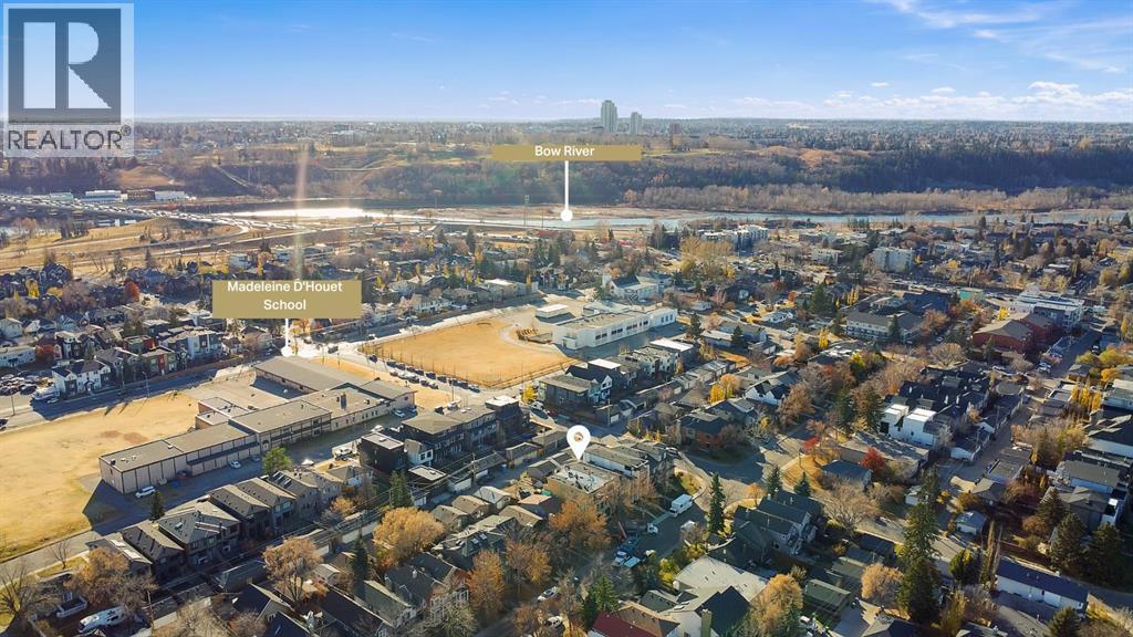Modern, calm, & thoughtfully composed. This brand WEST HILLHURT semi-detached home blends clean architecture w/ warm, natural finishes across THREE LEVELS, including a loft level w/ bonus area, bright bed/office, & balcony/ DOWNTOWN VIEWS, plus a fully developed LEGAL 2-BED LOWER SUITE (approved by the city). Step inside to a welcoming foyer w/ plenty of space to move around & manage shoes & coats, neatly stored in the built-in closet. A pocket office w/ a built-in desk provides a convenient spot for work-from-home tasks. The front dining area offers a quiet place for morning coffee & a lovely backdrop for family meals. The kitchen truly steals the show w/ the oversized island w/ seating for quick breakfasts, charcuterie nights, or laptop catch-ups. Cabinetry is full-height w/ lots of lower drawers for a modern vibe. The working wall keeps cookware & small appliances tucked away, while quartz surfaces read clean & durable. At the back, the family room is all about comfort. The gas fireplace w/ simple built-ins gives you space for art & books, while the layout makes TV viewing effortless. Sliding patio doors to the backyard floods the room w/ light & sets up easy indoor-outdoor living. The rear mudroom is exactly where you want it, fitted w/ custom storage & a bench so shoes, bags, & dog leashes have a home. A discreet powder room completes this level.Upstairs, the PRIMARY SUITE feels like a retreat at the end of the day. You get a true walk-in closet & an ensuite that checks every box: DOUBLE VANITY, an oversized shower, & a FREESTANDING TUB that actually invites a soak. The secondary bedrooms features their own 4-pc ensuites & built-in closets giving families the flexibily they desreve. The LAUNDRY ROOM up here saves steps & keeps the main floor tidy.The loft level adds space to spread out across the home, w/ a bright & spacious bedroom or optional office w/ glass partition wall & French door, w/ built-in storage. The bonus rec area features a modern & upsc ale wet bar, w/ access to the oversized balcony w/ downtown views! There’s also a full 4-pc bath on this level for convenience! Downstairs, the legal 2-bed suite (approved by the city), keeps the modern & upscale feel going w/ a full kitchen w/ quartz & stainless steel appliance package, good-sized living area, separate laundry, a primary bed w/ private ensuite bath, & a second bed w/ quick access to the main 4-pc bath.Walk to neighbourhood parks for quick dog runs & fresh air. Schools are excellent here – Hillhurst School for K-6, Queen Elizabeth Junior High & Senior High just up the road, & William Aberhart High School for advanced academics & sports programs. Weekend coffee, local bakeries, & casual dining are all within minutes, & downtown is an easy commute by car, bike, or transit. River pathways make a perfect loop for a jog or sunset stroll. It’s the right mix of community feel & city access. (id:51913)