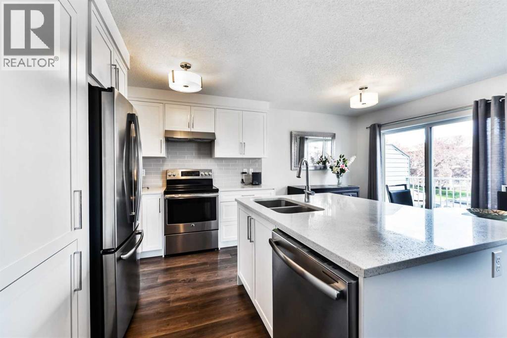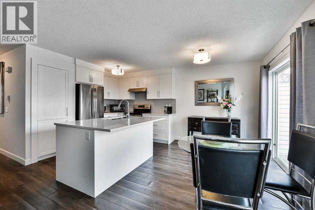 Come view the this well appointed townhome within the The Georgetowns at Rocky Ridge complex. The townhome has been updated with newer counters , flooring and developed walkout basement . The townhome is a two storey with an open floor plan . The main floor has a large open living room space , modernized kitchen and full size for dining room. The kitchen / dining room opens onto patio doors with balcony. The main floor also has a 2 pce bathroom , and access to single attached garage . The second floor has three full size bedrooms , with the primary bedroom ( 11'.9" x 16' ) that includes a walkin closet. The walkout basement has been developed with a full size family room with patio doors opening to nicely concrete patio and backyard. (id:51913)