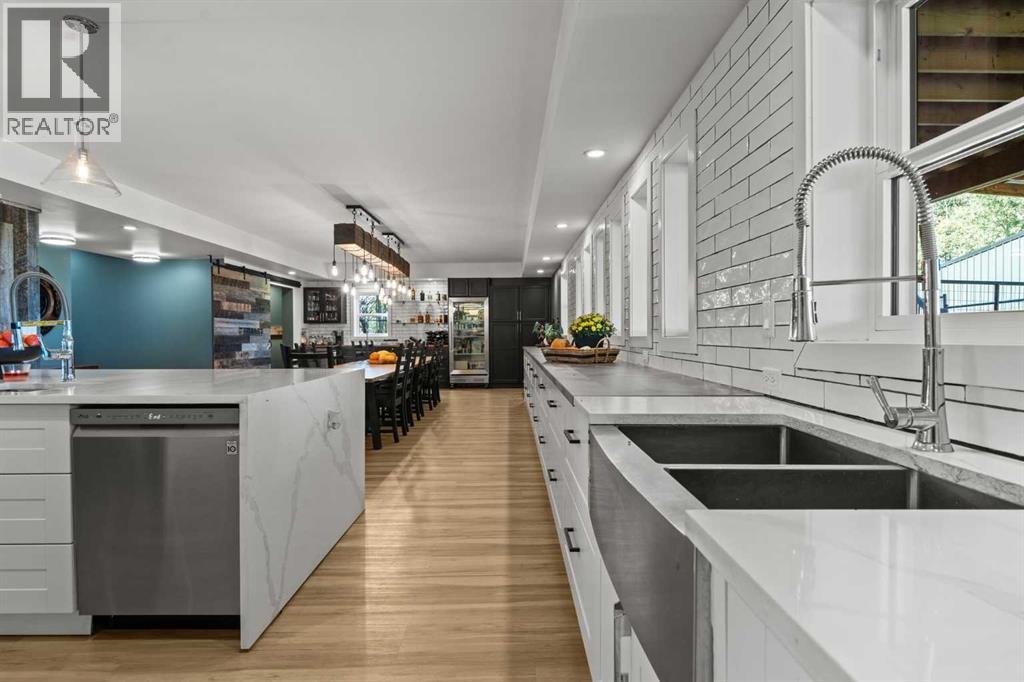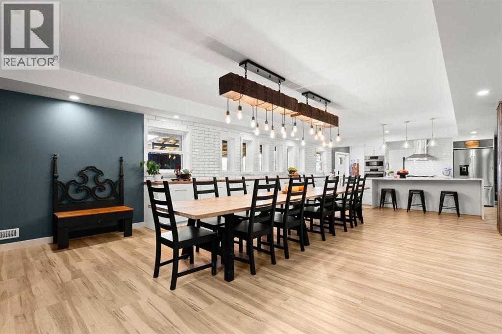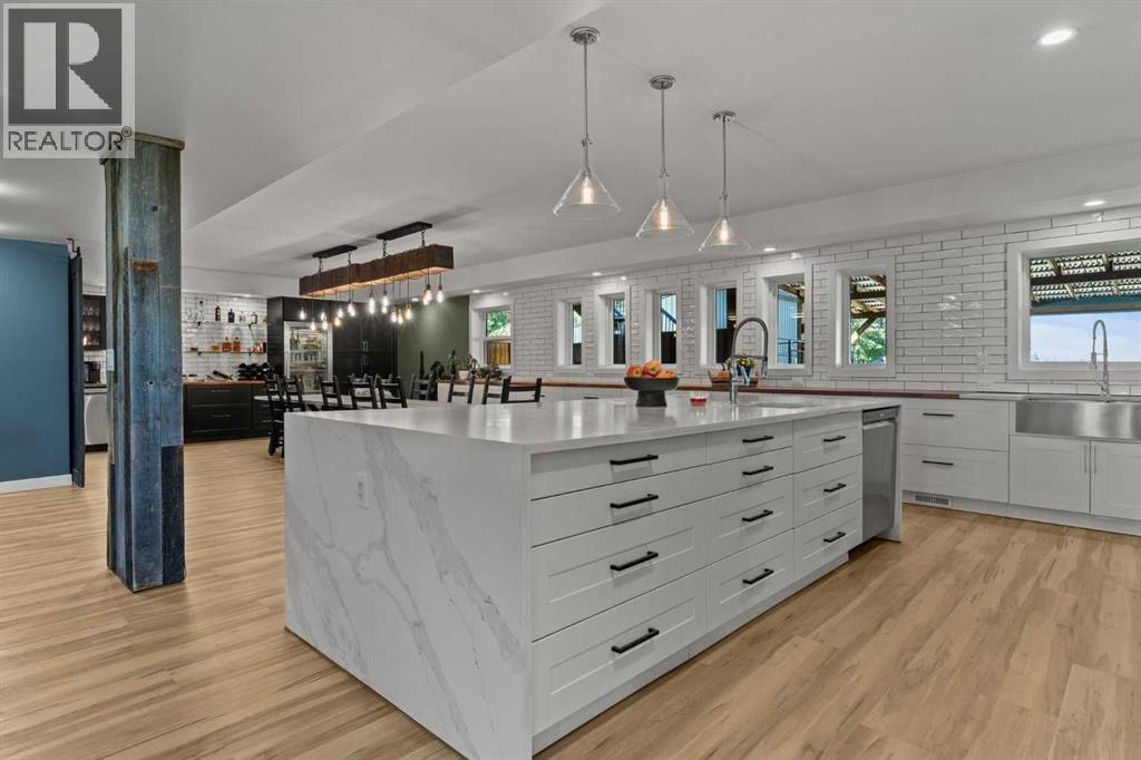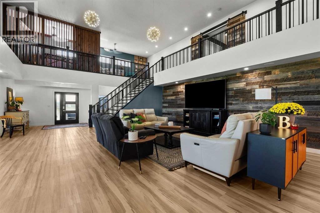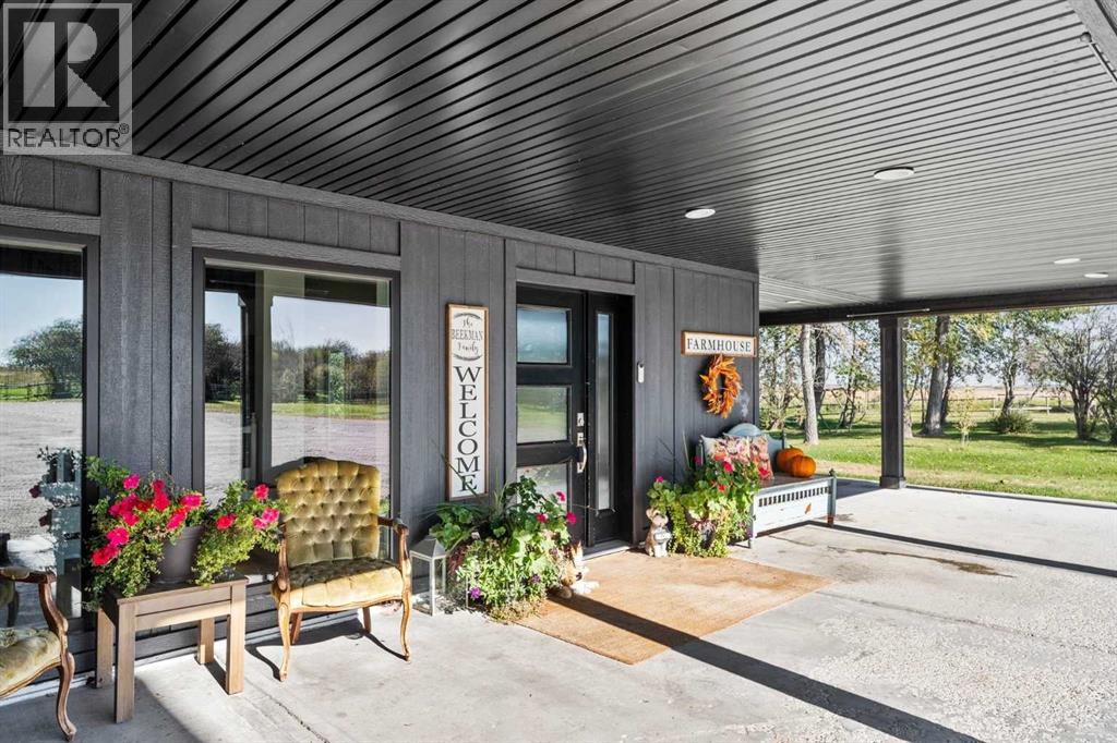 YOUR DREAM ESTATE AWAITS!! Nestled on 13+- acres of picturesque Alberta landscape, this extraordinary property blends seamlessly offering luxury living & unparalleled commercial potential with Rural Business Zoning. Voted TOP 10 FOR OUTDOOR WEDDING VENUES IN AVENUE MAGAZINE IN 2025. The PRIMARY RESIDENCE offers over 4400 sq ft of luxury custom designed living and a SECOND RESIDENCE is a completely renovated 3 bed/2 bath mobile. Soaring ceilings showcase the expansive use of windows and the stunning open to above floor plan. A family centric Great Room boasts an open ended design to capture and maximize your preferred seating arrangements. Masterfully created is a showstopping kitchen and dining area with gleaming full height cabinetry overlaid with marbled quartz and a massive island that features a waterfall design beckoning the finest culinary experts and delivers several areas for preparation and display. For the connoisseur there is a separate coffee station equipped with a sink & dishwasher & full sized pop/water cooler. Bosch appliances include a gas stove, built in microwave and oven, water/ice refrigerator, hood fan and a 2nd dishwasher. A private media room, gym & two pc bath complete the main floor. Ascending to the upper floor your eyes scan and appreciate the vastness of the size of this home and stunning open to below views. Elegantly appointed the primary retreat features a spa ensuite bath with a fully tiled walk in shower, deep jetted tub, double sinks in the quartz topped vanity and a private water closet. The walk in closet includes it's own laundry mates. A massive outdoor upper deck offers panoramic views. Two oversized secondary bedrooms include private access to a five pc bath and separate laundry room. Completing the upper floor is a comfy bonus room and an office. The main house can double as a private retreat or an extension of the attached event venue. The second dwelling is ideal for guest accommodations, bed and breakfast, a manager 's quarters or rental income through a yearly lease or Airbnb opportunities. Combining luxury and privacy coupled with a premier location, this package delivers extraordinary business potential. Boasting a 76'10" x 25'8" WSP constructed wedding and event building with modern lighting, polished floors to dance the night away, and stylish decor, 3 washrooms, fully licensed bar area, COMMERCIAL KITCHEN, space that allows for events to accommodate 250 guests. Romantic and beautifully orchestrated outdoor areas provide natural spaces for intimate gatherings or larger events including corporate events, reunions, retreats and weddings. Whether you are an entrepreneur, investor, or are looking for your new forever home, this fabulous TURNKEY ESTATE & EVENT VENUE will meet your highest expectations & deliver a thriving business opportunity too. ADDITIONAL 74 ACRES FOR SALE ZONED RB A2261248. ON PAVEMENT 5 MINUTES TO STRATHMORE. (id:51913)