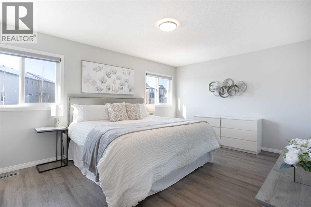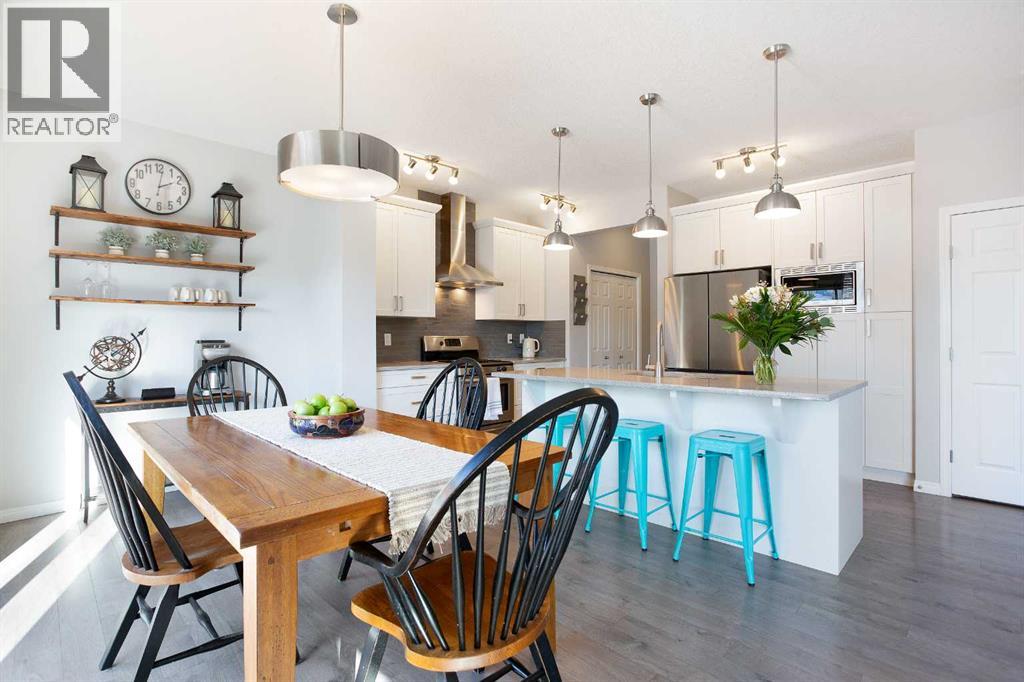 Welcome home to this impeccably maintained, 2,047 sqft two-story Excel-built gem in the highly coveted community of Hillcrest. Upon entry, you are greeted by a sweeping, sun-drenched foyer that highlights the rich, wide-plank flooring and a bright, sophisticated ambiance. The main floor transitions into an expansive living room designed for both effortless entertaining and quiet family rejuvenation. The seamless flow into the kitchen reveals a culinary sanctuary featuring a sleek granite-topped island, an abundance of ceiling-height cabinetry, and a discreet walk-through pantry. This chef-inspired space is accented by a modern geometric backsplash and chic statement pendants. Adjacent to the kitchen, the oversized dining area provides a scenic backdrop for intimate dinners or lively gatherings, with picturesque views overlooking the private backyard. For daily efficiency, a high-capacity mudroom and a tucked-away powder room offer a functional "drop zone" for guests and family alike. The upper level continues the theme of exquisite attention to detail. Retreat to the serene primary sanctuary, a bright haven complete with a generous walk-in closet and a 5-piece spa-inspired ensuite—featuring dual vanities, a deep soaker tub, and a glass-enclosed walk-in shower. Two additional substantial bedrooms, each with custom-fitted closets, flank an enormous central bonus room—the perfect stage for family movie nights. A well-appointed laundry room and a 4-piece main bath complete this harmonious upper floor. The expansive unfinished basement is a blank canvas awaiting your creative vision, ideally suited for multi-generational living or a custom media retreat. Step outside to the west-facing rear deck and enjoy a fenced backyard oasis complete with a handy storage shed and low-maintenance, mature landscaping. For added convenience, there is a double garage with additional parking for two more vehicles on the driveway. With high-efficiency triple-pane windows and pro-grade fini shes, this contemporary home maximizes both architectural style and long-term value. Beyond the threshold, discover the unrivaled lifestyle of Hillcrest—a tranquil, family-centric enclave where community spirit meets modern convenience. This home is perfectly positioned within a leisurely stroll of the scenic dog park and the prestigious Northcott Prairie K-9 School. For the modern commuter, the location is strategically unparalleled, situated just minutes from the new 40th Avenue interchange for a seamless drive to downtown Calgary. Weekend indulgence is effortless with premier shopping hubs like Cross Iron Mills and Costco only 10 minutes away, while the curated boutiques and gourmet dining of Cooper’s Town Promenade are just a short, scenic walk. This impeccably turn-key property offers an exquisite fusion of contemporary style and upscale comfort. A residence of this distinction is a rare find—schedule your private showing today! (id:51913)
