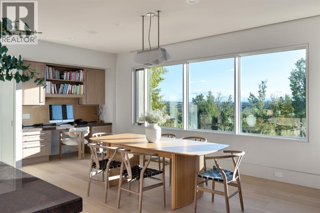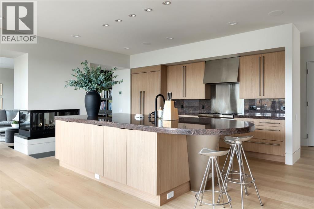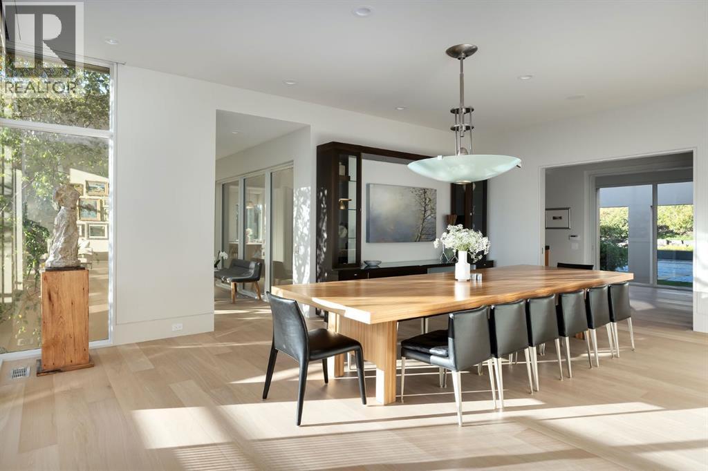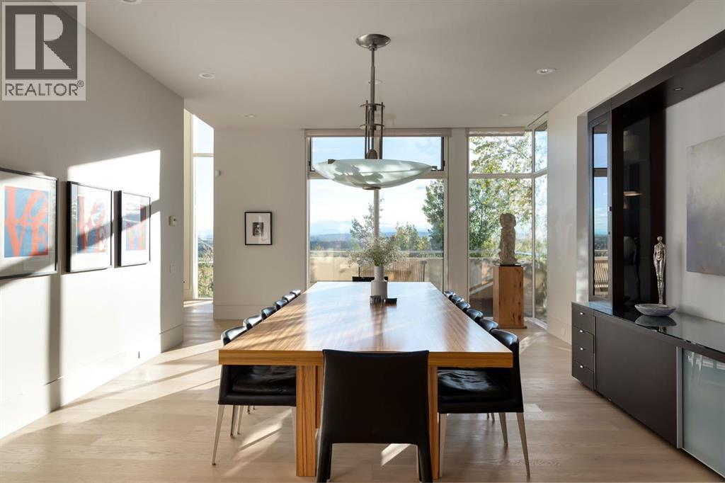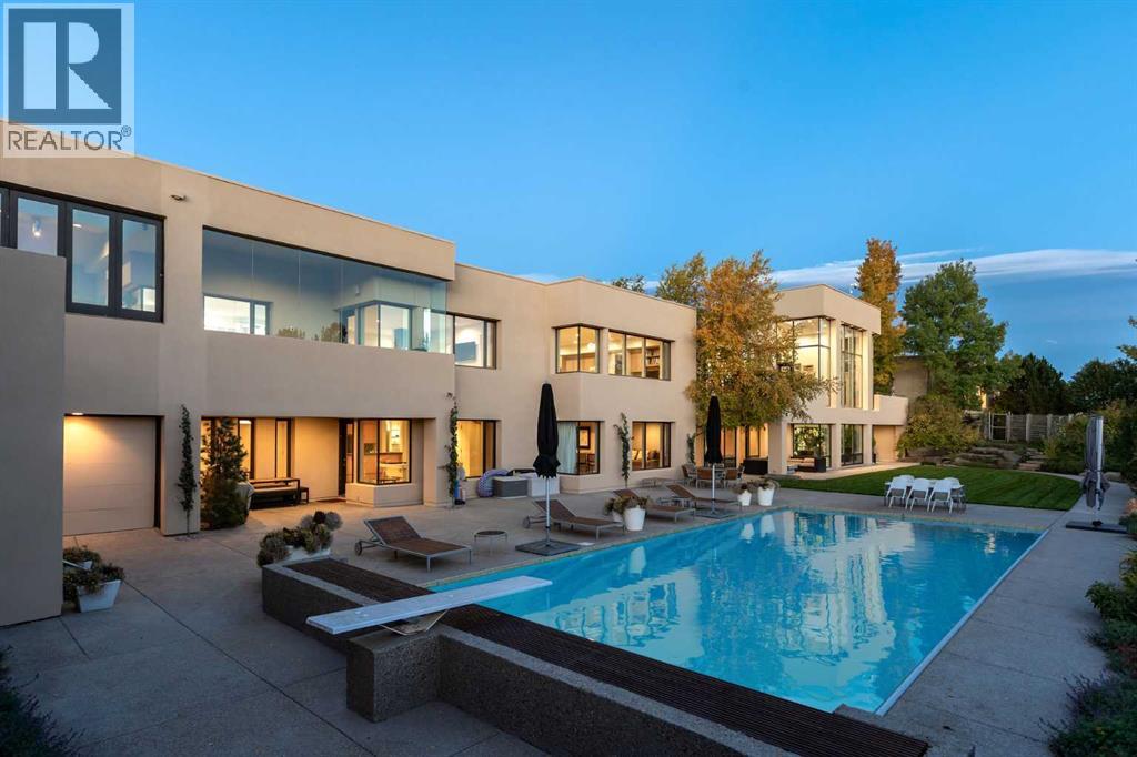 Seize a rare opportunity to own an iconic landmark in the prestigious southwest Springbank area, one of Calgary’s most coveted locations. Set on an expansive 18.62-acre escarpment, this exceptional property offers stunning mountain views and unparalleled privacy. Designed with new-age minimalism, this 20,000+ sq ft estate is a serene retreat for the discerning buyer. Located just minutes from Stoney Trail West, on the edge of Calgary, this secluded paradise offers the ultimate in luxury living. With 6 bedrooms + 10 bathrooms + 2 large offices, the home features stunning architectural design, including soaring flat & vaulted ceilings, a grand two-story great room illuminated by expansive windows. The contemporary living spaces are complemented by a soothing wood fireplace & ZEN garden inspired hallway views. The spacious dining room, perfect for memorable gatherings, overlooks beautifully landscaped grounds and majestic mountain vistas. Ample vehicle storage includes an oversized 3 car garage, a 2 car garage, and an additional oversized auxiliary 3 car garage (all heated). The gourmet kitchen is a chef’s dream, featuring a Wolf gas range with dual ovens, a built-in refrigerator, a walk-in pantry, an oversized granite island and custom white oak cabinetry. The adjacent family room includes a cozy fireplace, while the sunroom with another fireplace is perfect for family game or movie nights. The bedroom wing, secured by fire doors, houses the luxurious primary suite, a tranquil haven with views of mature trees and a lounge area with a fireplace. The ensuite boasts a deep soaker tub, granite dual-sink vanity, dual toilets, a bidet, and 2 oversized showers, along with a spacious walk-in closet. Four additional bedrooms, each with its own ensuite, are located in the bedroom wing, along with a laundry room and extra storage. Heated floors throughout both the main and lower levels provide year-round comfort. The lower level offers an additional bedroom with a full bathroom, a dedicated hot tub room, a spacious exercise room, an office and a large recreation room. A nearby bar and media room add to the entertainment space, while a walk-up entrance leads to the beautifully landscaped backyard, where a large in-ground pool awaits. Outdoor spaces include southwest-facing decks and a patio, a vast yard, and a middle courtyard with a sports court. An auxiliary building offers potential as a future guest house. The property has undergone millions of dollars in recent landscaping, with paved and natural pathways, waterfall features, and hidden sitting areas. Two security gates, fencing, and surveillance cameras ensure your privacy and security. This magnificent estate offers a private oasis with rolling hills, lush gardens, and elaborate landscaping that rivals anything in Aspen Hills—yet is only five minutes away from top-tier private schools. Experience the pinnacle of luxury living in Canada. Schedule your private tour today and discover all that your next home has to offer. (id:51913)
