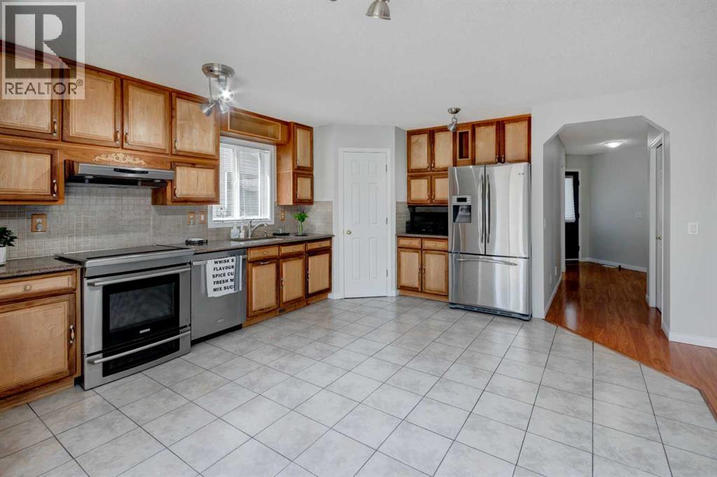 Welcome to this 3 bedroom, 3.5 bathroom home located on a super quiet street nestled in the desirable community of Rocky Ridge. Lovingly cared for, the seller has upgraded a new hot water tank, brand new carpets, newer roof, and new paint for the entire house and decks. The oversized deck and yard is perfect for the kids and neighbors to gather. Step inside the entrance and be welcomed by a flex room that can be multipurposed for an office/formal living or dining room/music room etc. The rest of the main floor includes a spacious kitchen with granite counter tops, which can accommodate a breakfast nook, tile flooring, stainless-steel appliances, and a corner pantry. Connected to the kitchen is an open family room with laminated flooring. A half bath completes this level. Leave the dishes and step out through the sliding door to the inviting deck and towards a nice-sized fenced backyard with matured landscaping. Storage shed included. Plush brand new carpets leads you upstairs to the massive bonus room with vaulted ceilings, large windows and gas fireplace. The primary bedroom has a 4-piece ensuite with separate shower, 2 additional bedrooms, and a 4-piece second bathroom that completes this level. The basement is fully developed and consists of an open area that can be used as a games room, office, or add a 4th bedroom, a 3-piece bathroom, laundry room, and storage.Double attached garage is insulated with work bench and shelving. Located steps away is an abundance of green spaces, walking and bike paths, LRT, shopping, parks, schools, Rocky Ridge Community Centre, and YMCA.This property is priced to sell and ready to move in. Home sweet home! (id:51913)