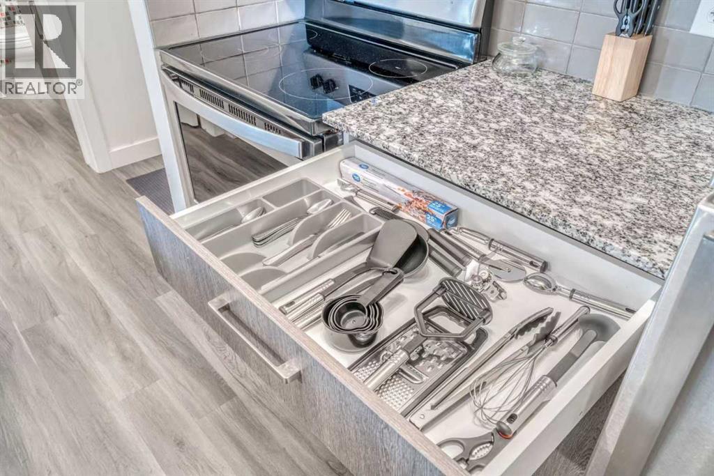 Welcome to this move-in ready top-floor souce facing unit in Skyview Landing, offering the perfect blend of modern upgrades, 9 foot ceiling, natural light, and unbeatable convenience. Upon entering, you are greeted by a spacious kitchen featuring upgraded Whirlpool stainless steel appliances and granite countertops, which flows effortlessly into the open dining and living areas with bright south-facing windows. The spacious balcony provides downtown city views and is roughed-in for air conditioning, making it perfect for relaxation.The primary bedroom is a true retreat, showcasing upgraded carpeting, an open-concept closet, and a private 4-piece ensuite with granite countertops and elegant tile finishes above the bathtub.The second bedroom is generously sized with upgraded carpeting and an open-concept closet, and it enjoys direct access to a large 4-piece bathroom featuring granite countertops and beautiful tilework, also conveniently accessible from the main living area.This premium top-floor condo includes a titled underground heated parking stall located close to the elevator, as well as access to on-site amenities such as a gym, daycare, and ample visitor parking. Situated in the desirable community of Skyview Ranch, residents enjoy close proximity to parks, playgrounds, shopping, Calgary Airport, Stoney Trail, and CrossIron Mills. This is an exceptional opportunity to own a beautifully upgraded home in a prime location! (id:51913)