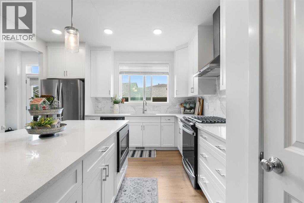 Welcome to 261 Walcrest Way SE, a stunning 2022-built home nestled on a quiet street in the vibrant and growing community of Walden. From the moment you arrive, this home makes an impression with its charming curb appeal, contemporary exterior, and welcoming front entry. Step inside to be greeted by soaring ceilings, an abundance of natural light, and luxury vinyl plank flooring that flows seamlessly throughout the main floor. The heart of the home is the showpiece kitchen—expertly upgraded by the builder with extended soft-close cabinetry, a stunning oversized quartz island, elegant tile backsplash, and a gas range oven that will delight any home chef. Whether you're entertaining or enjoying quiet family time, the open-concept design and thoughtful finishes throughout the main floor make this home feel truly special.Upstairs, you'll find a perfectly designed family layout with space and functionality in mind. The upper floor features two generously sized bedrooms, a full bathroom, and a bright central bonus room, perfect for family movie nights or a play area for the kids. The laundry room is also conveniently located upstairs, making daily chores a breeze. At the end of the hall, retreat into your serene primary bedroom, complete with a spacious walk-in closet and an ensuite bathroom with modern finishes.The possibilities are endless in your unfinished basement, which offers a separate side entrance, making it ideal for future development into a legal suite. With rough-ins for a bathroom, a 200-amp electrical service, and a smart layout, the basement is a blank canvas ready for your vision—whether for income potential, a guest suite, or extended family living. It's a practical and high-value feature that sets this home apart.Step outside to enjoy your sun-soaked southwest-facing backyard, perfect for relaxing evenings or weekend BBQs, made even easier with a gas line already installed. The oversized double garage is heated and features 30 amp service, ideal for electric vehicle charging or workshop needs. Location-wise, you’re just steps away from playgrounds, green spaces, and within walking distance to daycares and all of Walden’s growing amenities. With quick access to Stoney and Macleod Trail, commuting is a breeze. This home checks every box for modern family living. Schedule your viewing today! (id:51913)