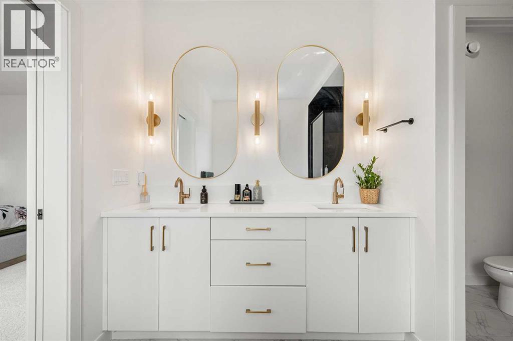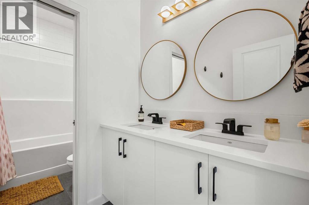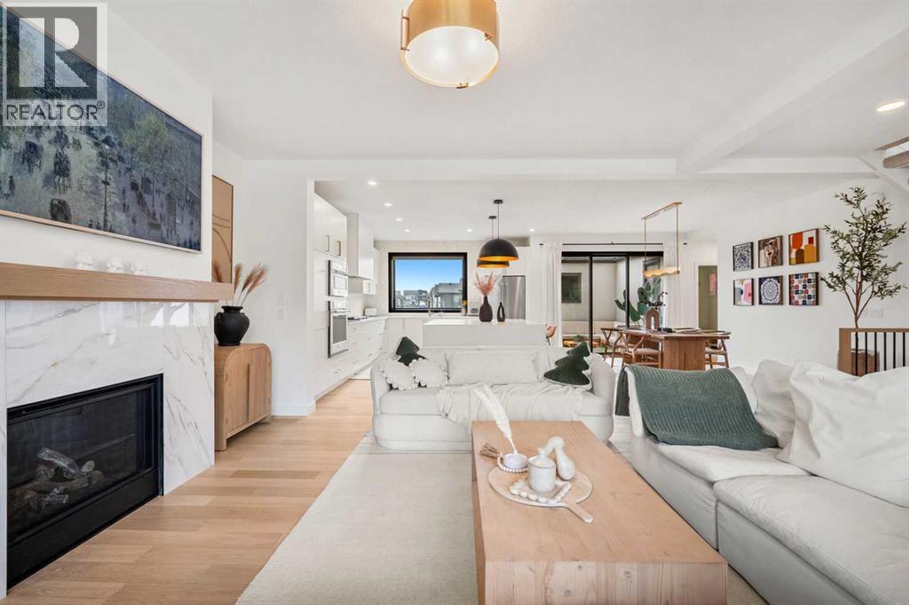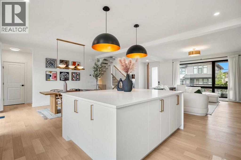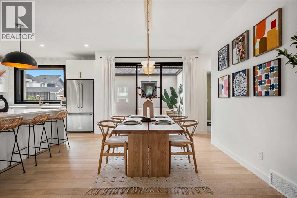 Welcome to 27 Bluerock Avenue SW, a beautifully designed and meticulously maintained CALBRIDGE BUILT residence in the vibrant community of Alpine Park. This modern two-storey home OFFERS OVER 2300 SQUARE FEET of thoughtfully developed living space, combining comfort, contemporary style, and everyday practicality—perfect for families or anyone seeking a refined yet relaxed lifestyle.From the moment you enter, a warm and inviting foyer leads you into an open-concept main floor filled with natural light. Large windows highlight the rich hardwood floors, creating a bright and cohesive atmosphere throughout. At the front of the home, a private office provides an ideal setting for remote work, studying, or creative projects.The main living area is spacious yet welcoming, centered around a large picture window that connects seamlessly with the dining space—an excellent setting for both casual meals and special gatherings. The kitchen blends beauty and functionality with sleek cabinetry, quartz countertops, a striking waterfall-edge island, and a full suite of stainless steel appliances. A window above the sink overlooks the backyard, and the adjacent dining area opens onto a large deck with a built-in BBQ gas line, perfect for outdoor entertaining.Upstairs, a generous family room offers a versatile space for relaxing, watching movies, or spending quiet evenings together. The upper level features three well-sized bedrooms, including a serene primary suite with a custom walk-in closet and a luxurious five-piece ensuite. The ensuite includes a standalone tub, a glass and tile shower, and dual vanities, creating a peaceful private retreat. Two additional bedrooms share a beautifully appointed five-piece bathroom, while waterproof carpeting throughout the level provides both durability and comfort.The lower level remains unfinished, offering endless possibilities to tailor the space to your lifestyle—whether you envision a home gym, playroom, or media room. Outside, the backyard provides a calm setting for relaxation or entertaining. The double attached garage includes electric vehicle plug-ins for added convenience.Located in Alpine Park, one of Calgary’s most thoughtfully planned and dynamic communities, this home offers easy access to Stoney Trail and is just minutes from parks, schools, shopping, dining, and scenic walking paths.Experience modern living in a welcoming community—schedule your private showing today and discover everything this exceptional home has to offer. (id:51913)