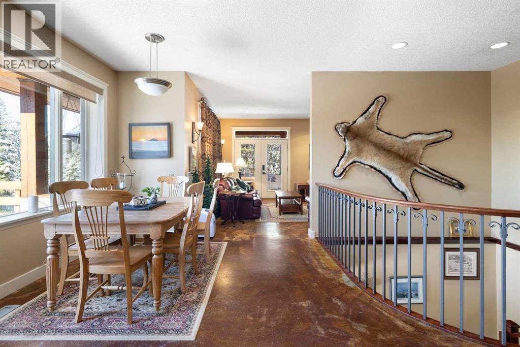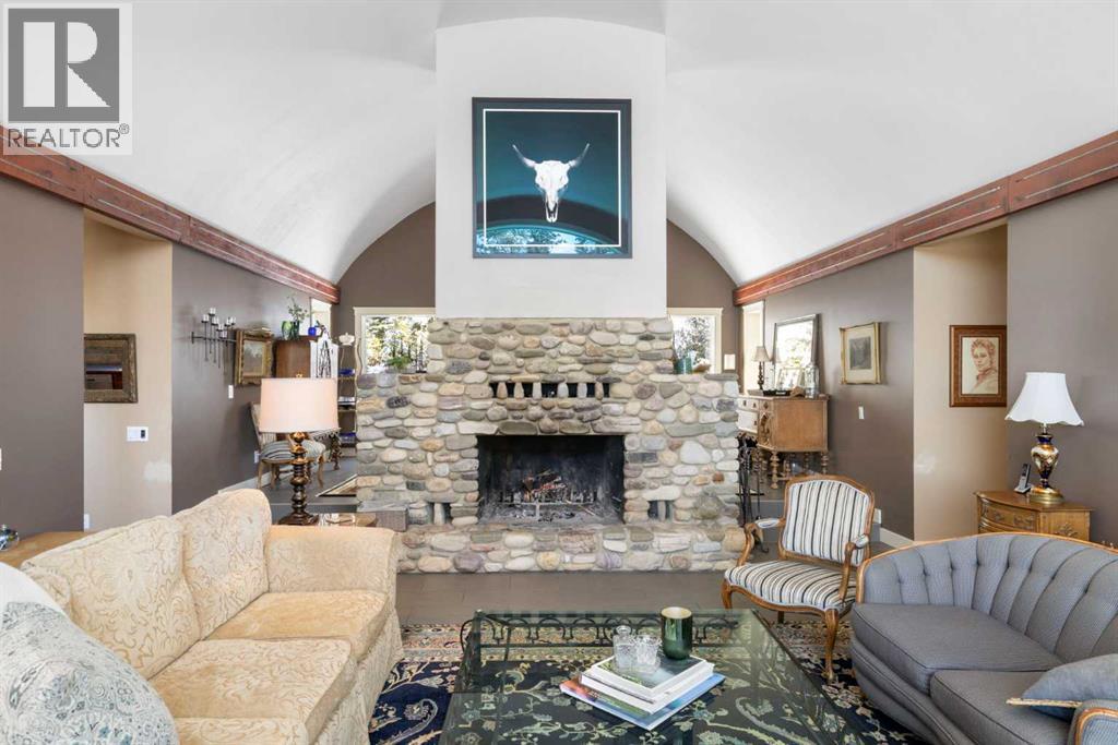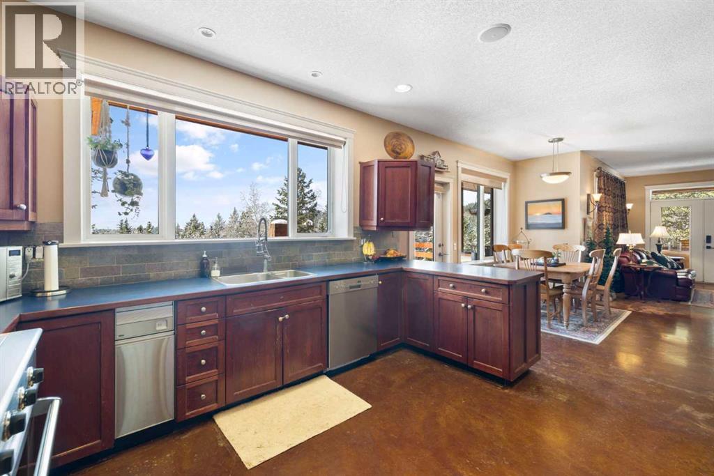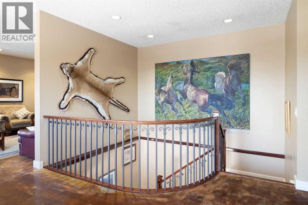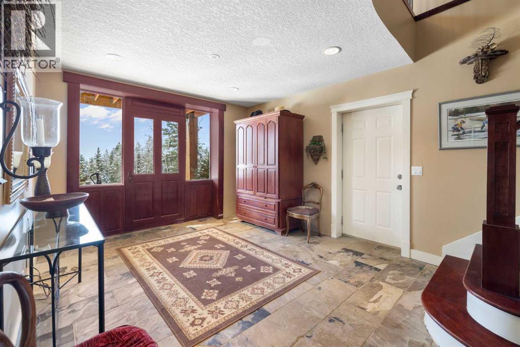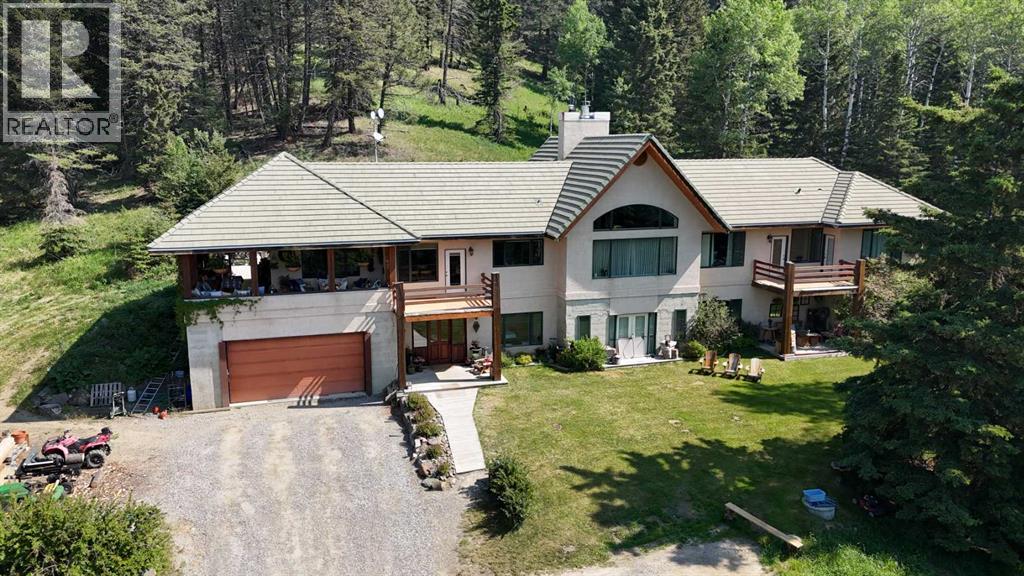 Welcome to 161 acres of paradise with trees, wide open meadows, a year round creek, riding/walking trails tucked away from any neighbors with mountain views , secluded and private yet conveniently located 20 minutes NW from Cochrane. It feels like your living in a national park with the trees and views, but it could be your own private land. You are sure to be impressed with this reverse walk-out Bungalow built into the hillside with over 4600 sq ft of living space, attached oversized double garage plus shop. Incredibly well build starting with ICF foundation walls right up to the rafters. Poured concrete floors on each level with in-floor heat and concrete tile roof. The main floor features a massive wood burning rock facing fireplace that warms up the Great room with the tall barreled ceiling and enjoys the mountain views. Tucked behind the fireplace is the dining room. The kitchen features lots of cabinets and counters and a commercial gas Stove with a double oven. Breakfast nook overlooks the deck and views. Next is the Bonus room with electric fireplace and wall units making this a great TV room. From here step out onto the incredible wrap-around covered deck. On the south side enjoy the mountain views and overlook your own paradise. Trust me this is a special place to relax and enjoy nature as it unfolds before your eyes. On the north side step down onto the massive patio area to enjoy large family gatherings. Back in the house past the Great room, the private master suite is separate from the other bedrooms except one other main floor room which could be used as that or a den/office. This makes it perfect for use requiring private/public spaces. Check out the ensuite featuring a large jetted soaker tub and tiled steam shower and double sinks. Lower level is fully developed with a very spacious entry, four bedrooms, two full bathrooms, a family room, laundry and furnace room. The oversized heated double attached garage with high ceilings make s a great hobby room or park two vehicles in the 24 x 24 ft space. Check out the 32 x 24 ft heated shop with cement floor that could easily be converted to barn stalls, upper mezzanine and wood stove. 80 x 120 riding ring with hockey rink at one end. Tach shed. There is a wedding site with benches for 100 guests. This property would make an ideal retreat, Equestrian, yoga or recovery center, or a home base for Norquay ski Resort in Banff, Sunshine Ski Resort or Lake Louise skiing. Call for your personal viewing today! (id:51913)