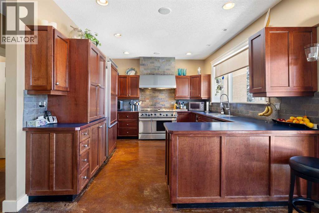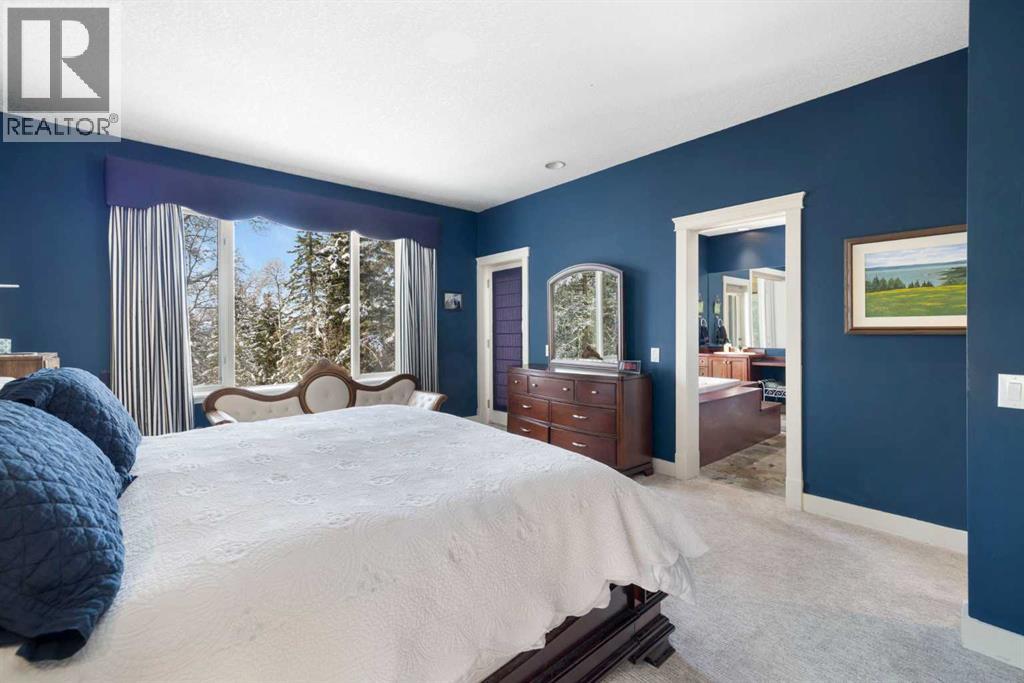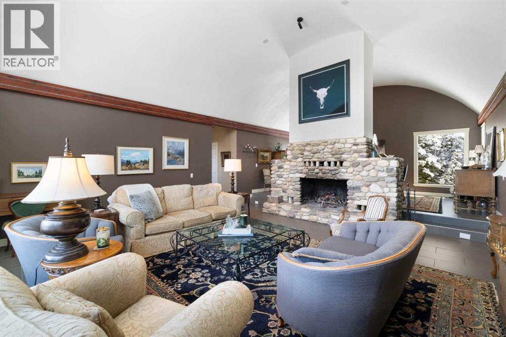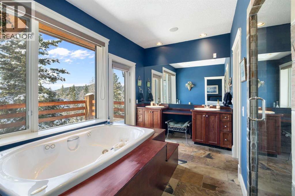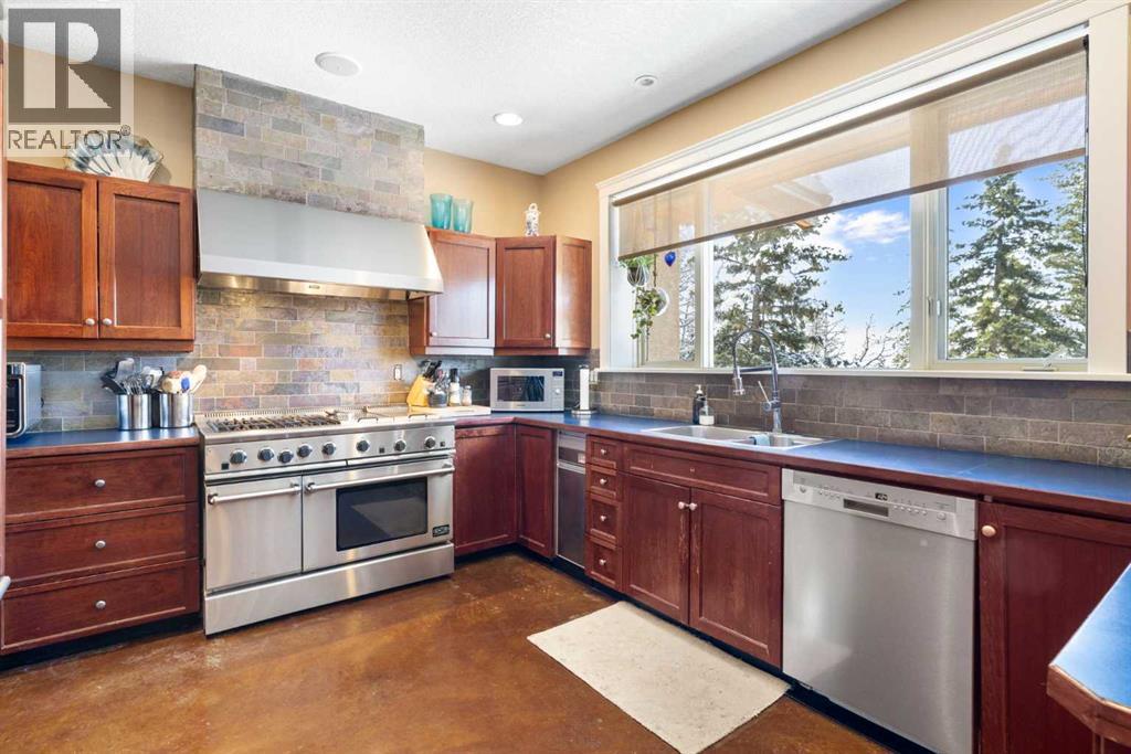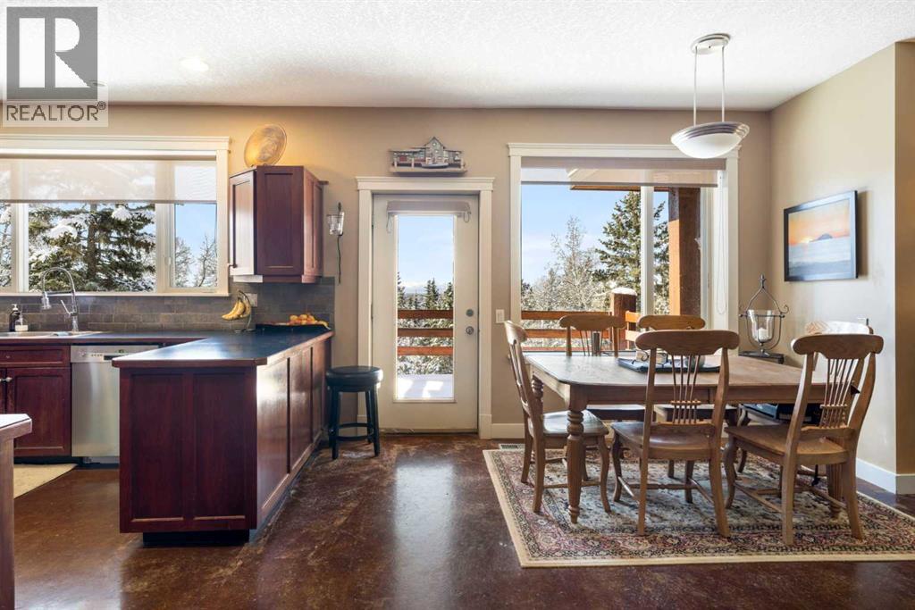Welcome to 161 acres of paradise with trees, wide open meadows, a year round creek, riding/walking trails tucked away from any neighbors with mountain views , secluded and private yet conveniently located 20 minutes NW from Cochrane. It feels like your living in a national park with the trees and views, but it could be your own private land. You are sure to be impressed with this reverse walk-out Bungalow built into the hillside with over 4600 sq ft of living space, attached oversized double garage plus shop. Incredibly well build starting with ICF foundation walls right up to the rafters. Poured concrete floors on each level with in-floor heat and concrete tile roof. The main floor features a massive wood burning rock facing fireplace that warms up the Great room with the tall barreled ceiling and enjoys the mountain views. Tucked behind the fireplace is the dining room. The kitchen features lots of cabinets and counters and a commercial gas Stove with a double oven. Breakfast nook overlooks the deck and views. Next is the Bonus room with electric fireplace and wall units making this a great TV room. From here step out onto the incredible wrap-around covered deck. On the south side enjoy the mountain views and overlook your own paradise. Trust me this is a special place to relax and enjoy nature as it unfolds before your eyes. On the north side step down onto the massive patio area to enjoy large family gatherings. Back in the house past the Great room, the private master suite is separate from the other bedrooms except one other main floor room which could be used as that or a den/office. This makes it perfect for use requiring private/public spaces. Check out the ensuite featuring a large jetted soaker tub and tiled steam shower and double sinks. Lower level is fully developed with a very spacious entry, four bedrooms, two full bathrooms, a family room, laundry and furnace room. The oversized heated double attached garage with high ceilings make s a great hobby room or park two vehicles in the 24 x 24 ft space. Check out the 32 x 24 ft heated shop with cement floor that could easily be converted to barn stalls, upper mezzanine and wood stove. 80 x 120 riding ring with hockey rink at one end. Tach shed. There is a wedding site with benches for 100 guests. This property would make an ideal retreat, Equestrian, yoga or recovery center, or a home base for Norquay ski Resort in Banff, Sunshine Ski Resort or Lake Louise skiing. Call for your personal viewing today! (id:51913)