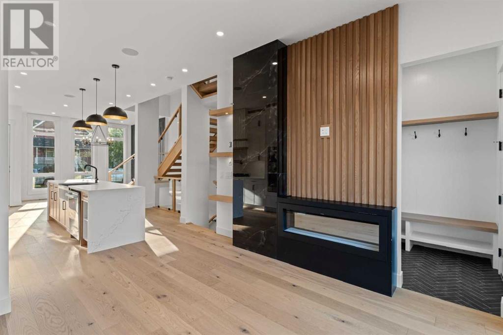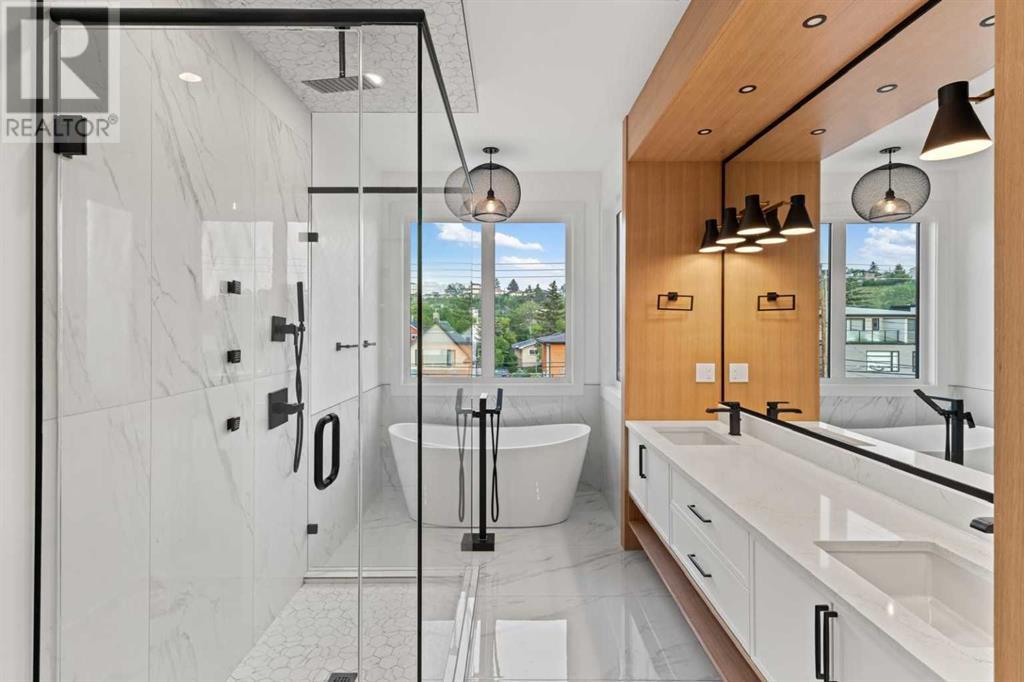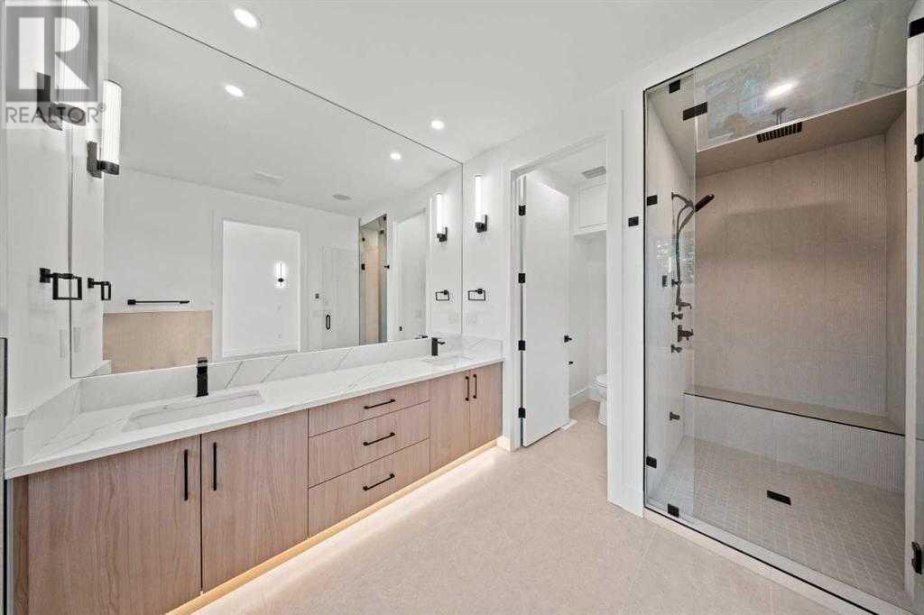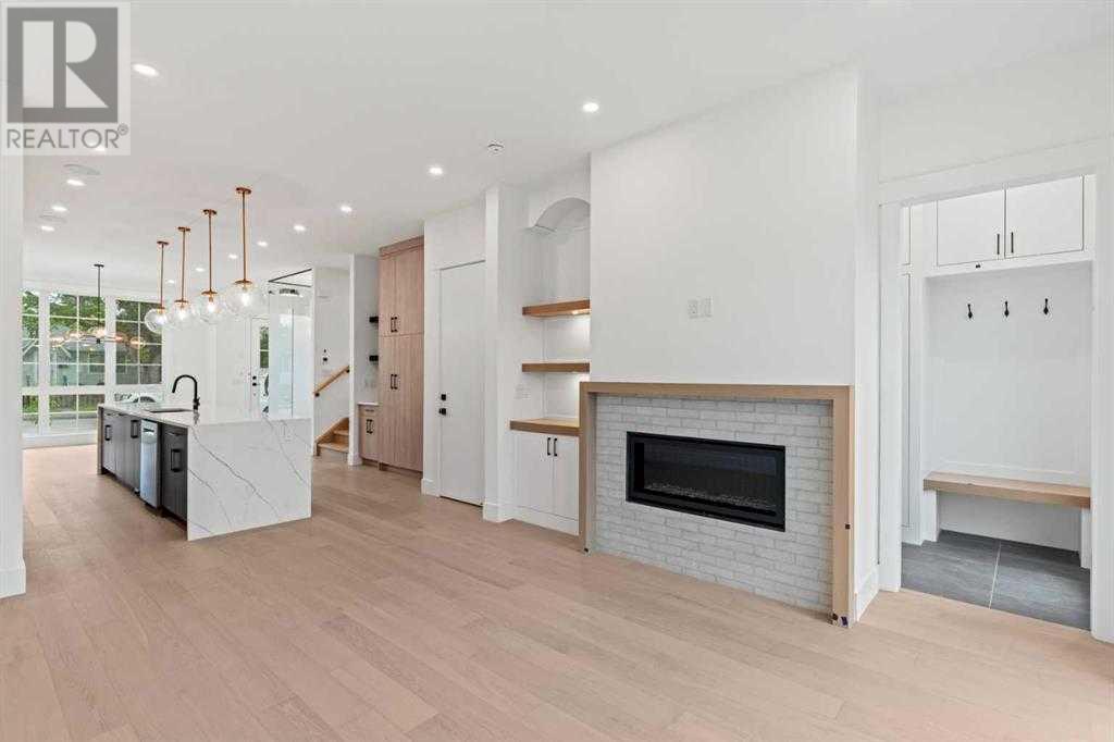 Don't miss your chance to own a BRAND NEW SEMI-DETACHED INFILL in the highly desirable community of BANFF TRAIL! This stunning property still offers time to customize the interior finishes to your personal style. Featuring over 3068 sq ft of thoughtfully designed living space, this home offers 4 bedrooms, 4.5 bathrooms, and upscale features throughout.The main floor showcases a bright, open layout with soaring 12-ft front windows, a recessed ceiling, and a sun-filled glass-enclosed office with an open-to-below design that floods the space with natural light. The chef’s kitchen includes ceiling-height custom cabinetry, quartz countertops, a designer tile backsplash, and a large central island with ample bar seating. The living room is both functional and beautiful, centered around a sleek gas fireplace with full-height tile surround, flanked by elegant arched niches on both sides for added architectural charm. Dual sliding glass doors lead to the rear deck and backyard, creating a perfect indoor-outdoor flow.Upstairs, the primary retreat is a true sanctuary with a recessed ceiling, large windows, and TWO spacious walk-in closets. The spa-inspired ensuite features heated tile floors, dual sinks, quartz counters, a freestanding soaker tub, and a fully tiled glass shower. Two additional bedrooms each have private ensuite bathrooms, and a full laundry room completes the upper floor.The fully finished basement offers a separate side entrance and is ideal for entertainment or multi-generational living. Highlights include a spacious rec room with built-in entertainment center, a stylish wet bar, a dedicated home gym, and a large bedroom with a walk-in closet and full bathroom.Ideally located just steps from West Confederation Park, the University of Calgary, McMahon Stadium, Foothills Athletic Park, and top-rated schools, this exceptional property offers the perfect blend of luxury, lifestyle, and inner-city convenience. Easy access to Crowchild Trail and 16th Ave makes commuting a breeze. (id:51913)