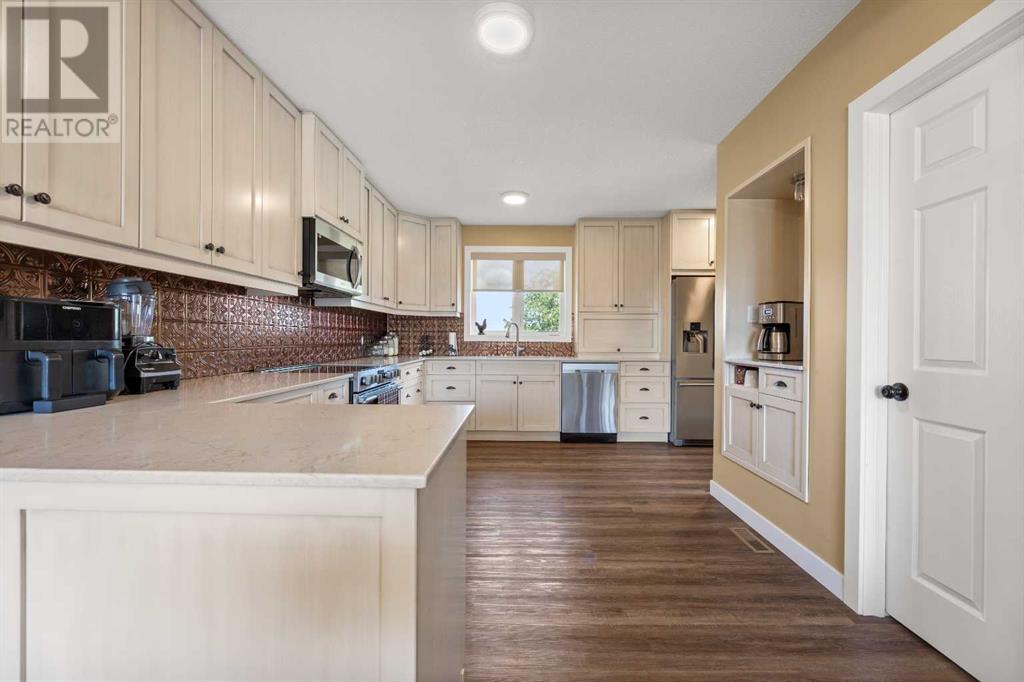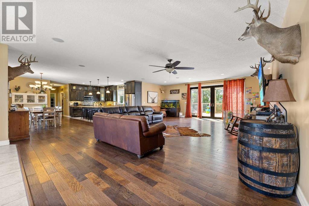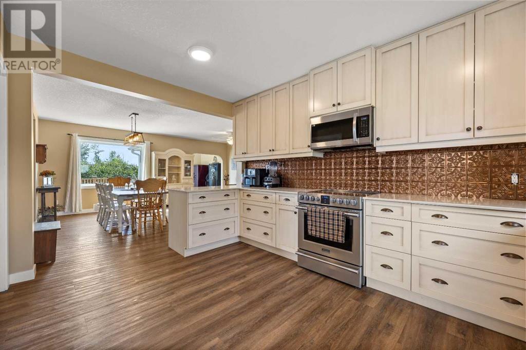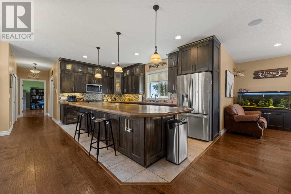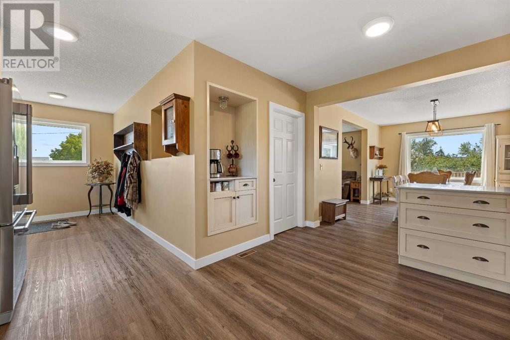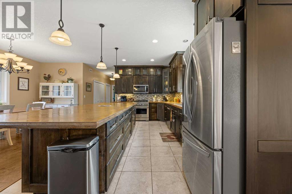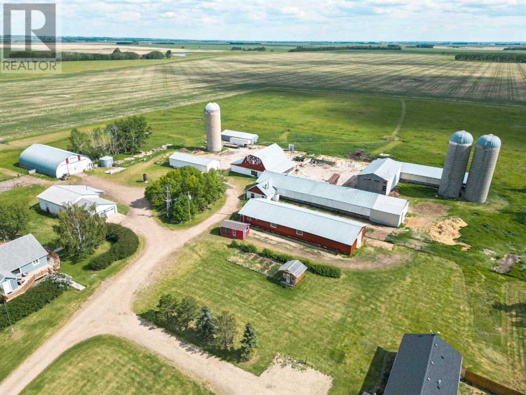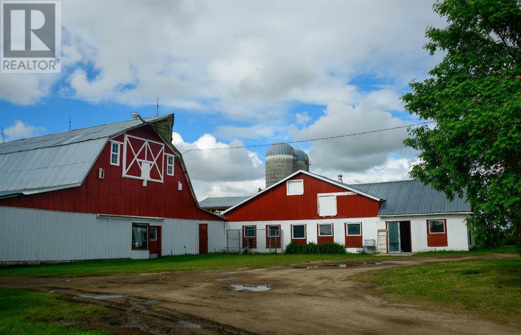 Nestled on a picturesque 19.96-acre property 10 minutes northeast of Olds on pavement, this meticulously maintained farm, featuring 2 homes, offers a rare blend of modern comfort, agricultural potential, and serene rural living. The centerpiece of thisremarkable property is a 2012 executive ranch-style home. Upon entering, you're greeted by soaring ceilings and an open-concept living area, featuring custom maple cabinetry, engineered hardwood, and in-floor heating throughout for year-round comfort. The spacious primary bedroom includes a lavish ensuite bathroom, while two additional bedrooms and a 4-piece bathroom provide ample space for family or guests. A walk-throughpantry and abundant storage ensure convenience and functionality. Recent updates to the main home include a new boiler and upgraded appliances, including brand new washer/dryer. Outdoor features a landscaped front yard, concrete patio, Edge-It curbing and a fenced backyard to enhance privacy, while a back deck offers an additional relaxation area. Adjacent to the main residence stands a charming 1949, 2-storey farmhouse, meticulously renovated to blend modern comforts with historic charm. This home features 3 bedrooms, a deck, and a private yard, with recent upgrades including new siding (smart board), weeping tile, and foundation coating. New soffit and fascia, along with updated windows throughout, ensure energy efficiency. The kitchen boasts new cupboards and granite countertops, complemented by new appliances. Updated plumbing, wiring, and safety features such as smoke and carbon monoxide detectors provide peace of mind, while a new furnace, hot water tank, and water softener enhance comfort. The home also boasts new doors, custom blinds, and modern ceiling fixtures, new flooring installed on the main level and upstairs, plus the basement has been drywalled. Poured sidewalksand a new wrap-around deck surround the home. The farm infrastructure is equally impressive, featuring essential facilitie s such as a detached two-car garage, a spacious shop, a dedicated wood shop, and milking barn. Three silos will remain on the property. There are over 8 acres of hay and pasture space suitable for both small and large livestock. Significant enhancements to the farmyard include page wire fencing of the front 12 acres and yard, and cross fencing for three separate pastures. Three well supplied water wells ensure reliable water supply to both homes and livestock. Landscaping improvements include the planting of multiple trees, shrubs, and perennials, alongside a greenhouse constructed from treated lumber, as well as mulching of dead tree lines and replanting with seedlings. Updates to the red barn and parlor include new doors. Whether you envision a private retreat, a working farm, or a combination of both, this farmstead promises endless possibilities. Schedule your showing today! (id:51913)