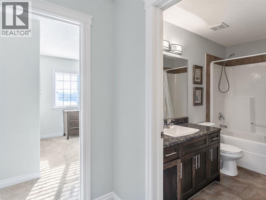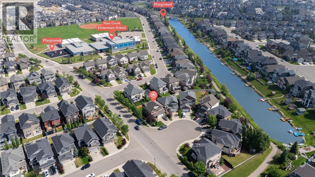 Don’t miss your chance to own this stunning corner-lot home in Bayside, tucked away on a quiet cul-de-sac with fantastic curb appeal and a welcoming front porch. Extra windows fill the home with natural light, creating a bright, inviting atmosphere from the moment you step inside. The main floor begins with a versatile den—perfect for a home office or cozy sitting area—then opens to a warm, open-concept living space with hardwood and tile floors, a gas fireplace, and a spacious dining area. The updated kitchen boasts stainless steel appliances, granite countertops, and ample prep space, while a stylish 2-piece bath completes the level.Upstairs, a sunny bonus room is ideal for a media area or playroom. The primary suite offers a walk-in closet and private en suite, joined by two additional bedrooms, a full bath, and a convenient laundry room. The undeveloped basement is ready for your ideas—home gym, rec room, or extra living space.With FRESH PAINT, BRAND-NEW CARPET, CUSTOM BLINDS, AIR CONDITIONING, DECK, FENCE, LANDSCAPING, AND SHED—all already done—this home is truly move-in ready. WHY WAIT FOR NEW CONSTRUCTION when you can move in within 15 days and have WINDOW COVERINGS, WASHER, DRYER, AND AC INCLUDED? The LOCATION is unbeatable—STEPS to the CANALS and walking paths, STEPS to the ELEMENTARY SCHOOL, the middle school bus stop just across the street, and the high school nearby. Bayside is one of Airdrie’s most desirable communities, known for its scenic canals, walking trails, parks, and close-knit feel, all just minutes from shopping, dining, and amenities. (id:51913)