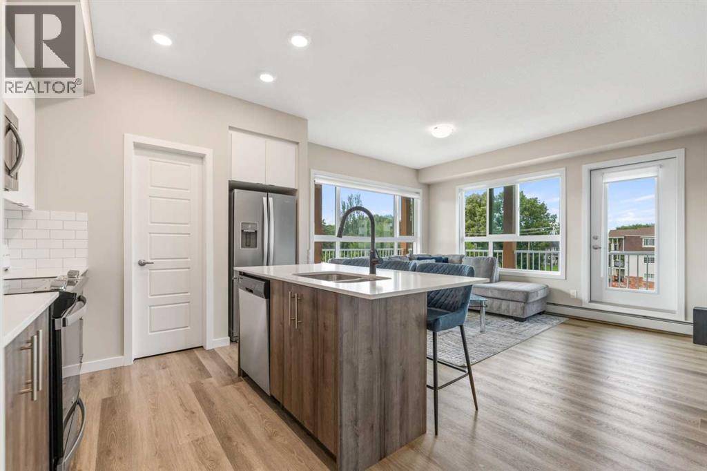 Welcome to Konekt Top-floor Corner Unit in Inglewood, where modern design meets unparalleled convenience. This exceedingly stylish 2-bedroom unit offers beautiful views and a serene living experience with no upstairs neighbors. Inside, you'll find a neutral color palette, wide plank flooring, and an abundance of natural light creating a bright and inviting atmosphere. The contemporary kitchen is designed for both beauty and function, featuring two-tone cabinets, stainless steel appliances, quartz countertops, a subway tile backsplash, and a pantry for ample storage. The living room seamlessly extends to a generous wrap-around balcony, perfect for enjoying those expansive views whether you're relaxing indoors or hosting memorable summer barbecues outdoors. The primary bedroom offers a tranquil retreat with its oversized window showcasing phenomenal views and a large walk-in closet. The master ensuite is a private oasis, providing a luxurious escape. Generously sized second bedroom provides comfortable accommodation for guests or family. The unit includes in-suite laundry, underground parking, and an additional storage unit. Ideally situated, you're just moments from Inglewood's lively 9th Avenue, offering an array of pubs, award-winning restaurants, cafes, markets, and shops. Enjoy easy walks to the bird sanctuary, the Bow River, East Village, and downtown Calgary. This, top-floor unit in an exceptional inner-city location is ready for you to move in and enjoy immediately! (id:51913)