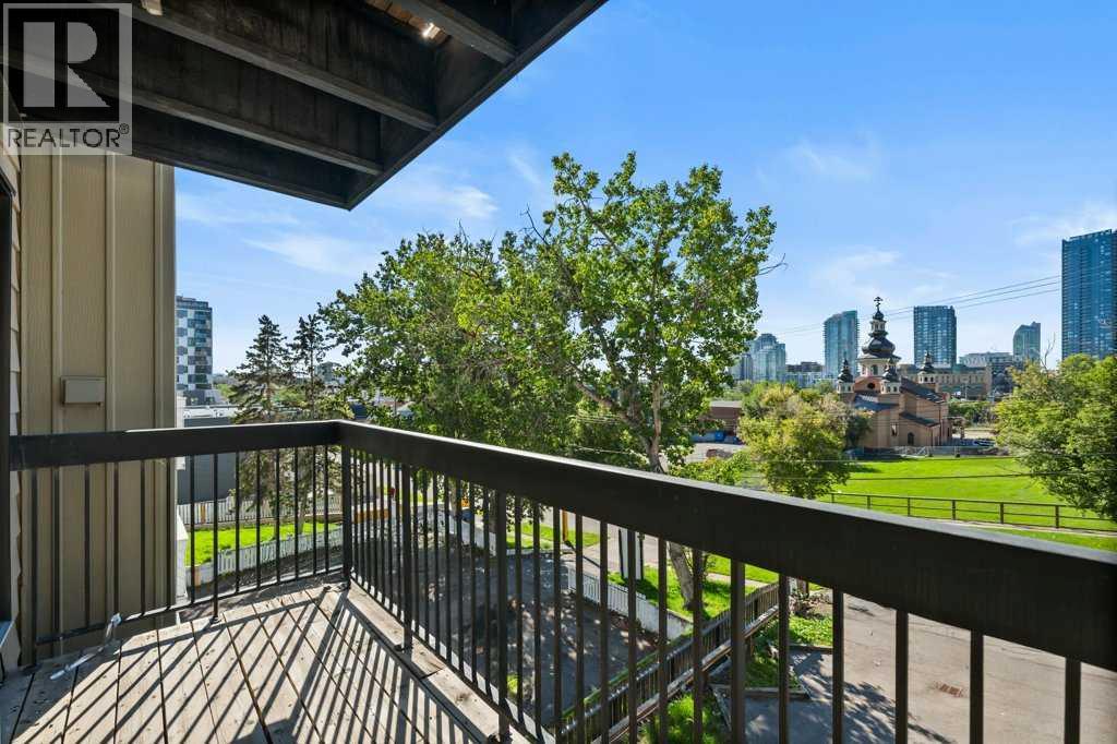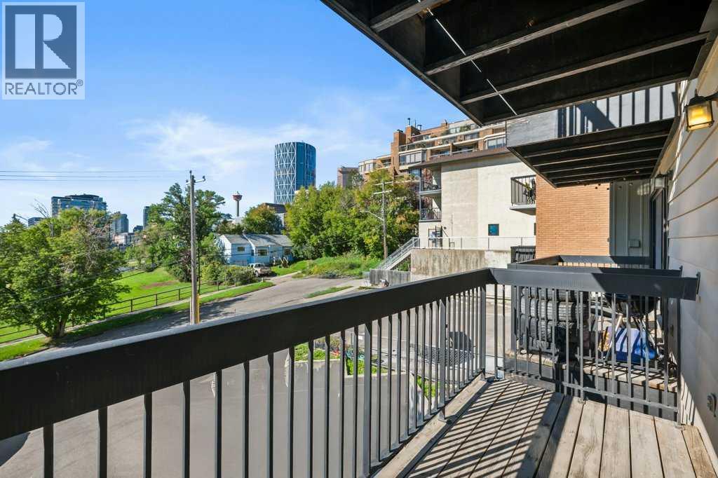 Tremendous views of downtown Calgary from this pet friendly 3rd floor corner unit with assigned stall parking, in-suite laundry, freshly painted interior and wood burning fireplace. Enter into a front hall with the convenience of your own personal laundry set and dual door storage closet with organizers. The tiled 4-peice bath presents counter height storage vanity, new tiled tub surrounds and a low flow toilet. Just off the 4-piece bath is the bedroom with vinyl side window and dual door closet including organizers within. The galley style kitchen was reinvigorated in 2008 with Ikea cabinetry a full set of stainless-steel appliances including a slide in stove, over the range microwave and tiled back-splash. Set just off the kitchen is the nook with access to a massive vinyl sliding patio door leading out to your full-size balcony to take in the panoramic views, enjoy the summer days and nights or just relax and soak in your private outdoor space. Completing this home is the generous size lifestyle room with a focal corner wood burning fireplace. All located in a secure building, self-managed with a healthy reserve fund steps to everything and anything offering the ultimate comfort and convenience of inner city living! (id:51913)