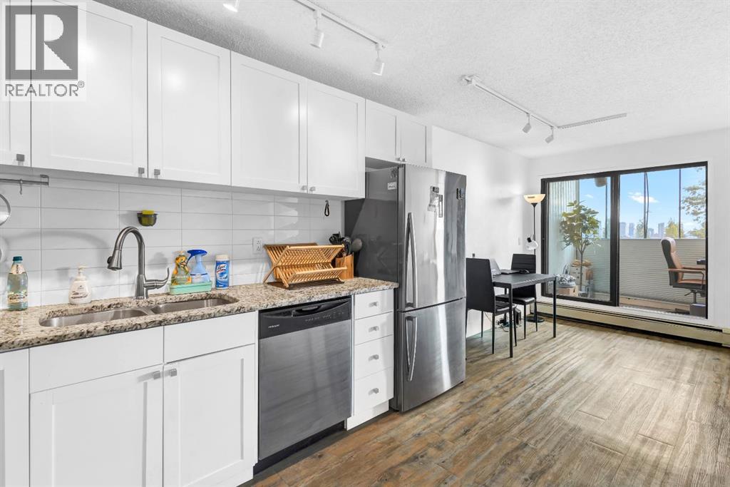 This bright, beautifully renovated condo offers sweeping city views and an unbeatable location just steps from the vibrant amenities of 17th Avenue and only minutes to downtown. Inside, you’ll find an updated kitchen with modern appliances and stylish vinyl plank flooring throughout. The open-concept design is perfect for both entertaining and everyday living, with expansive windows that fill the home with natural light. A flexible sunroom/workshop leads out to an oversized private patio—a rare inner-city find—ideal for relaxing or hosting on warm summer nights. The updated 4-piece bathroom features ample storage, plus the convenience of in-suite laundry. The fully enclosed 70sqft patio NOT included in the square footage measurements offers additional space for an office or flex room with beautiful views of downtownPerfectly suited for young professionals, this home is surrounded by trendy shops and restaurants, within walking distance to downtown, just a 15-minute stroll to the Sunalta CTrain, and close to schools and parks. (id:51913)