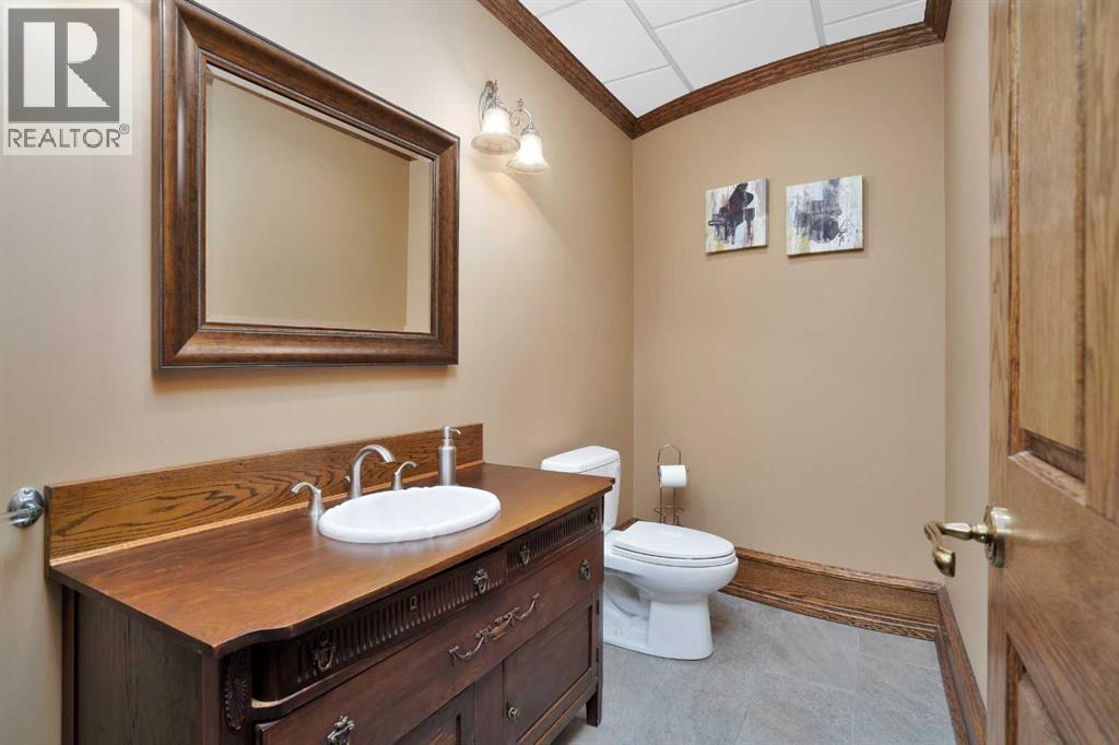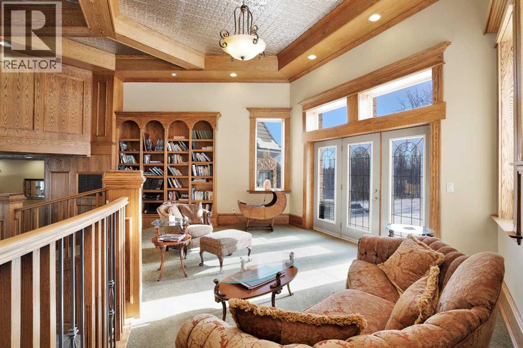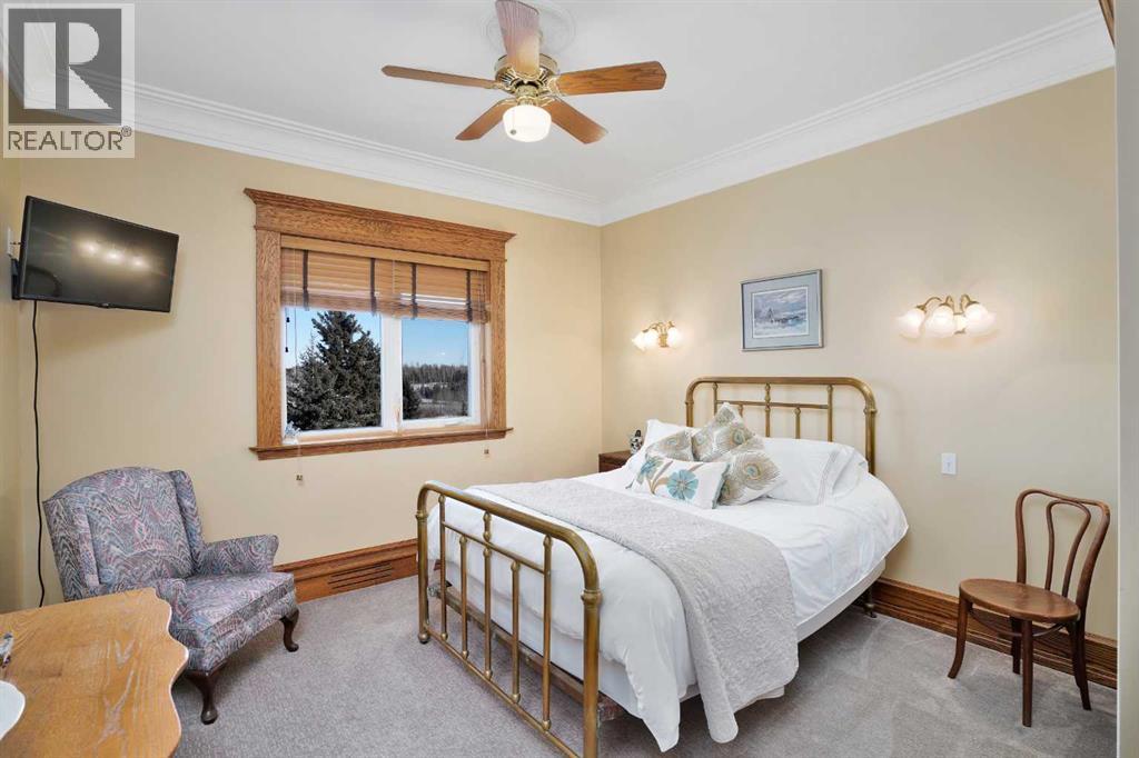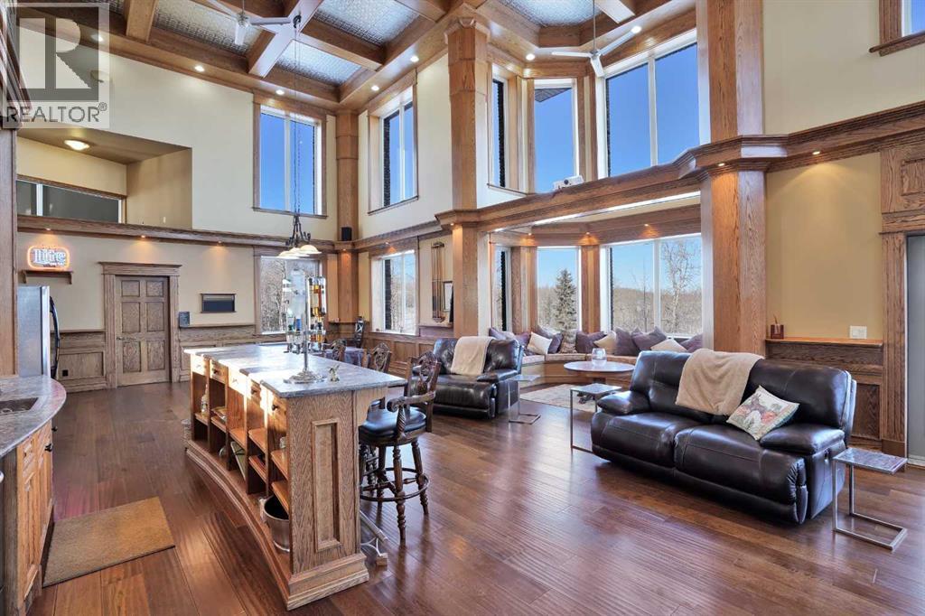 Nestled deep in the foothill, 45 minutes west of Calgary International airport, this completely custom-built masterpiece is a true work of art, designed for those who appreciate craftsmanship, privacy, and timeless beauty. The exterior is a testament to authentic, old-world craftsmanship, featuring hand-picked field stone sourced directly from the owner’s properties. The home hosts a level of craftsmanship rarely found today. Stepping inside, the grand foyer set the tone for the rest of the home. A vintage bronze fountain, meticulously built using porcelain, Alberta river rock, and Ammonites, adds an organic, artistic touch. The grand staircase, a structural and artistic masterpiece, was engineered for stability and handcrafted. An elevator, that services each floor. Through the main entrance is the stunning games room which is a true showpiece, A wine bar and custom full bar, complemented by a matching coffee bar and built-in window seats that double as discreet storage elevate the space. Off the games room is the indoor pool area which is a luxurious retreat. Whether you want to lounge in the warmth, swim at your leisure, soak in the hot tub , relax in the sauna, this space offers endless possibilities. At the heart of this home is a true “working” country kitchen, designed for multiple people to cook, prep, or gather. Conveniently located near the formal dining room and oversized pantry, it allows for providing both elegance and seamless functionality, while the spacious layout ensures effortless entertaining and everyday comfort. The basement level is a fully finished entertainer’s dream. Includes entertaining area with a 2 Pce bathroom and the theater room . The theater room is a dedicated cinematic retreat, featuring a custom-built permanent movie screen. Designed for peak sound retention, the entire space is fully insulated, ensuring an immersive experience. The main house includes 5 full bedrooms each with ensuites. The master suite is a private sanctuary, blending warmth, history, and comfort. A striking fireplace wall, handcrafted from solid oak, serves as a focal point, 2 walk-in closets and the private loft/turret. A hand-milled solid oak spiral staircase leads to this secluded space, which is bathed in natural light from multiple skylights. This loft offers a serene escape from the world below. An underground tunnel provides access between the lower agricultural level and the home. Three springs supply fresh, naturally sourced water straight from the property. A 3-bedroom suite above the garage and two apartments above the barn provide independent living space for staff, guests or family. The Upper Barn includes 9 Stalls, a wash bay & office perfect for an equestrian lifestyle. The original farmhouse & working barn yard adds to its functionality, charm and history. Every detail of this home has been carefully considered, combining expert craftsmanship, rare materials, and thoughtful design. This is more than a residence—it’s a true legacy property. (id:51913)