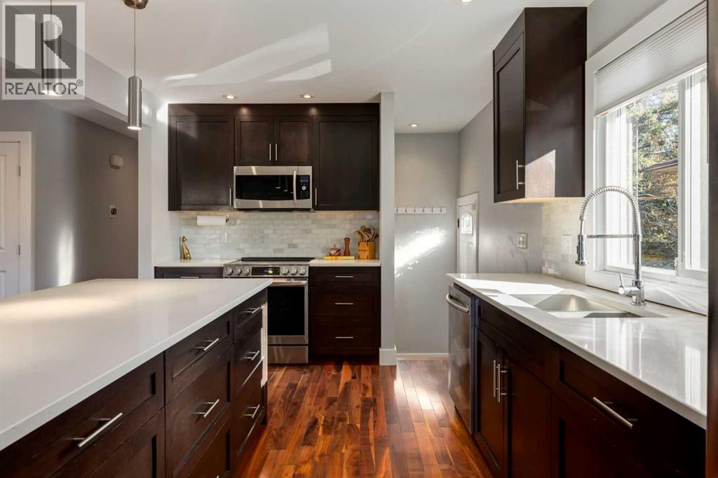 ***OPEN HOUSE SATURDAY OCTOBER 18 AND SUNDAY OCTOBER 19 FROM 1-3 PM*** Beautifully Renovated Bungalow in the Heart of Desirable Collingwood. Welcome to this stunning 4-bedroom detached bungalow offering over 2100 sqft of total living space, perfectly situated in the highly sought-after community of Collingwood. Completely renovated, this home combines timeless charm with modern luxury. Step inside to discover a bright and spacious open-concept layout featuring walnut hardwood floors and quartz finishes throughout. The large kitchen is a chef’s dream, complete with stainless steel appliances, a massive island, and ample cabinetry—ideal for both entertaining and everyday living. The main bathroom showcases travertine floors and surround, and includes a large soaker tub/shower combination, creating a relaxing spa-like retreat. The fully developed basement expands your living space with a large bedroom, a 3-piece bathroom with travertine floors, built-in cabinets, and vanity, plus a spacious rec and flex room—perfect for family gatherings, a home gym, or an office setup. Enjoy the outdoors in your large backyard featuring a concrete patio, ideal for summer barbecues or quiet evenings. Located mid-block among detached single-family homes with a restrictive covenant ensuring the integrity of the neighborhood, this property offers peace and exclusivity. You’ll love the convenience of being walking distance to schools of all levels, the Calgary Winter Club, and just a minute’s walk to the 19th Street off-leash dog park. Plus, you’re close to the University of Calgary, SAIT, parks, playgrounds, shopping, golf courses, Confederation Park, and public transportation. This home truly has it all—a rare opportunity to own a beautifully updated bungalow with an attached garage in one of Calgary’s most desirable communities. Come see it today and fall in love with Collingwood living! (id:51913)