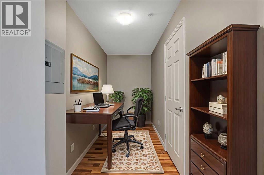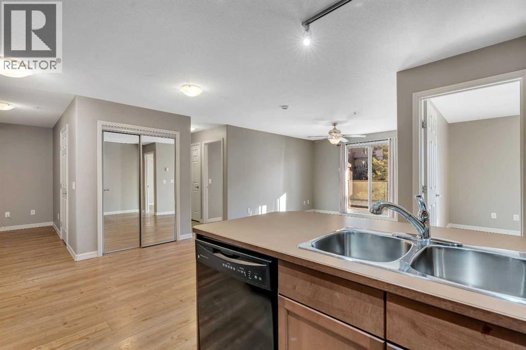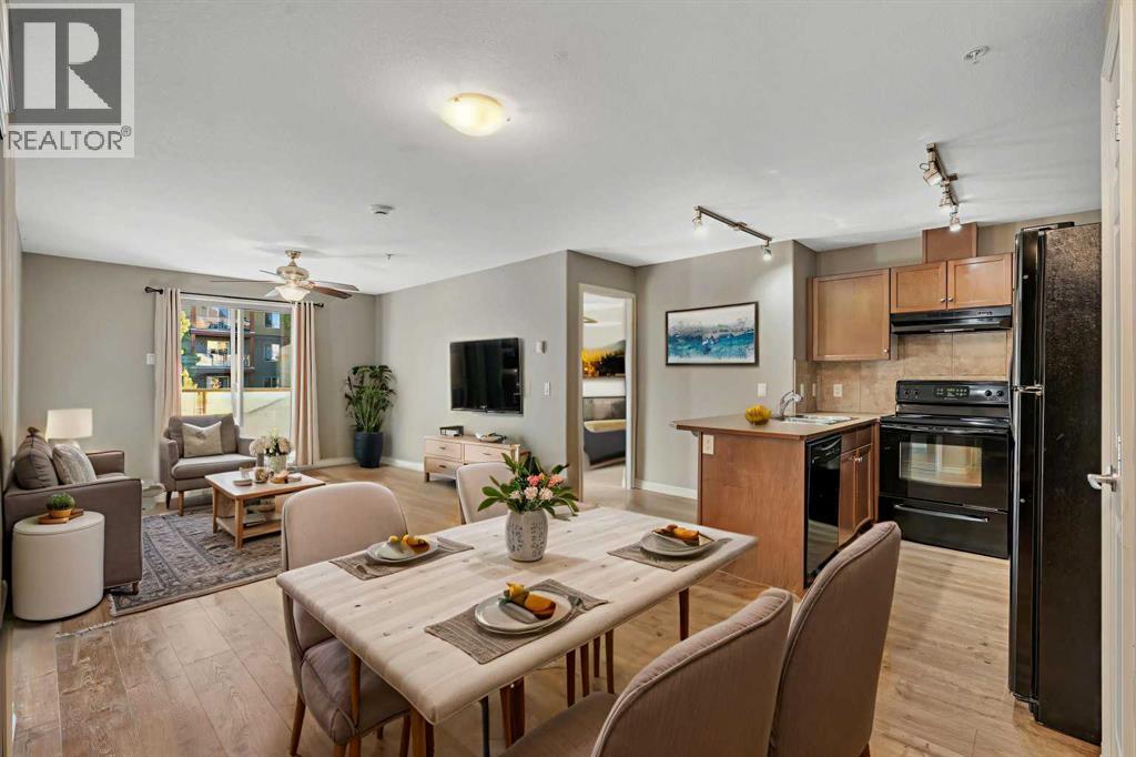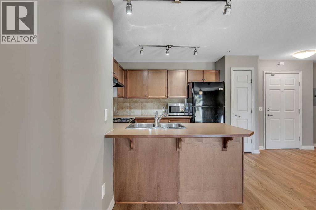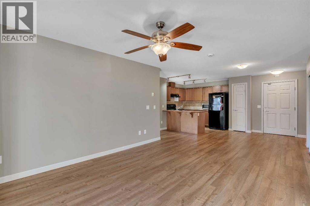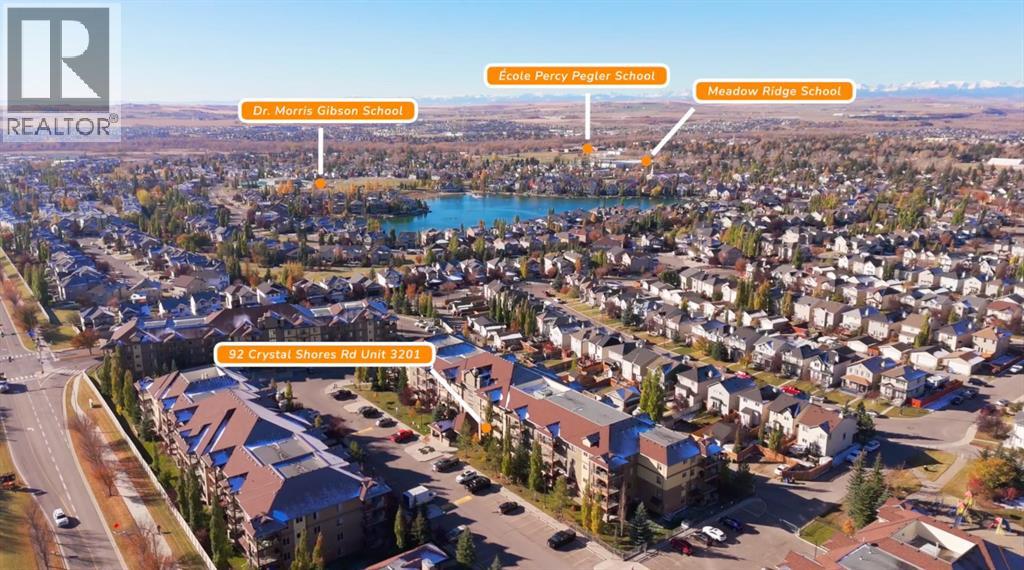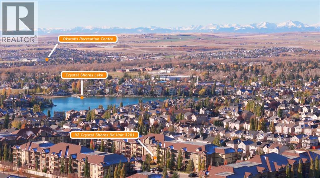 LAKE ACCESS | RESORT-STYLE AMENITIES | TWO PARKING STALLS | MOVE-IN READY | 2 BED/BATH + DEN | Welcome to the Mesa condos in Crystal Shores, where low-maintenance living meets year-round lake access and resort-style amenities. This beautifully updated second-floor end unit offers 908 square feet of thoughtfully designed living space with a bright, open layout and plenty of natural light throughout. This ideal floorplan was created for both privacy and functionality, featuring two spacious bedrooms, two full bathrooms, a den, and in-suite laundry — making it an excellent fit for almost anyone. The kitchen offers ample counter space with loads of cabinetry, a large pantry, sleek black appliances, and a sizable breakfast bar. The open layout allows plenty of room for large living room furniture and a full-sized dining set. A convenient den or flex space nearby makes an ideal home office or reading nook, while the dining and living area flows seamlessly onto a large covered balcony with a gas BBQ hookup, perfect for enjoying a morning coffee or glass of wine. The large primary suite features a walk-through closet, a private 4-piece ensuite, and a large east-facing window. The second bedroom is equally generous and has access to a full bathroom and ample closet space. Additional features include updated lighting, two linen closets, and window coverings throughout. All flooring was replaced in 2023 with luxury vinyl plank, and the home has been very well maintained since, offering a truly move-in-ready experience. This unit comes with two titled parking stalls: one surface stall just steps from the entrance and one heated underground stall that includes an adjacent storage cage. Living at Mesa means enjoying more than just your home — it’s a lifestyle. Residents have access to a private fitness centre, hot tub, sauna, games room with a pool table, and a large social space with a kitchen for hosting gatherings, as well as an on-site car wash bay. As part of the Crystal Sho res community, you’ll also enjoy exclusive lake privileges with swimming, paddleboarding, beach volleyball, skating in the winter and a community golf course. Perfectly situated on the north side of Okotoks, this location offers quick access to Calgary while providing the peaceful, lakeside atmosphere that makes Crystal Shores one of the most desirable communities in town. Book your private showing today! (id:51913)