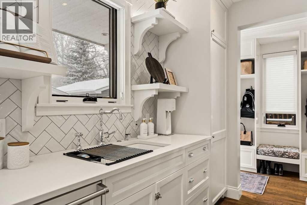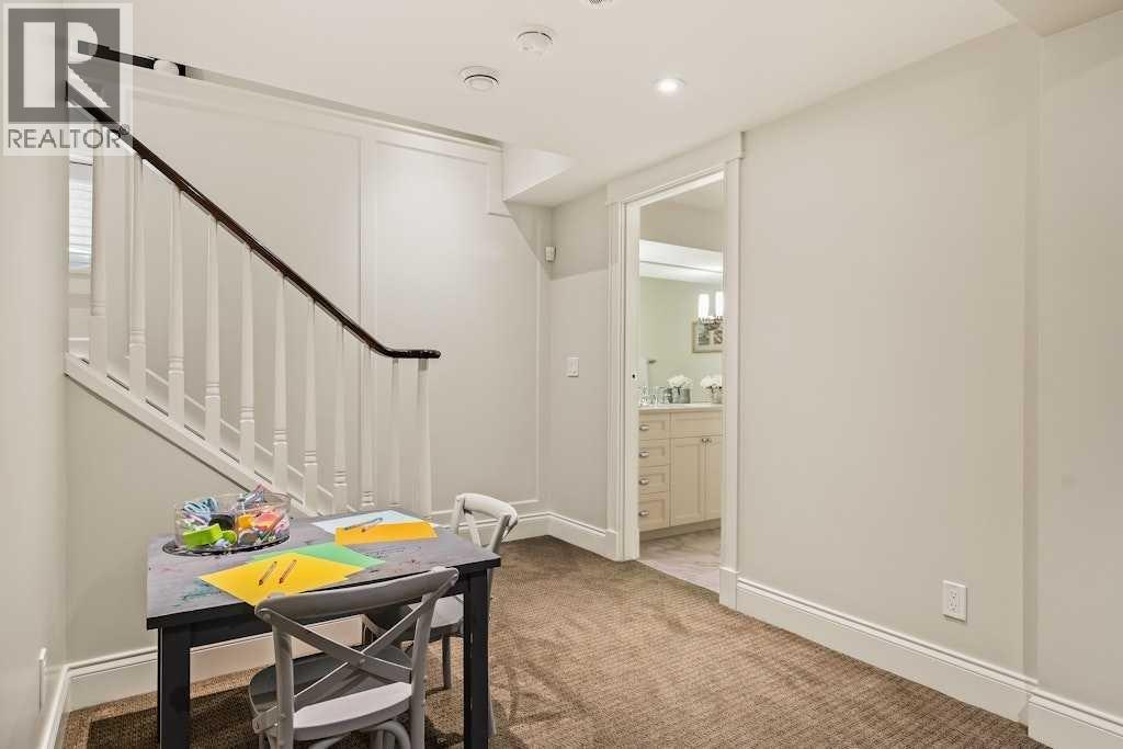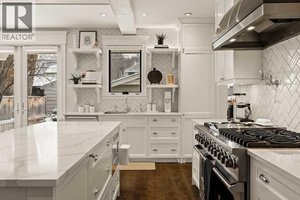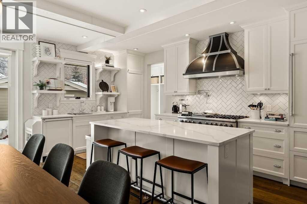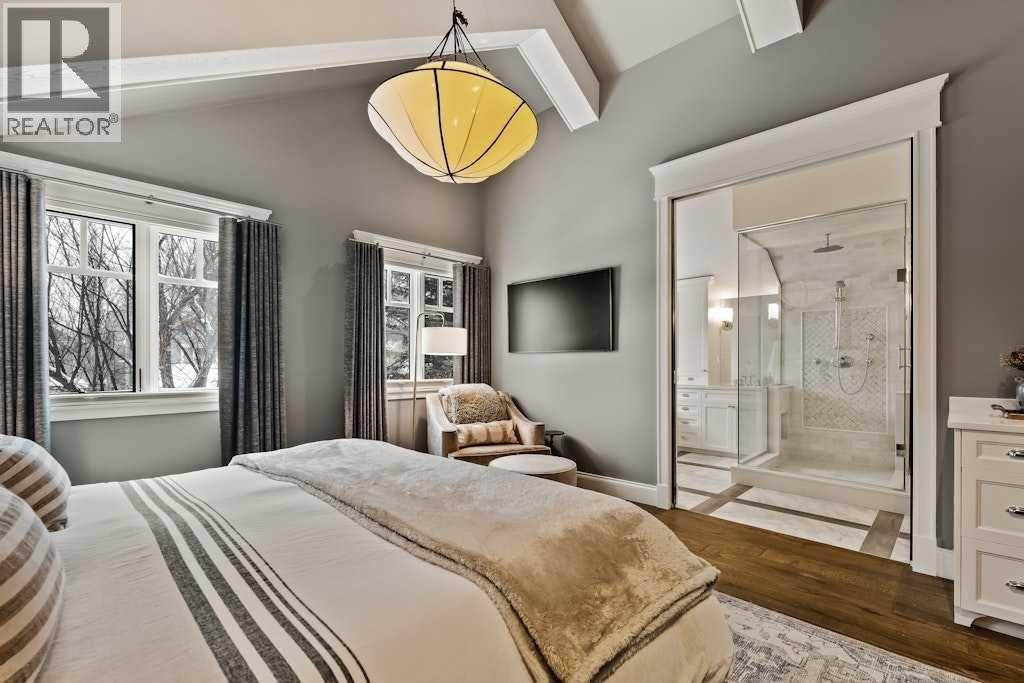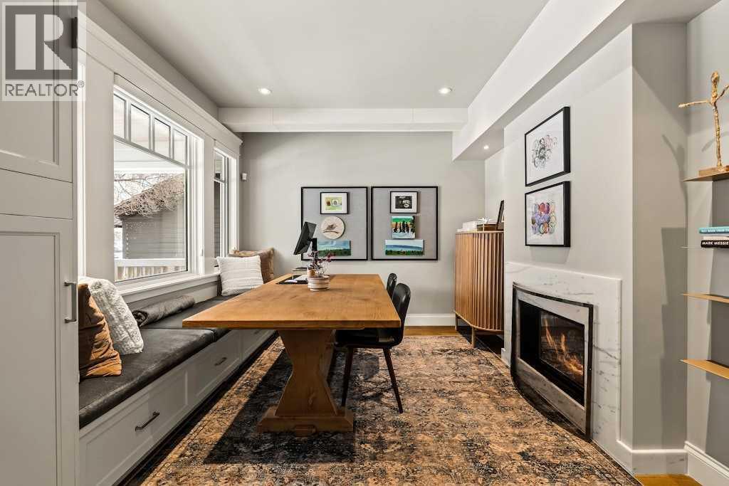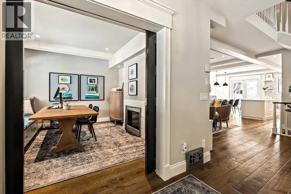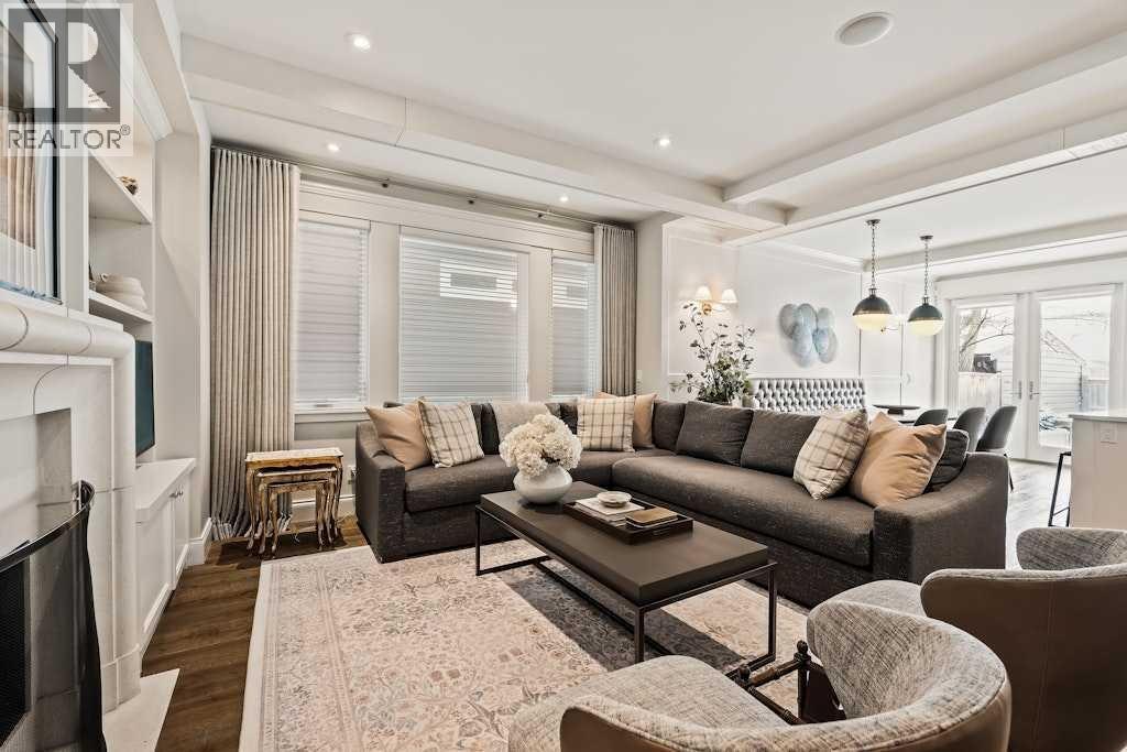 OPEN HOUSE SATURDAY FEB 21ST 1-3pm. The perfect family home—beautifully designed and ideally located. With the park and community centre just steps away at the end of the block—offering skating, tobogganing, tennis, basketball, and an off-leash dog park—this location truly delivers year-round enjoyment. Also close to top schools, the Glencoe Club, the river pathway system and walking distance to the 4th Street Village. Rebuilt from the studs in 2015/2016 by luxury builder Stonebridge Homes, this residence is effectively a new home, offering a total of 3,297 square feet of charming and thoughtfully curated living space with 4 bedrooms and 4.5 bathrooms. Exceptional curb appeal welcomes you with Hardie board siding and sandstone accents. A rebuilt 6' x 24’ front porch complete with a gas heater is an inviting retreat for morning coffee or evening wine. Inside, the generous foyer features a double closet and two benches. The open-concept main level showcases 9’ ceilings, expansive new windows, custom window coverings, oak plank hardwood floors, and outstanding millwork throughout. The living room is anchored by a double-sided gas fireplace, built-in shelving and dedicated location for a TV. A built-in dining banquette maximizes seating. The stunning chef’s kitchen is equipped with top-of-the-line appliances, a custom hood fan, a large island with seating at the extended counter and great storage. At the rear, a well-designed mudroom offers lockers, a bench, pantry, broom closet, and a discreetly positioned two-piece powder room with inlaid tile flooring. A private den/office off the foyer—complete with pocket doors and shared fireplace access—creates the perfect adult lounge or work-from-home space. A spectacular custom open staircase leads to the upper level. Vaulted ceilings throughout the upper level enhance the sense of space. Hardwood floors run throughout the bedrooms. The primary retreat features a generous bedroom, a luxurious five-piece ensui te with soaking tub, walk-in shower, dual vanities, and private water closet, along with an expansive walk-in closet. Each of the two additional bedrooms includes its own ensuite and walk-in closet—ideal for growing families. Full laundry room with sink and storage and a large linen closet also on this level. The fully developed lower floor offers a cozy family room with a sliding feature wall with mount for TV, a wet bar with wine fridge, beverage fridge and a dishwasher, a 4th bedroom with Murphy bed and two storage areas. High performance mechanical including central AC for summer comfort. As the house is positioned forward on the lot, the rear yard is generous and enjoys a sunny, west exposure. The low-maintenance landscape includes a stone patio, artificial turf, raised beds for vegetables/flowers and a flame table. The 22’ x 22’ garage has an exceptional storage system. This property offers a rare combination of quality craftsmanship, thoughtful design and unbeatable location—this is famil (id:51913)