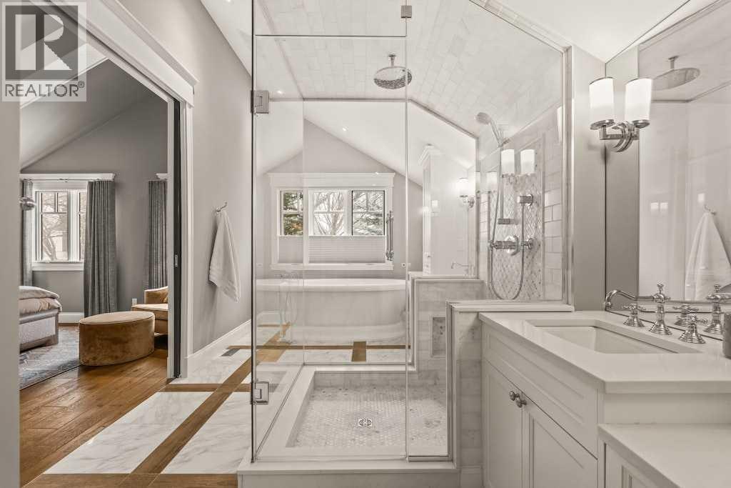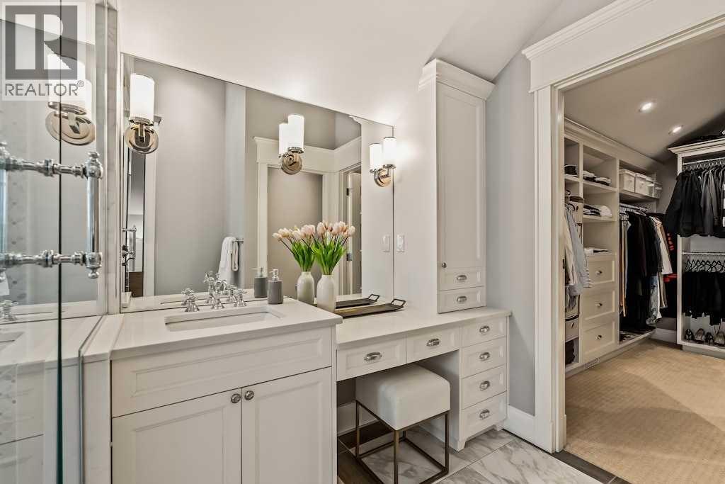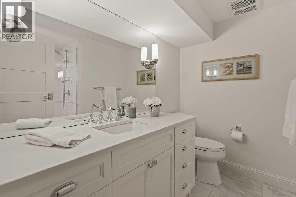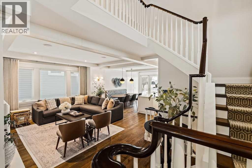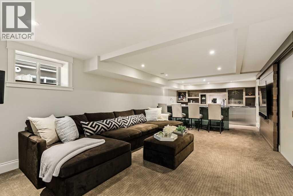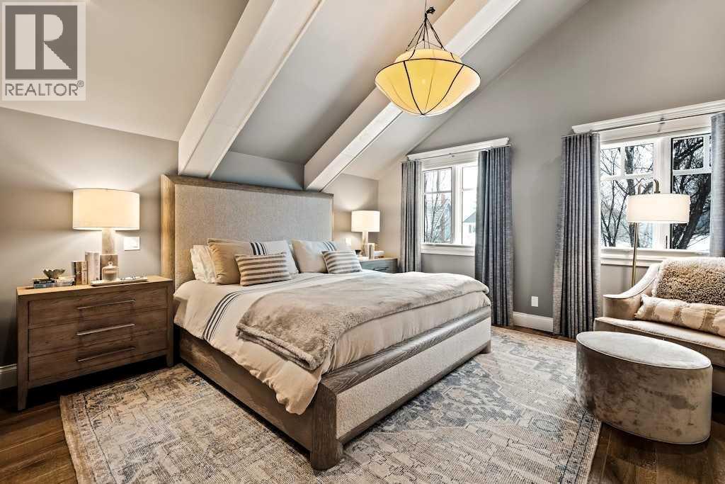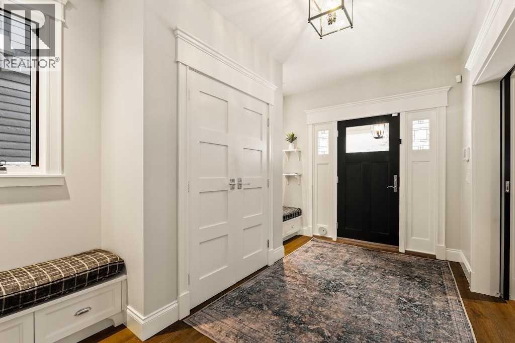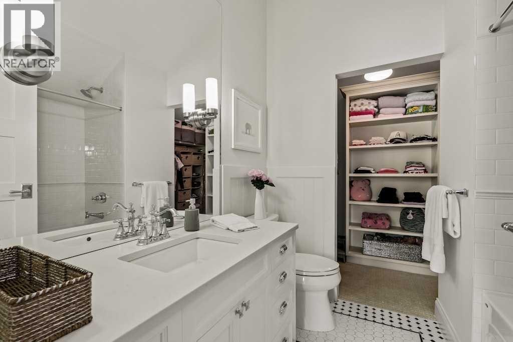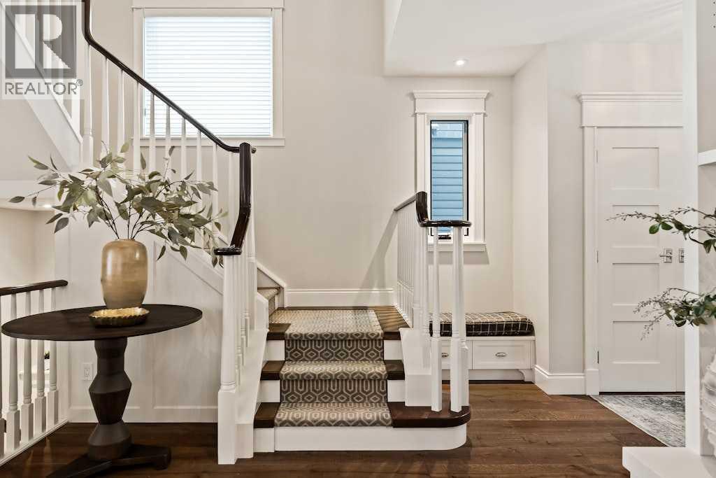 OPEN HOUSE SATURDAY FEB 21ST 1-3pm. The perfect family home—beautifully designed and ideally located. With the park and community centre just steps away at the end of the block—offering skating, tobogganing, tennis, basketball, and an off-leash dog park—this location truly delivers year-round enjoyment. Also close to top schools, the Glencoe Club, the river pathway system and walking distance to the 4th Street Village. Rebuilt from the studs in 2015/2016 by luxury builder Stonebridge Homes, this residence is effectively a new home, offering a total of 3,297 square feet of charming and thoughtfully curated living space with 4 bedrooms and 4.5 bathrooms. Exceptional curb appeal welcomes you with Hardie board siding and sandstone accents. A rebuilt 6' x 24’ front porch complete with a gas heater is an inviting retreat for morning coffee or evening wine. Inside, the generous foyer features a double closet and two benches. The open-concept main level showcases 9’ ceilings, expansive new windows, custom window coverings, oak plank hardwood floors, and outstanding millwork throughout. The living room is anchored by a double-sided gas fireplace, built-in shelving and dedicated location for a TV. A built-in dining banquette maximizes seating. The stunning chef’s kitchen is equipped with top-of-the-line appliances, a custom hood fan, a large island with seating at the extended counter and great storage. At the rear, a well-designed mudroom offers lockers, a bench, pantry, broom closet, and a discreetly positioned two-piece powder room with inlaid tile flooring. A private den/office off the foyer—complete with pocket doors and shared fireplace access—creates the perfect adult lounge or work-from-home space. A spectacular custom open staircase leads to the upper level. Vaulted ceilings throughout the upper level enhance the sense of space. Hardwood floors run throughout the bedrooms. The primary retreat features a generous bedroom, a luxurious five-piece ensui te with soaking tub, walk-in shower, dual vanities, and private water closet, along with an expansive walk-in closet. Each of the two additional bedrooms includes its own ensuite and walk-in closet—ideal for growing families. Full laundry room with sink and storage and a large linen closet also on this level. The fully developed lower floor offers a cozy family room with a sliding feature wall with mount for TV, a wet bar with wine fridge, beverage fridge and a dishwasher, a 4th bedroom with Murphy bed and two storage areas. High performance mechanical including central AC for summer comfort. As the house is positioned forward on the lot, the rear yard is generous and enjoys a sunny, west exposure. The low-maintenance landscape includes a stone patio, artificial turf, raised beds for vegetables/flowers and a flame table. The 22’ x 22’ garage has an exceptional storage system. This property offers a rare combination of quality craftsmanship, thoughtful design and unbeatable location—this is famil (id:51913)