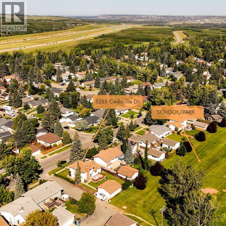 BACKING ONTO SCHOOL/PARK | CORNER LOT | NEW FLOORING ON MAIN | OVERSIZED GARAGE | UPDATES THROUGHOUT | Welcome to 3285 Cedarille Drive SW, located in a AAA location within the family-oriented community of Cedarbrae. Backing directly onto Cedarbrae School, this is an ideal location for families looking for simplicity with school access and views of the playground right from your own backyard. The main level features new LVP flooring throughout and offers a more traditional layout in a rare 2-storey home for Cedarbrae. The main level includes a large living room with west-facing windows, ample dining space for a larger family, and a well-appointed kitchen featuring stainless steel appliances, quartz counters, custom tile backsplash, and the sought-after kitchen sink with a view overlooking the massive backyard. Off the kitchen is a lovely family room centred around a wood-burning fireplace, the perfect place to cozy up on those winter nights. To complete the main level you have a convenient laundry room, a 2-pc powder room, and a 4th bedroom, making it an ideal guest space or home office. There is direct access from the family room to the backyard featuring a massive deck and plenty of room for kids and pets to run around in almost complete privacy. Back here you’ll also find access to the oversized double detached garage, perfect for anyone looking to have a home workshop or needing space for larger vehicles. The upper level of the home features 3 bedrooms, including the primary with ample closet space and a 4-pc ensuite. Additionally, you will find 2 more bedrooms and a second full 4-pc bathroom. The unfinished basement is an ideal place to put your finishing touches on, with plenty of windows and space for future development. Location is everything and this home checks all the boxes — bus stop close by, backing onto a park, tons of additional parking at the side, close to Fish Creek Park and Glenmore Reservoir, off-leash areas, commercial shops just a few blocks aw ay, along with the Cedarbrae Rink and Community Centre which features a hockey rink, pickleball and tennis courts, and markets in the summertime. Don’t wait to see this one, please book your private showing today! (id:51913)